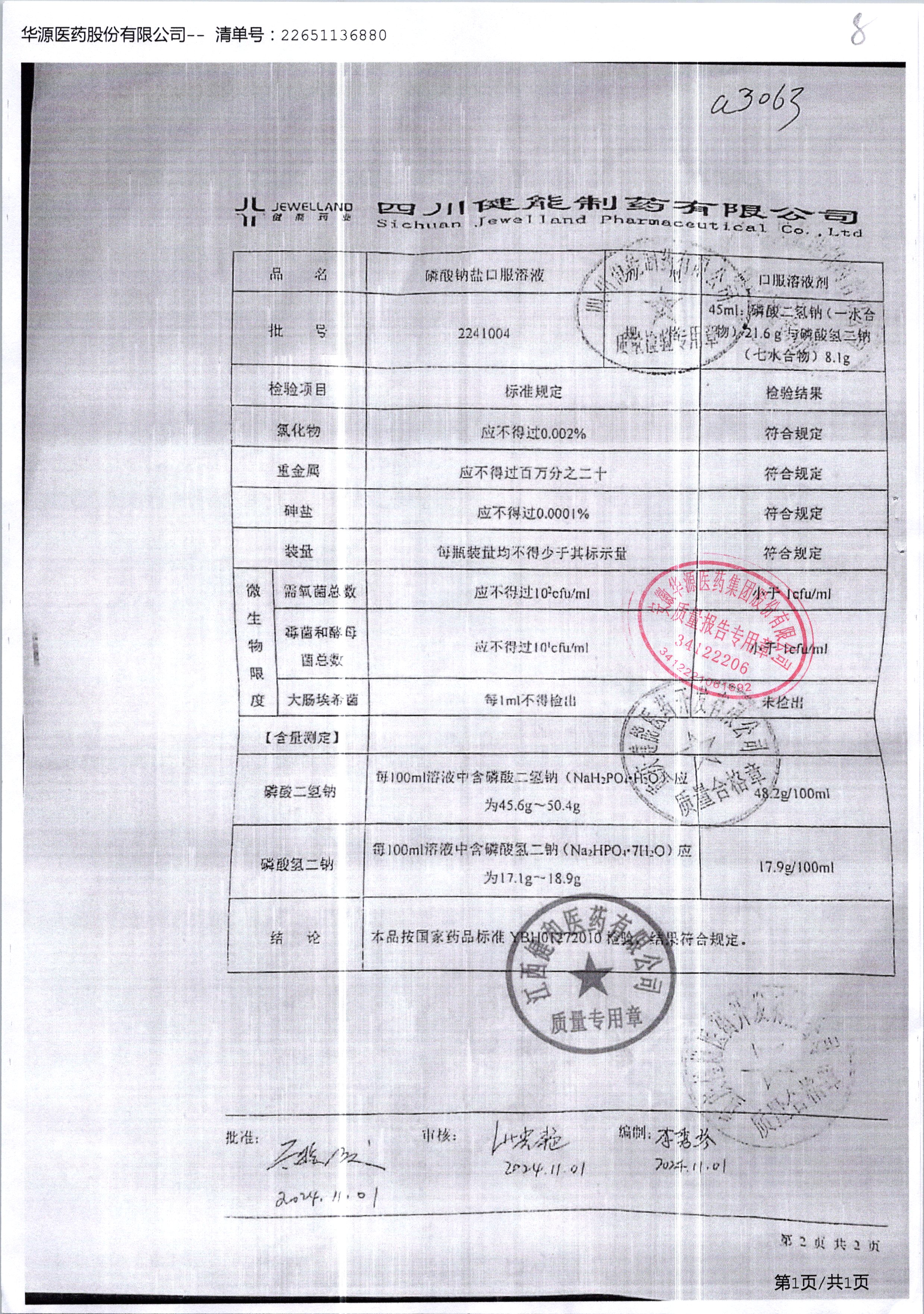 磷酸鈉鹽口服溶液 45ml 2241004 查看詳情