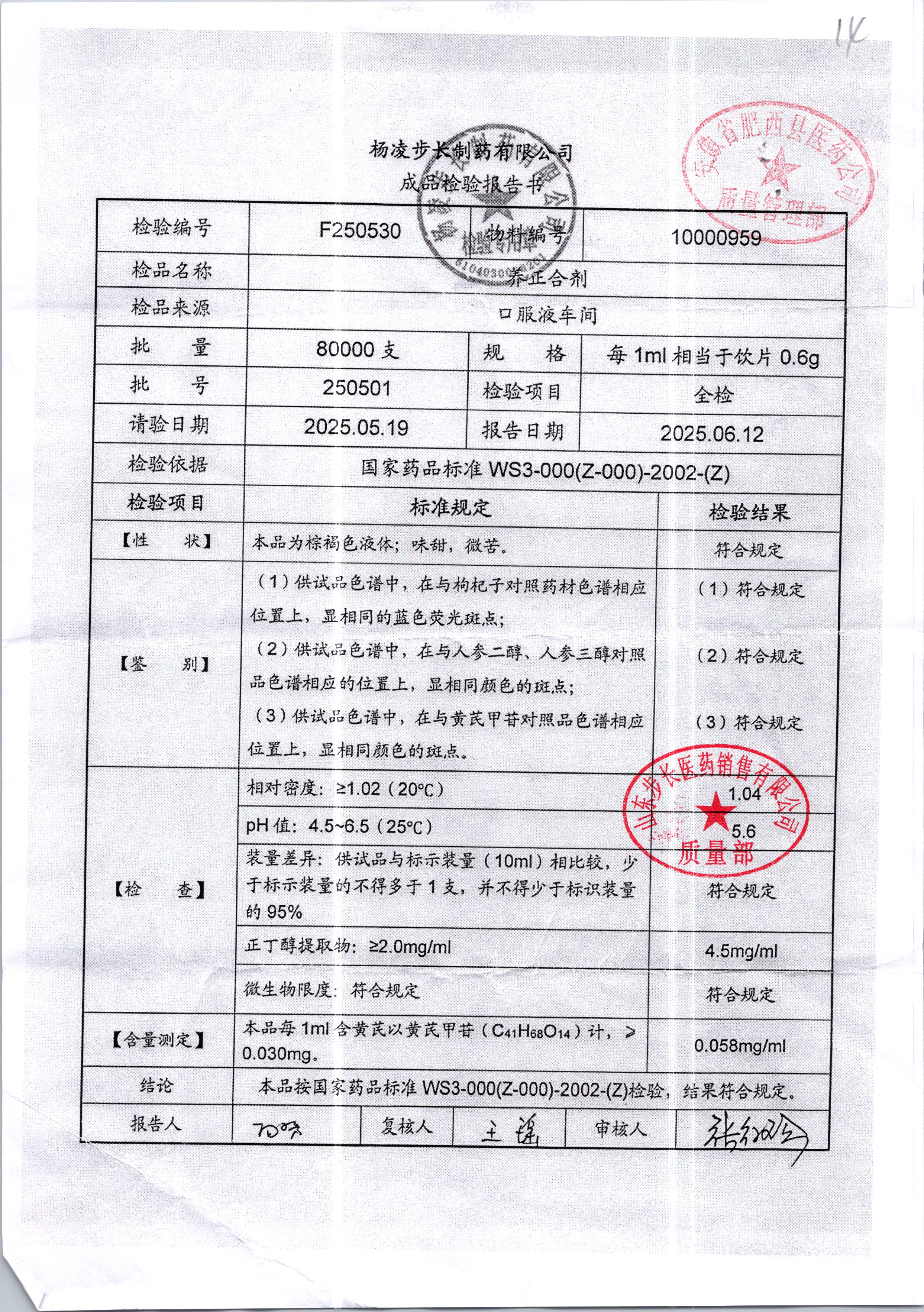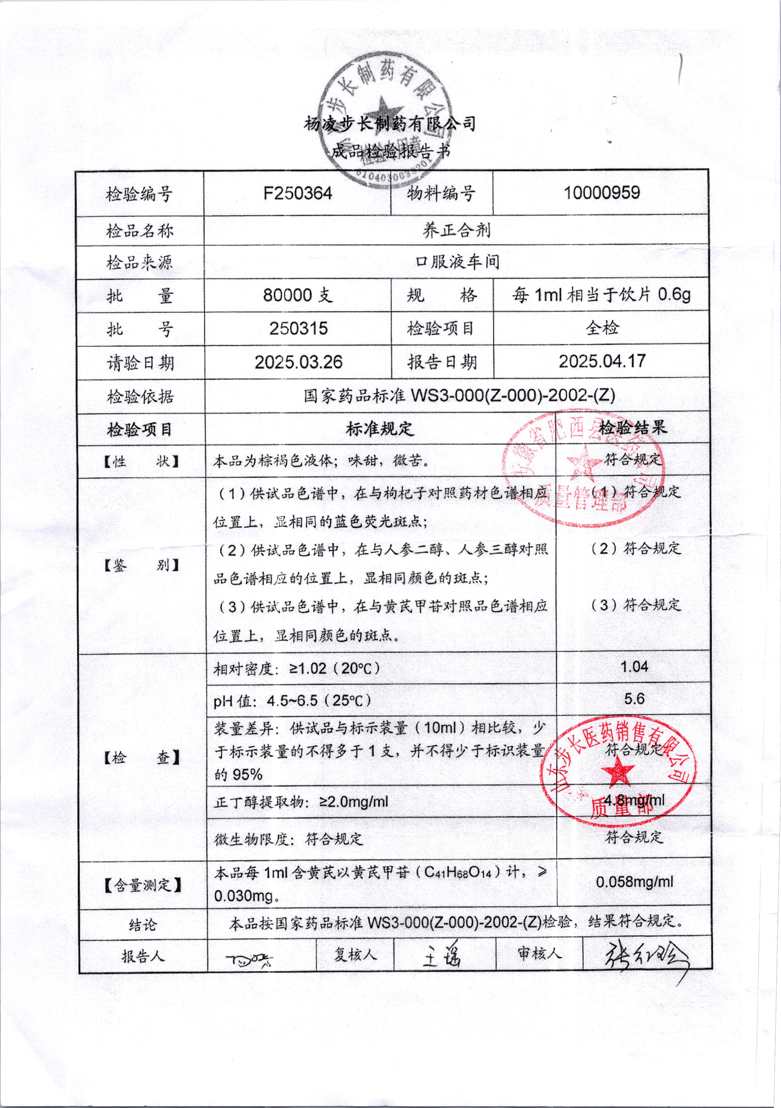 | 養(yǎng)正合劑 | 1ml | 250502 | 查看詳情 |