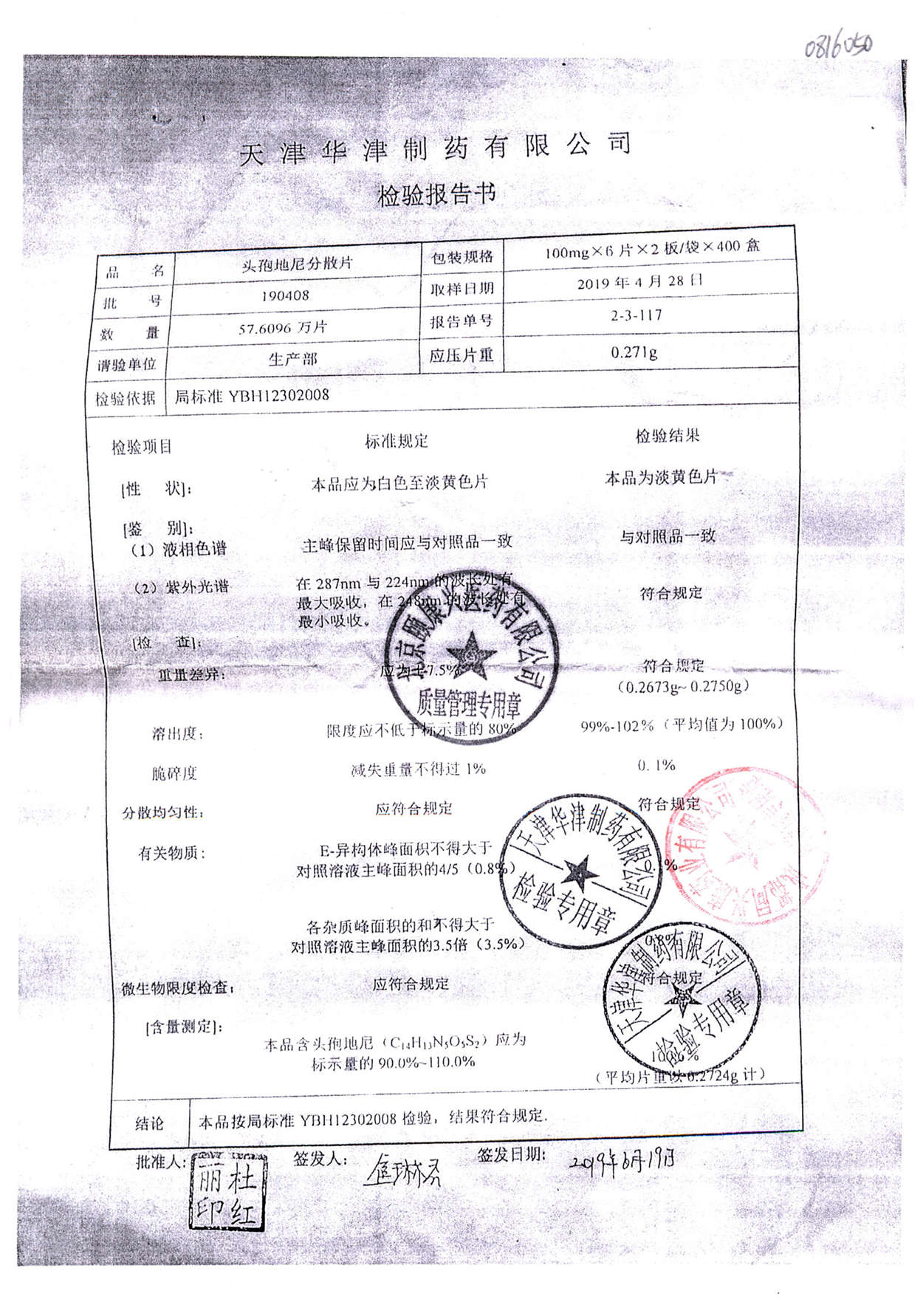 頭孢地尼分散片 | 100mg*12片 | 190408 | 查看詳情 |