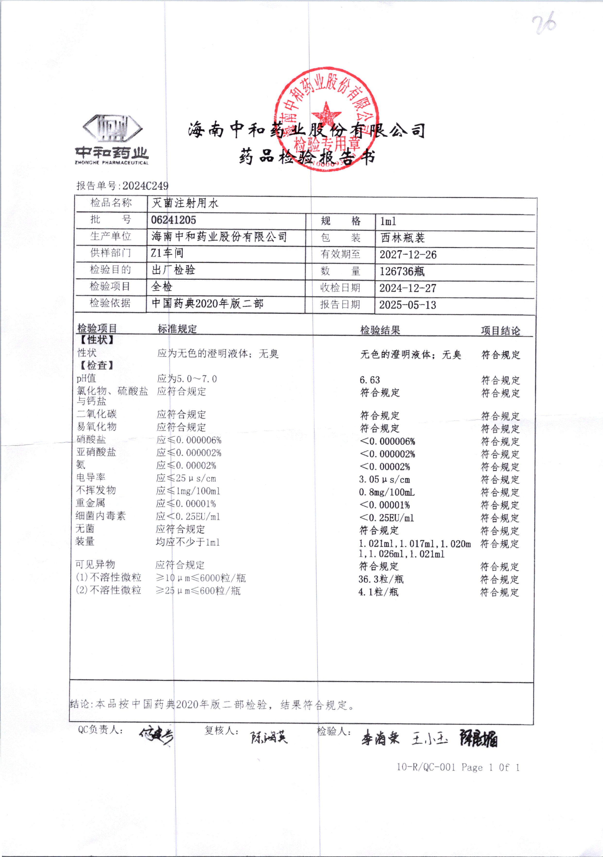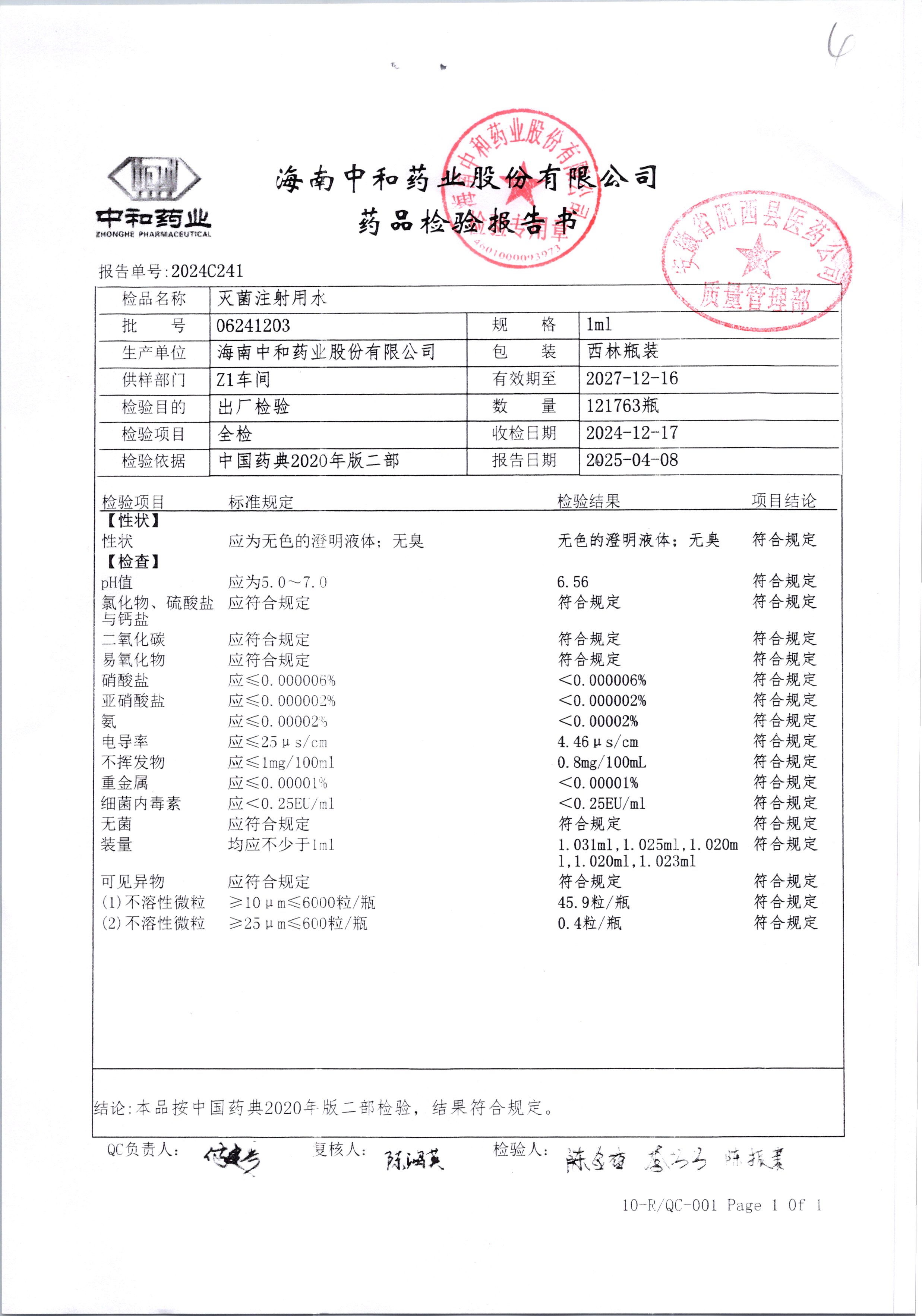 滅菌注射用水 1ml 06241205 查看詳情