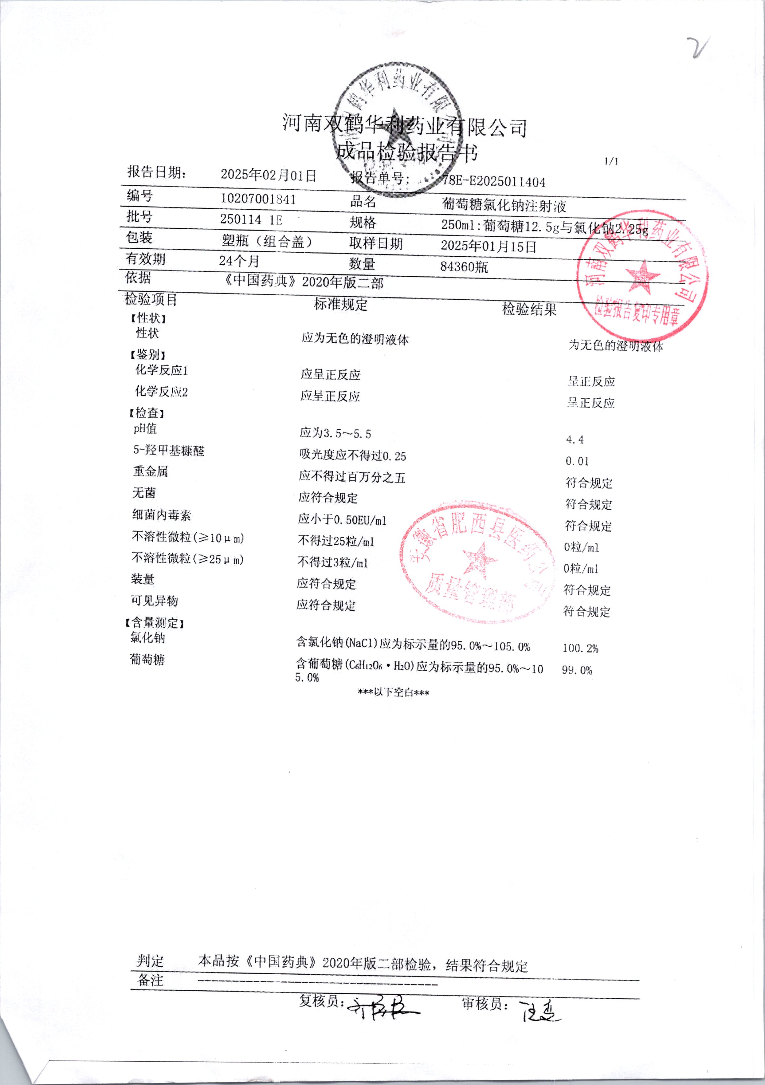 葡萄糖氯化鈉注射液 250ml 250114 1E 查看詳情
