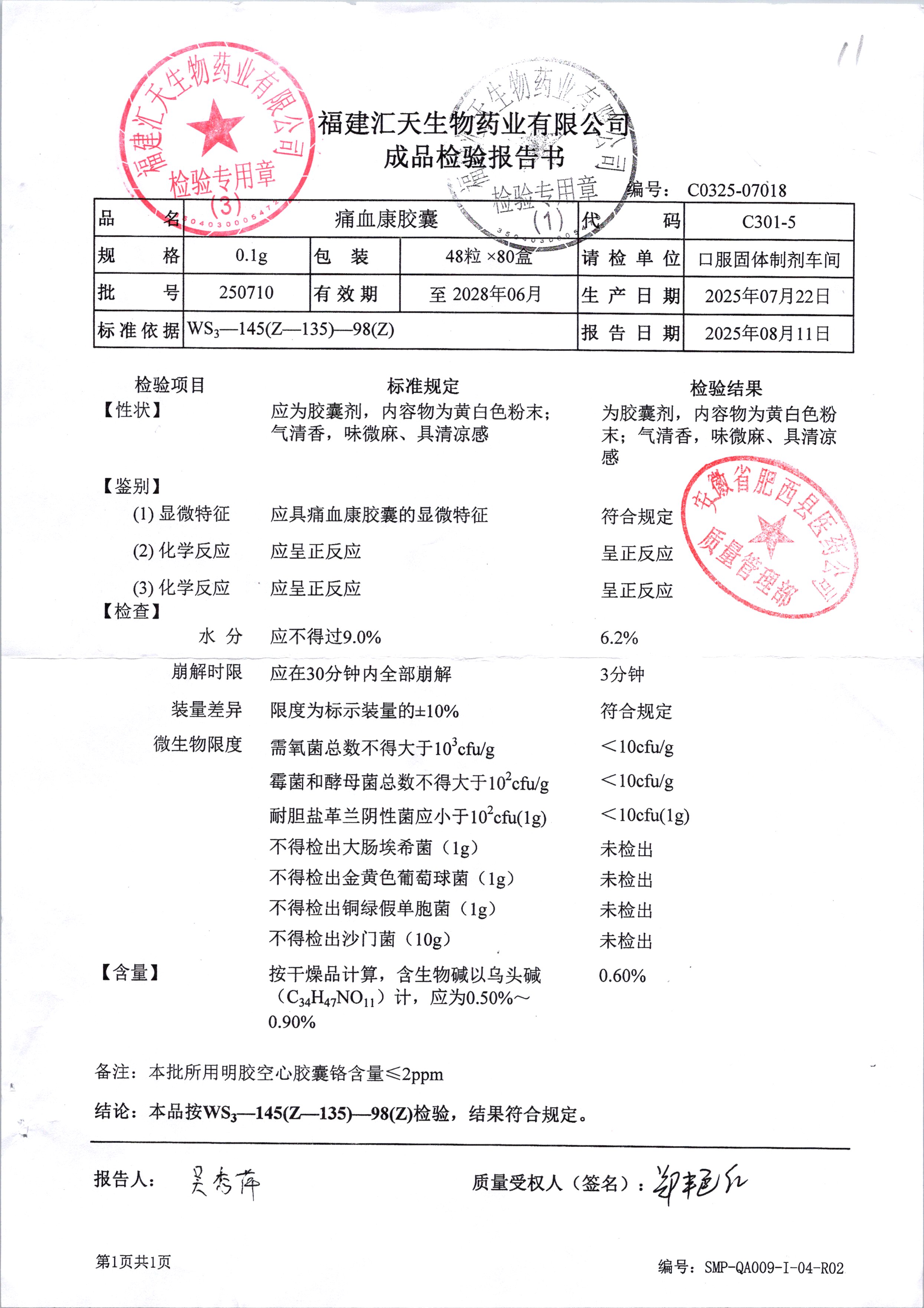 | 痛血康膠囊 | 0.1g*48粒 | 250710 | 查看詳情 |