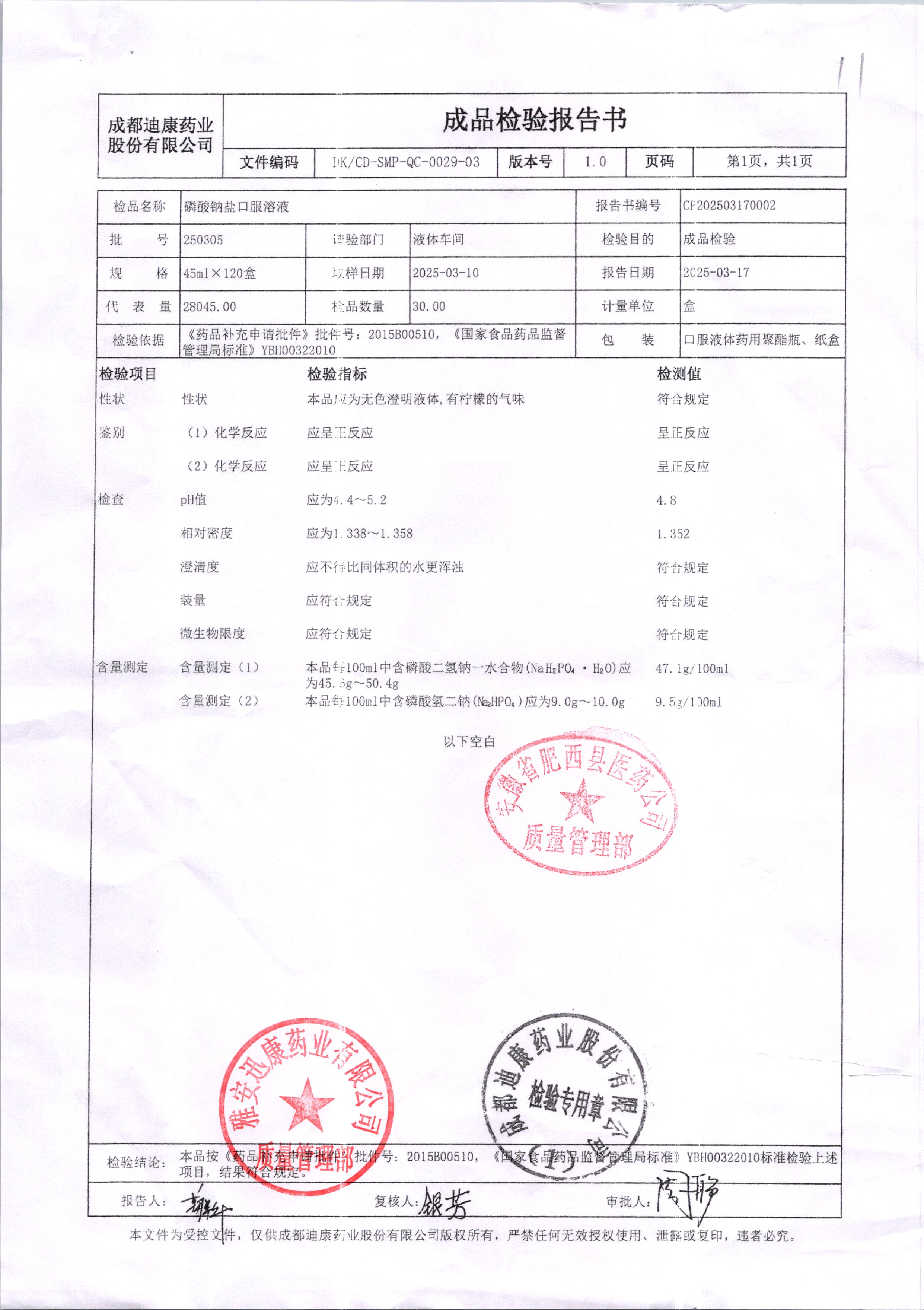 磷酸鈉鹽口服溶液 45ml 250305 查看詳情