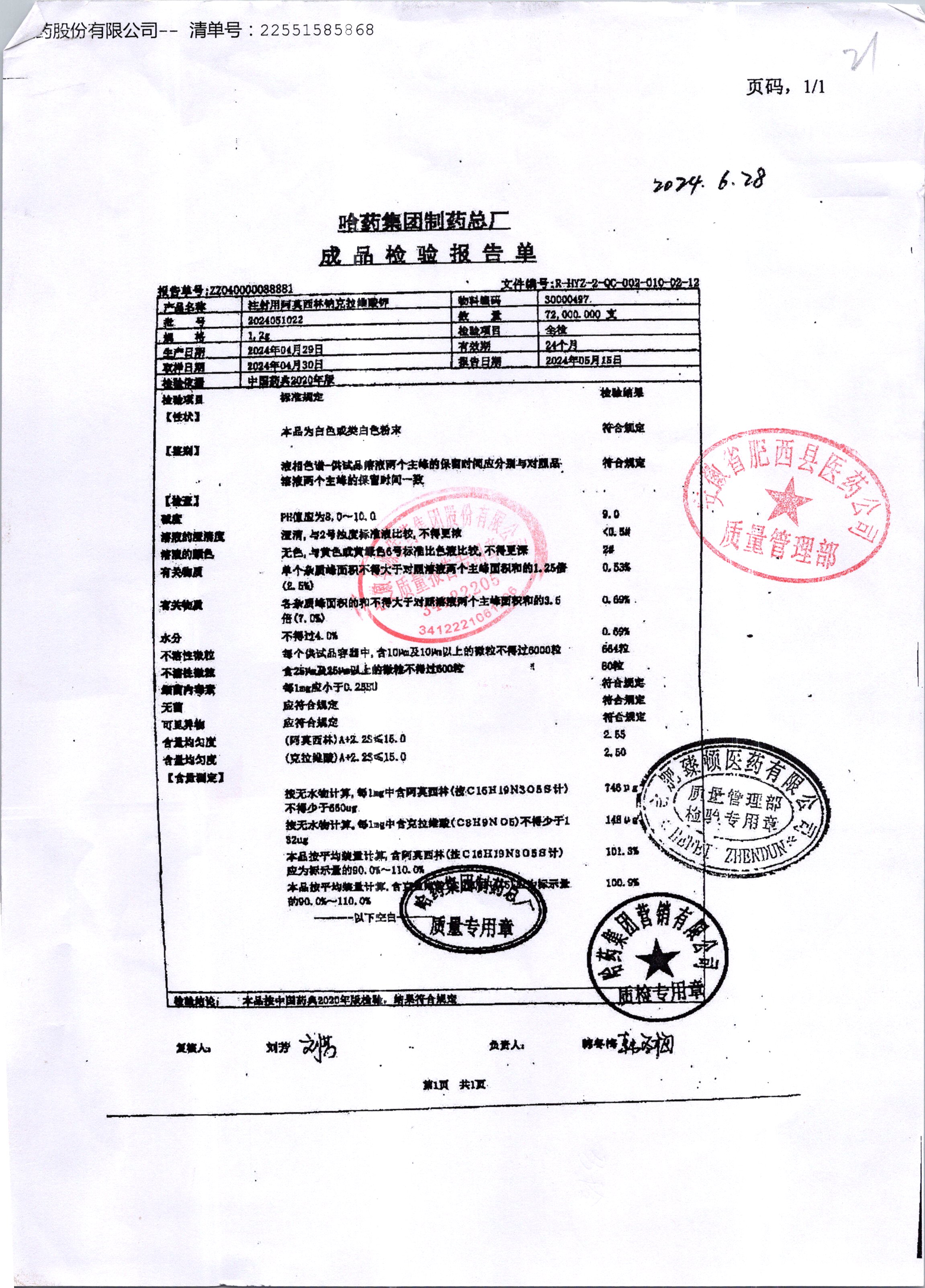 注射用阿莫西林鈉克拉維酸鉀 1.2g 2024051022 查看詳情
