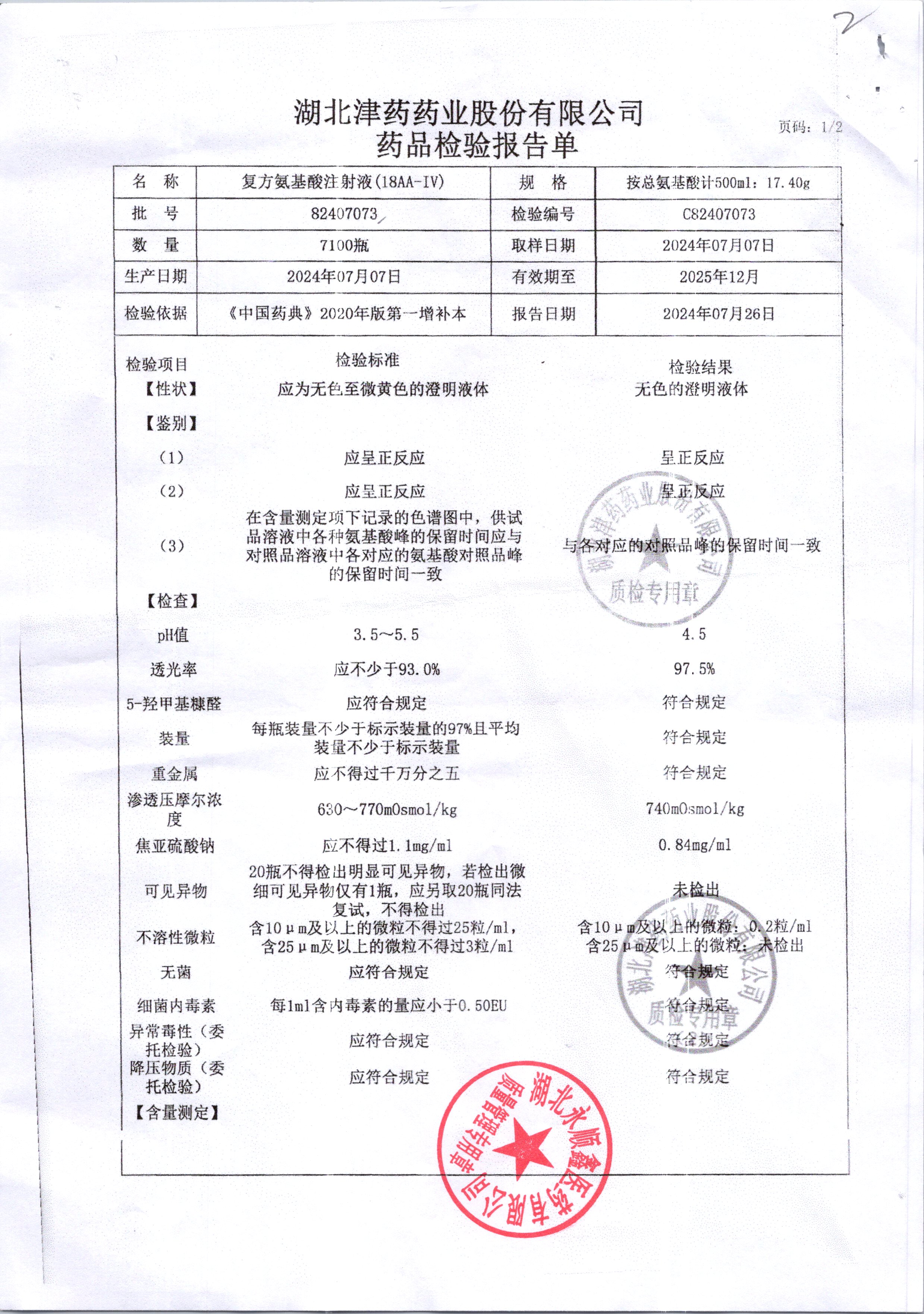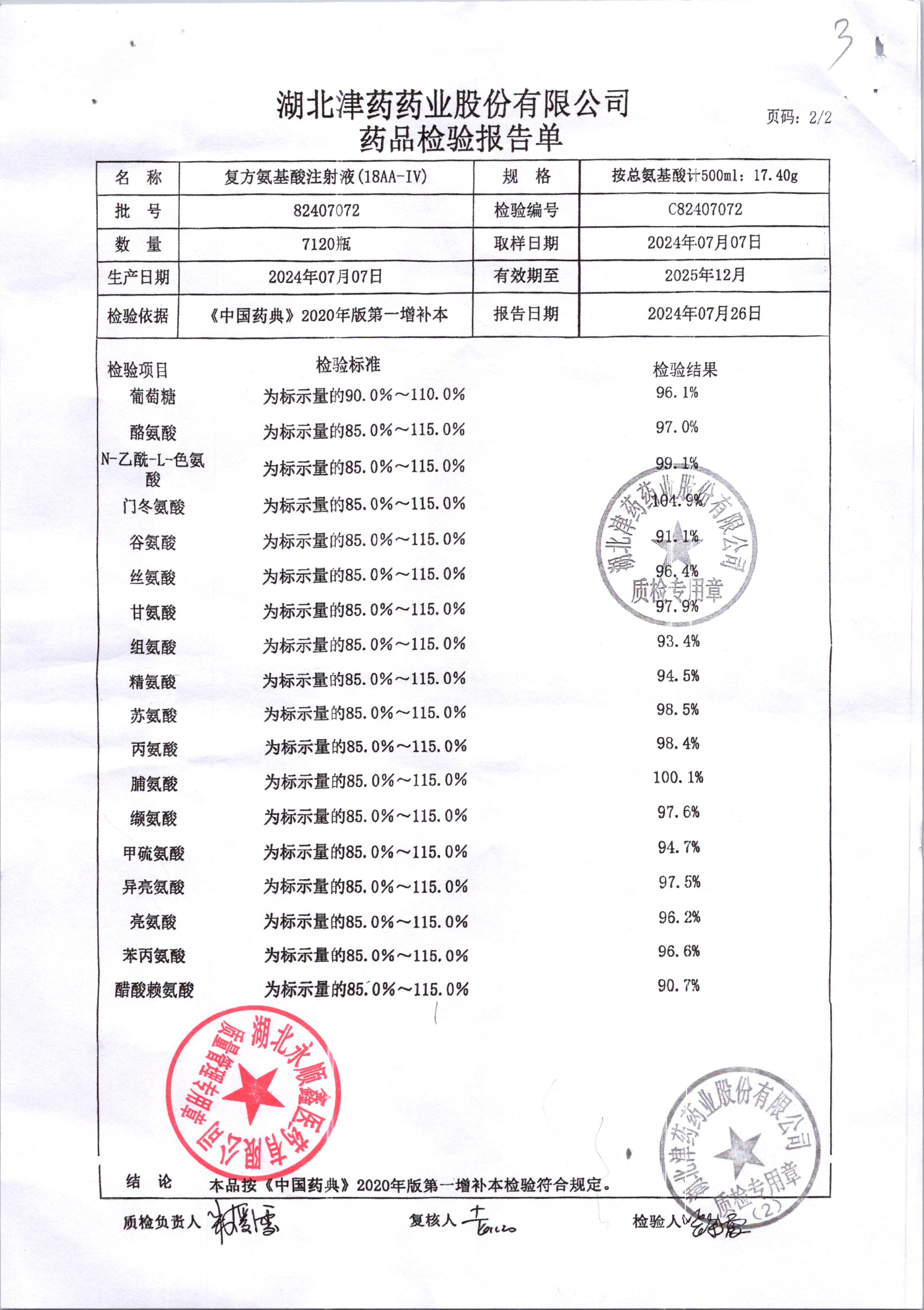 復方氨基酸注射液 500ml:17.40 82407072 查看詳情