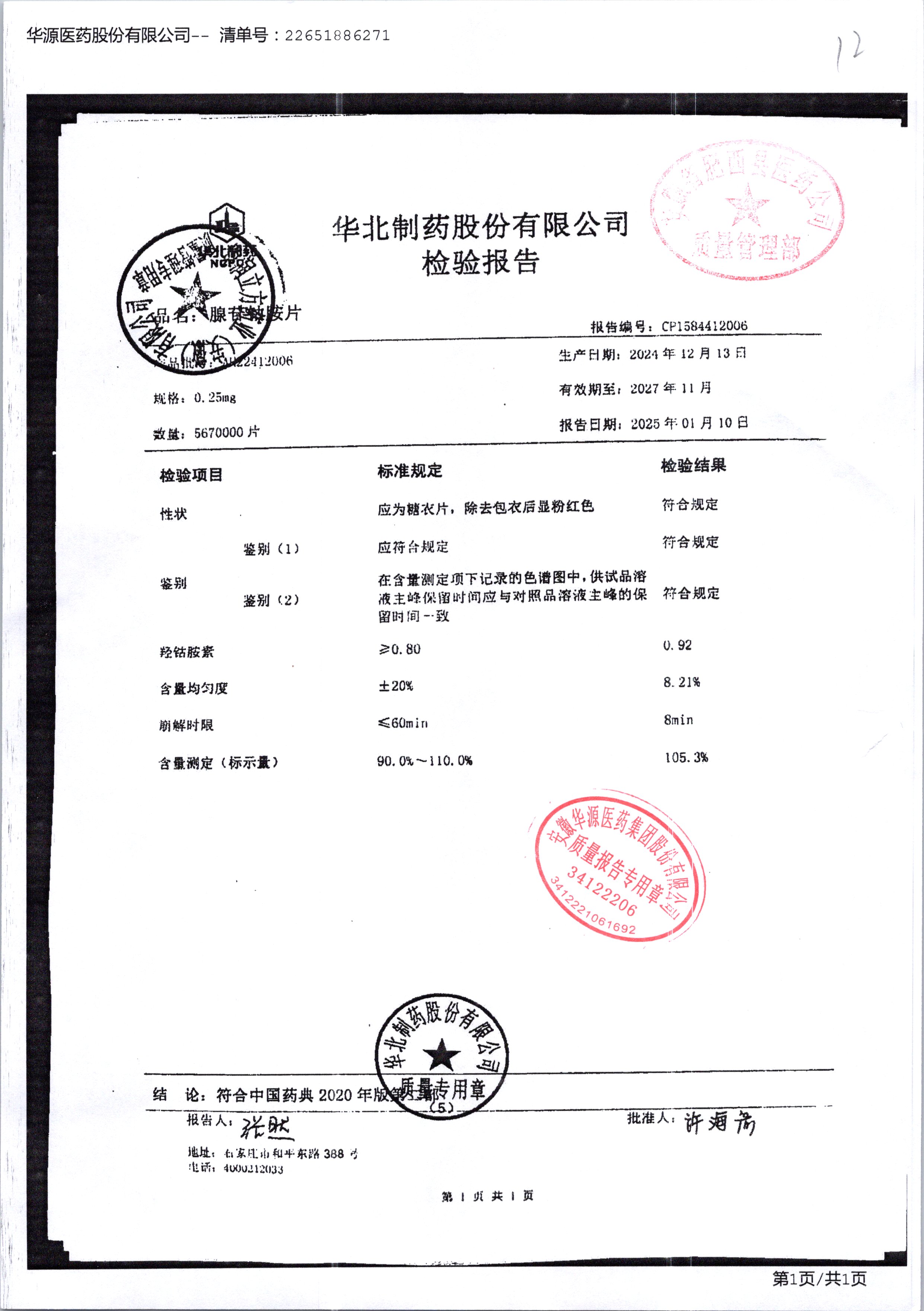名稱 規(guī)格 批號 藥檢報(bào)告