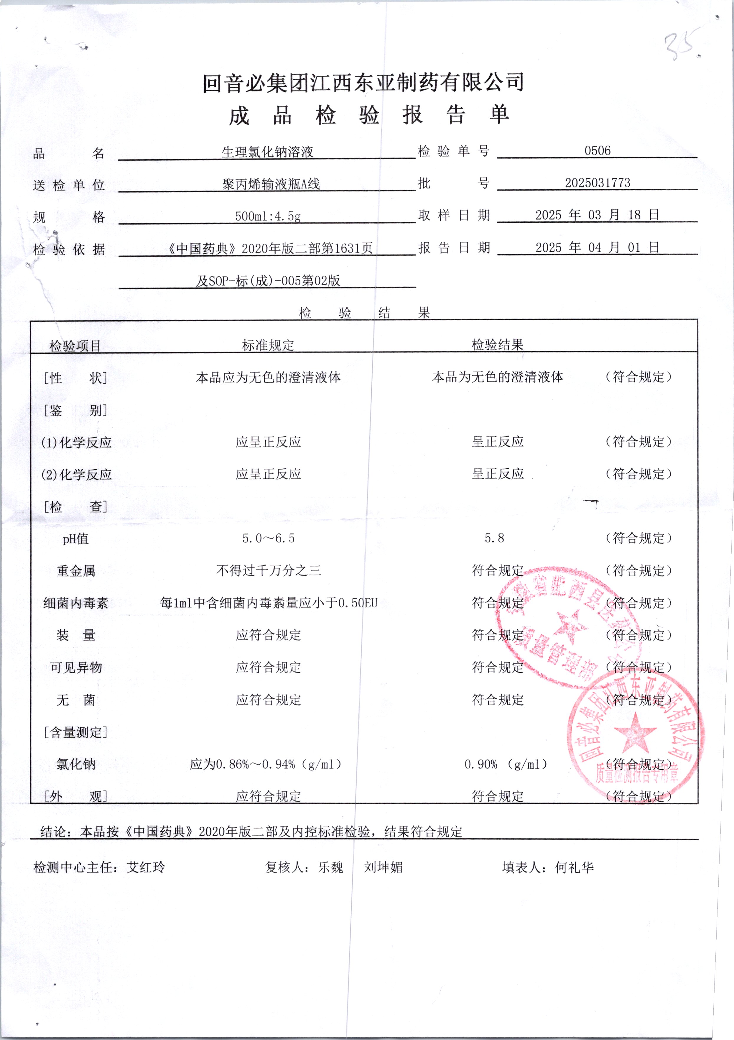 生理氯化鈉溶液 | 500ml:4.5g | 2025031773 | 查看詳情 |