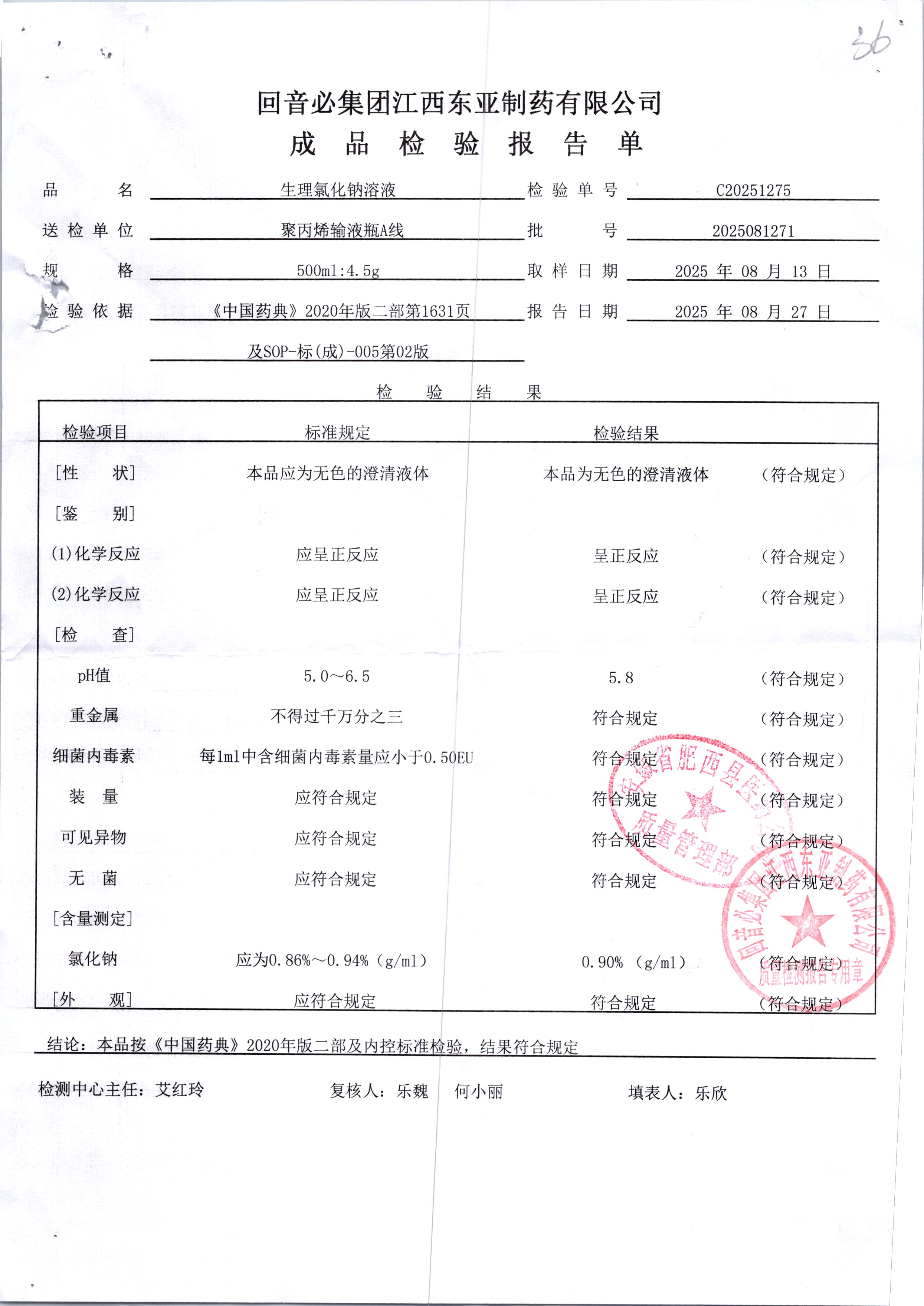 生理氯化鈉溶液 | 500ml:4.5g | 2025081271 | 查看詳情 |