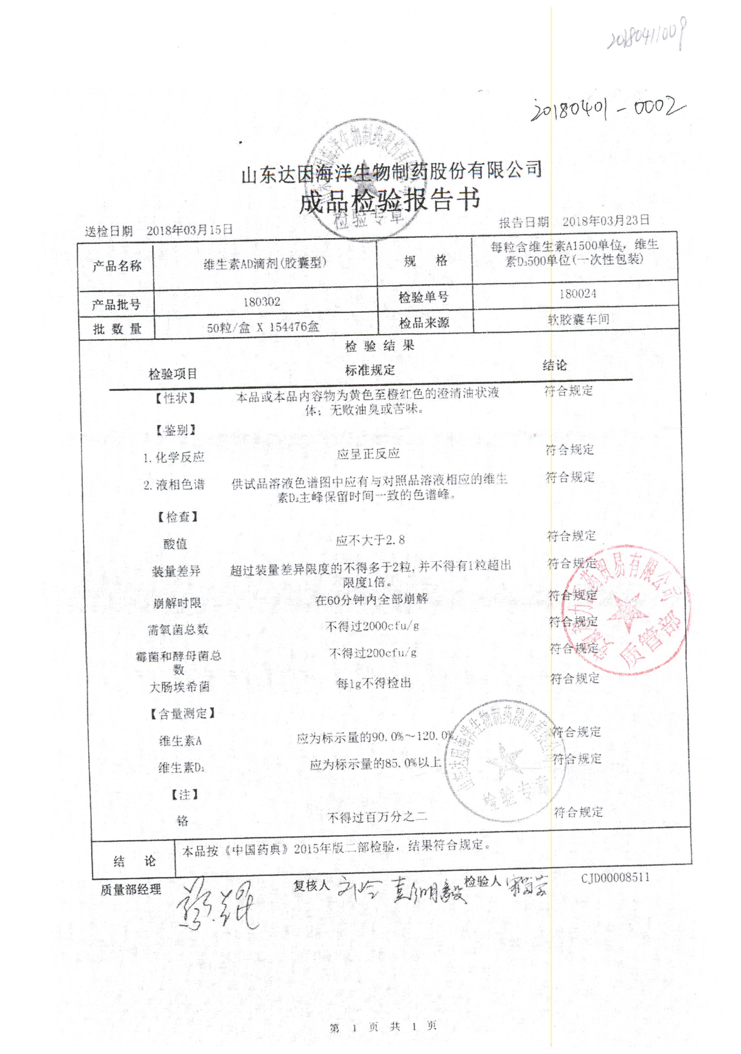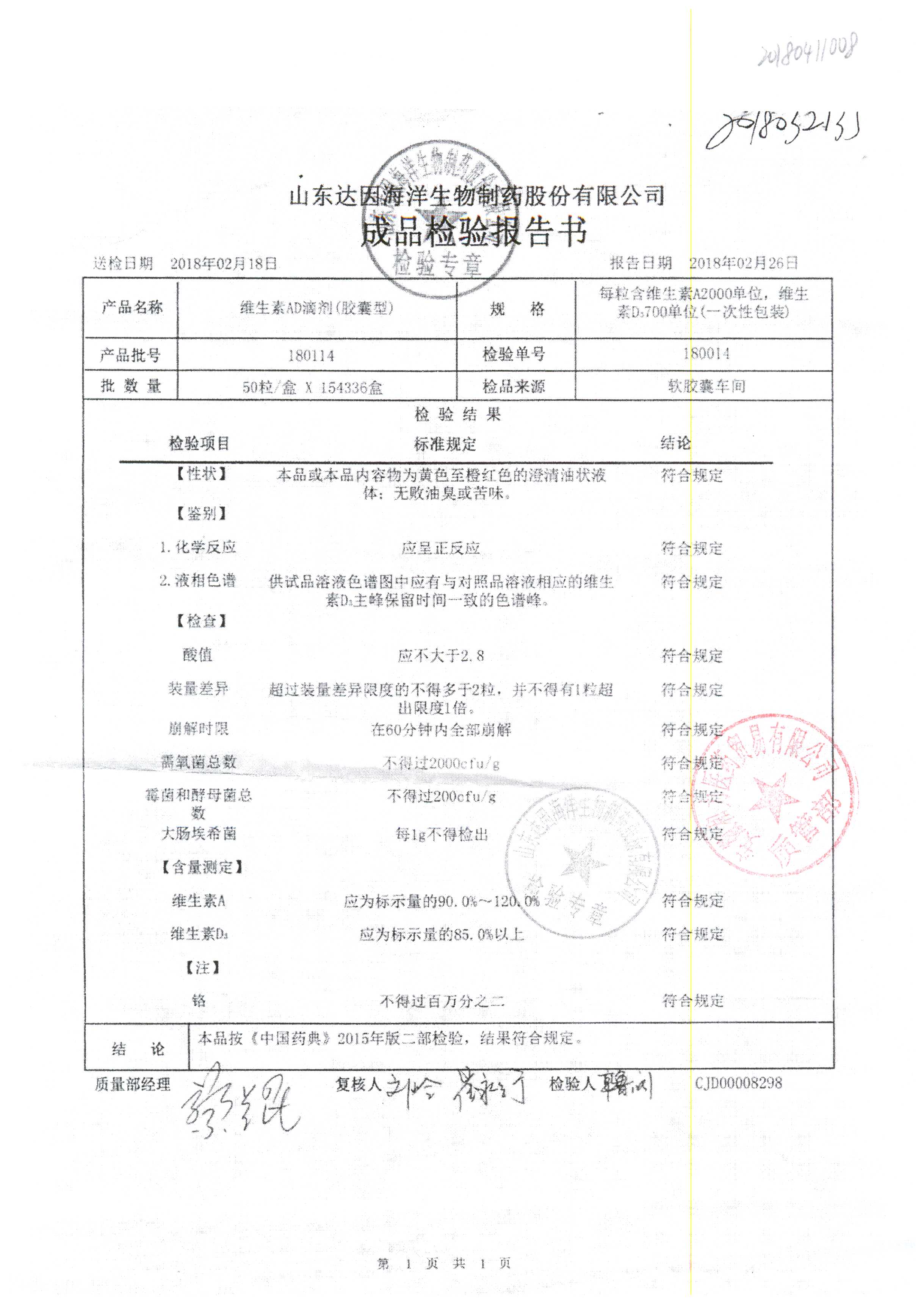 維生素AD滴劑(膠囊型) | 2000單位:700單位*50粒 | 180302 | 查看詳情 |