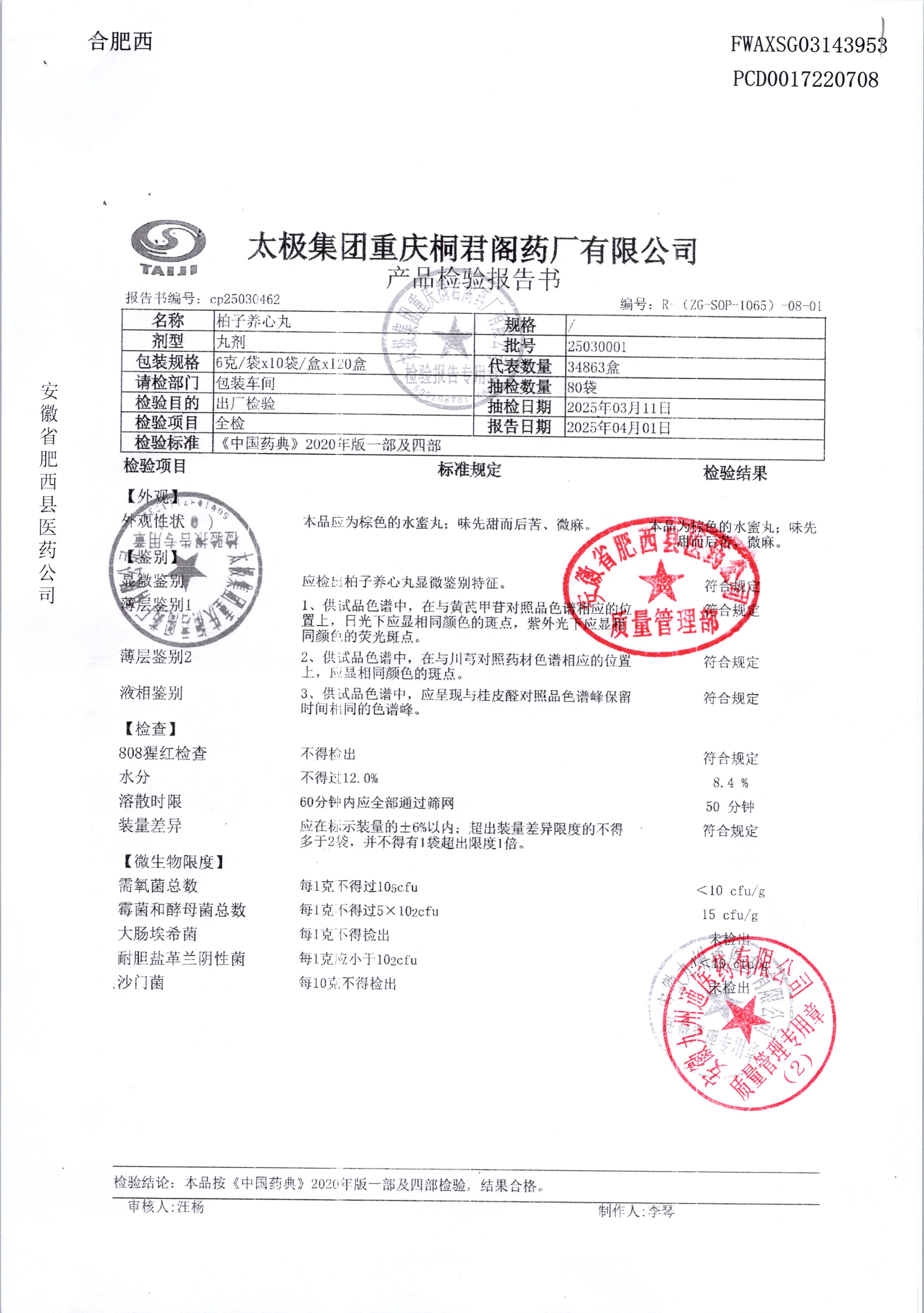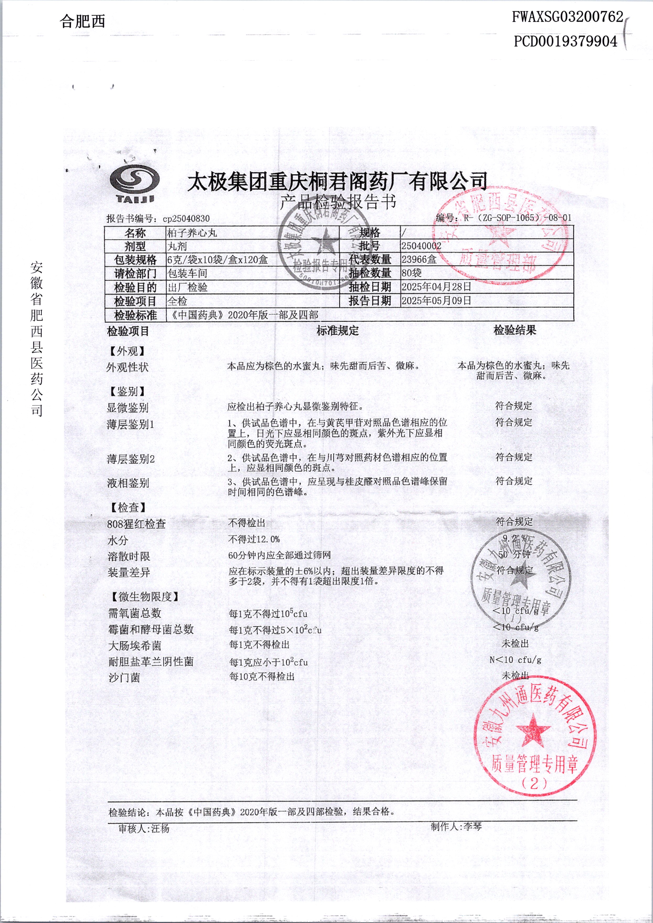 柏子養(yǎng)心丸 6g*10袋 25040002 查看詳情