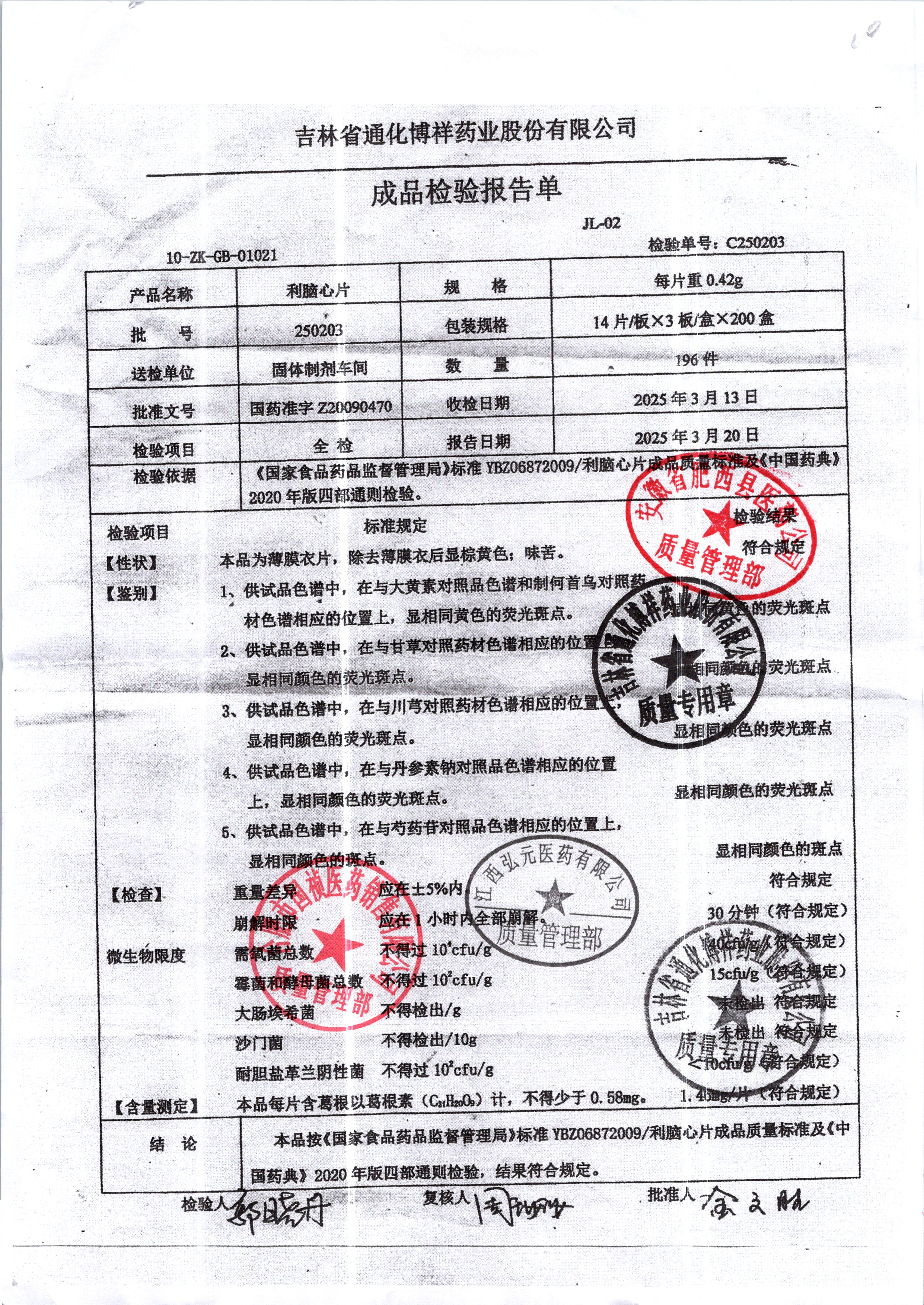 名稱 規(guī)格 批號 藥檢報告