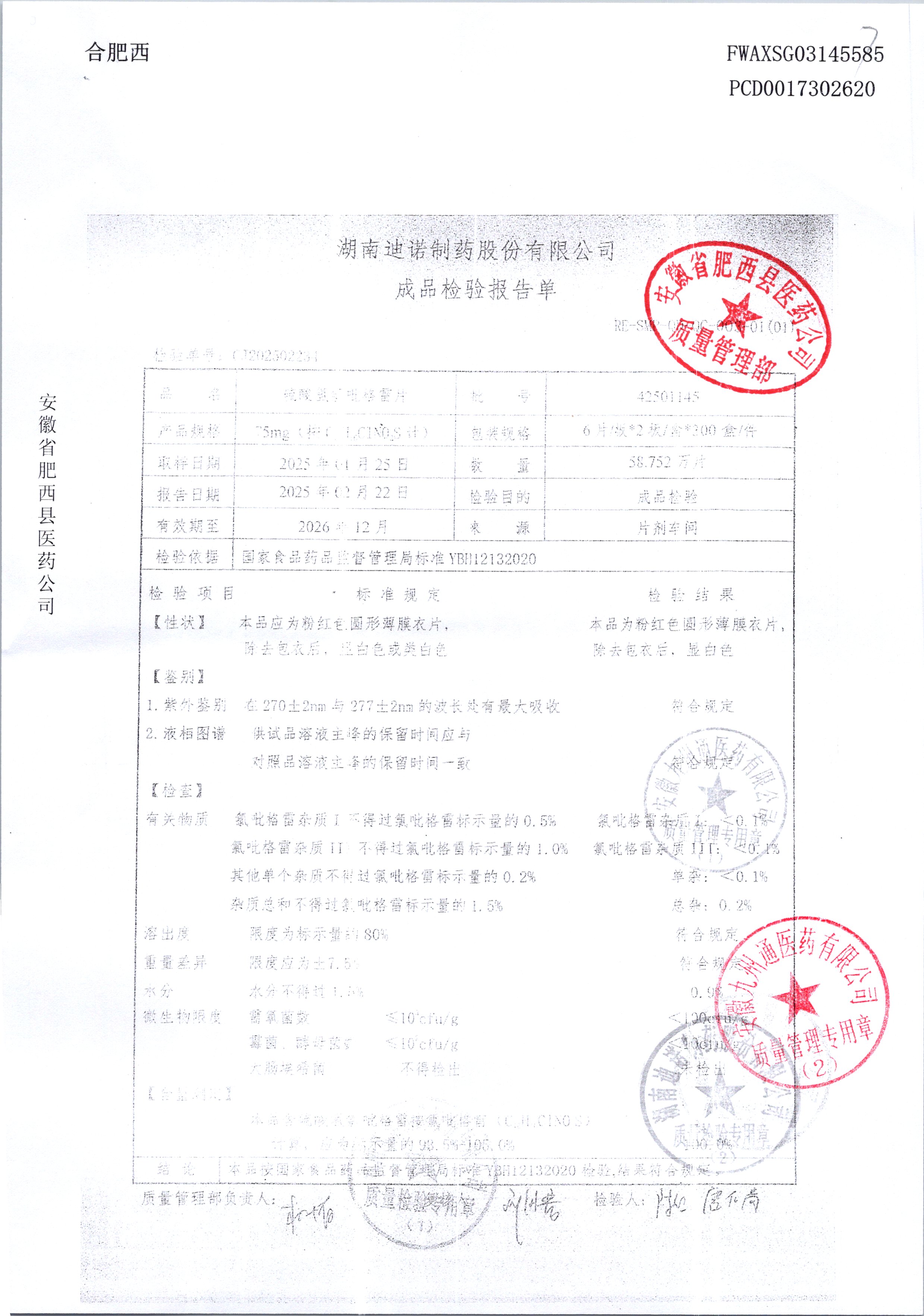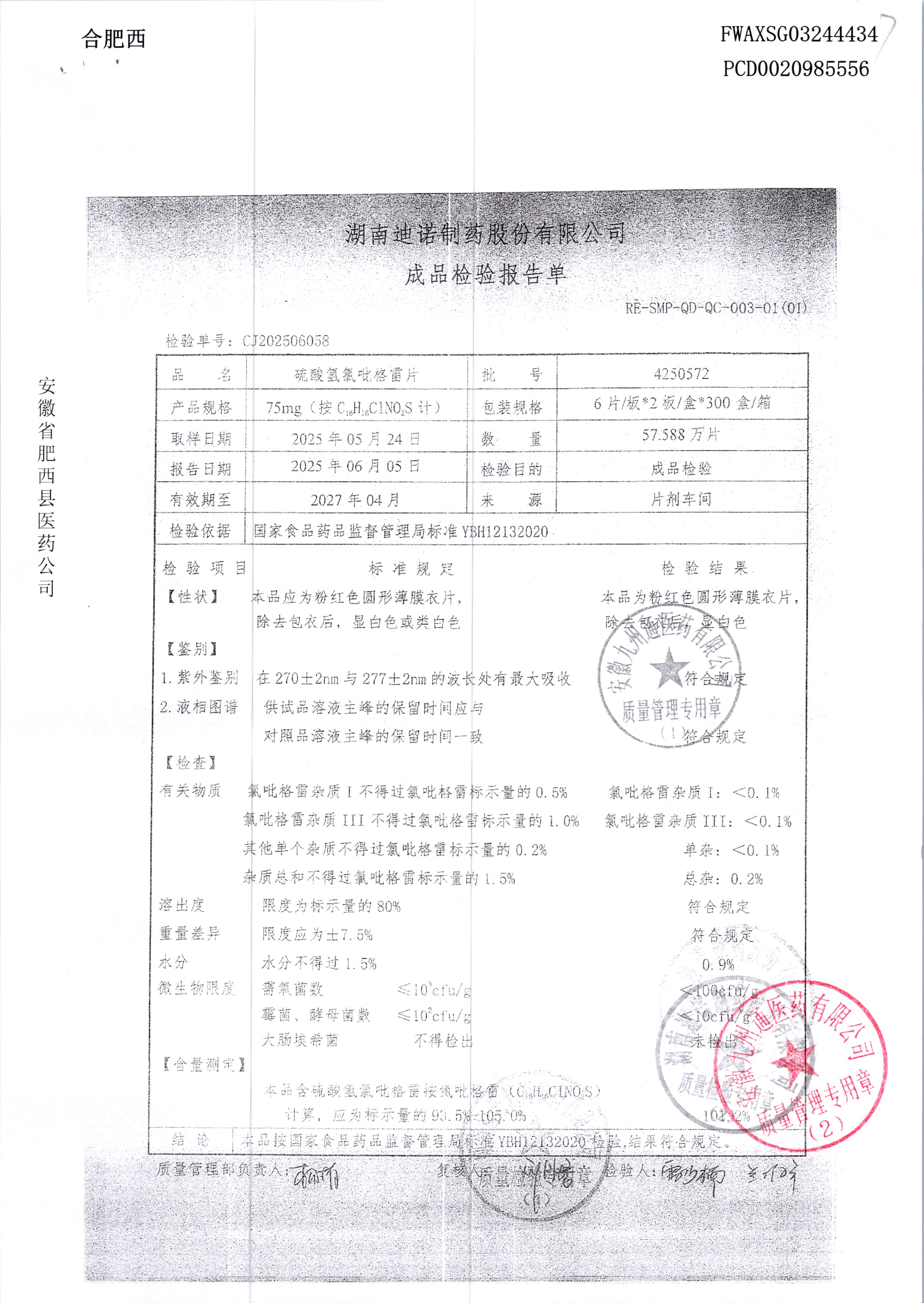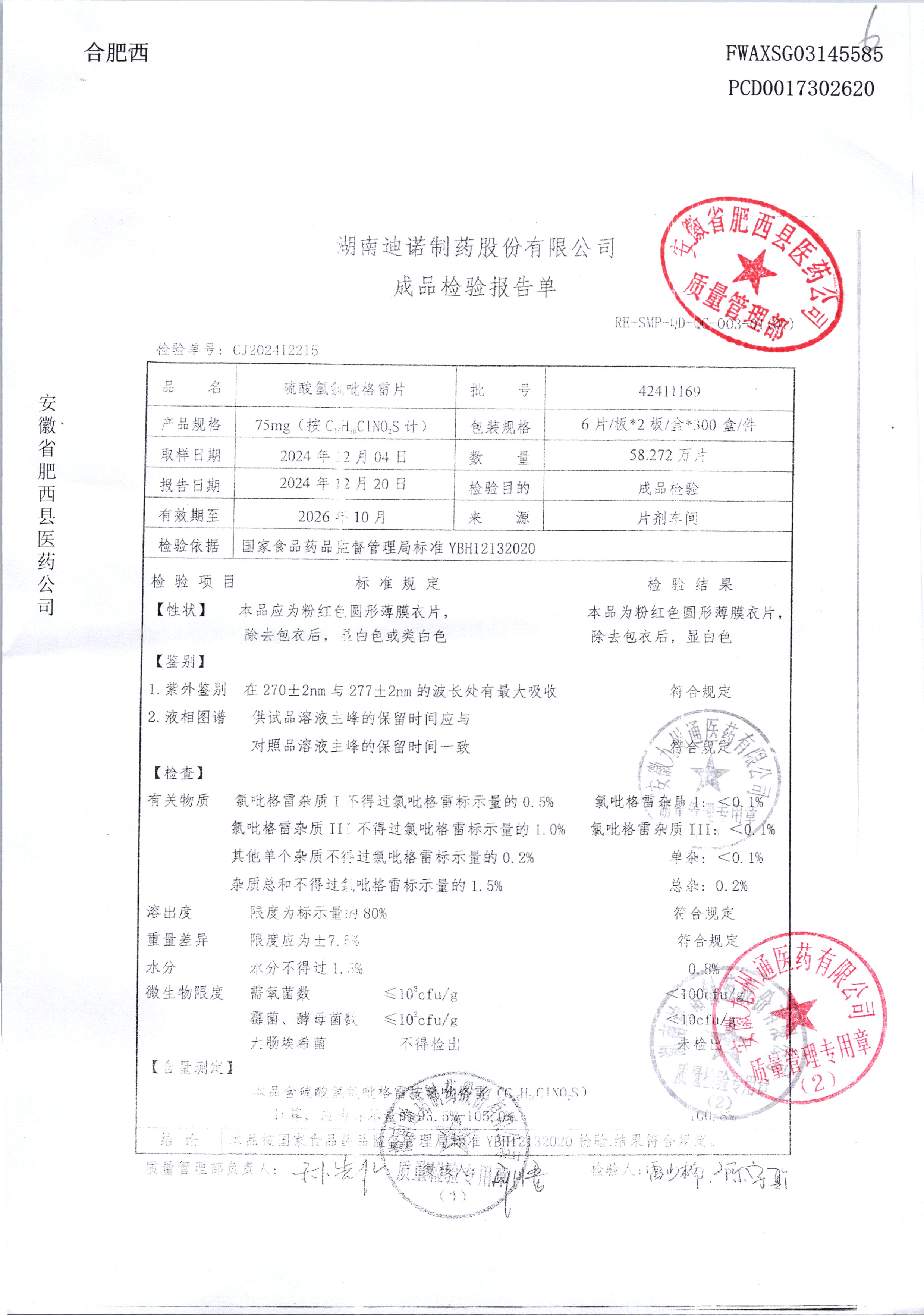 硫酸氫氯吡格雷片 | 75mg*12片 | 42411169 | 查看詳情 |