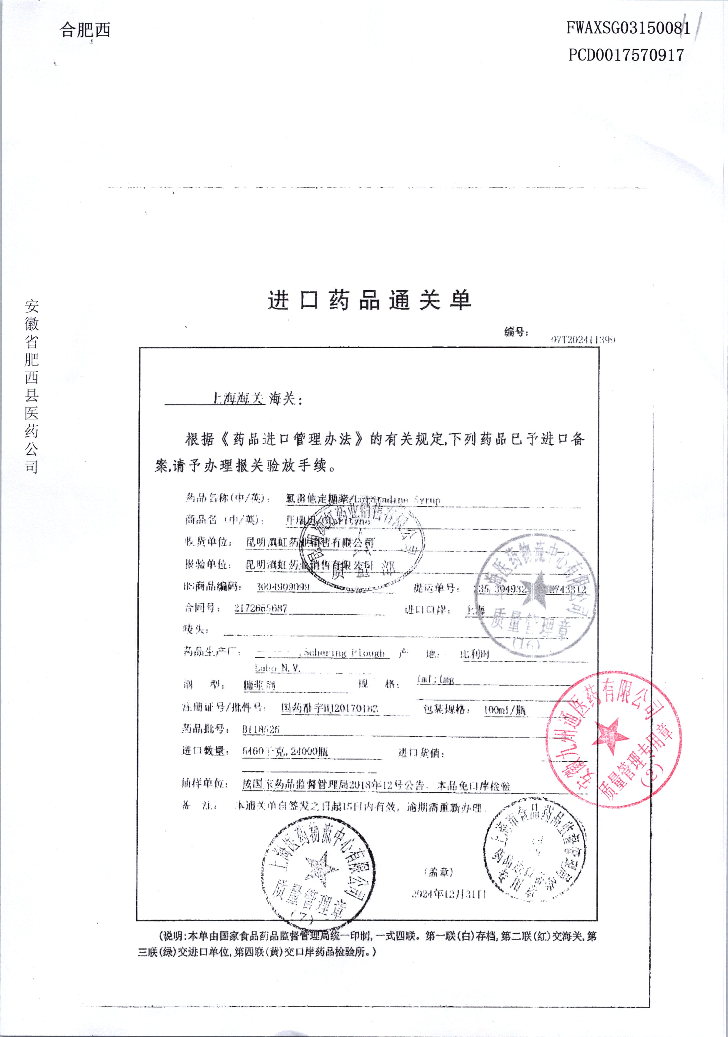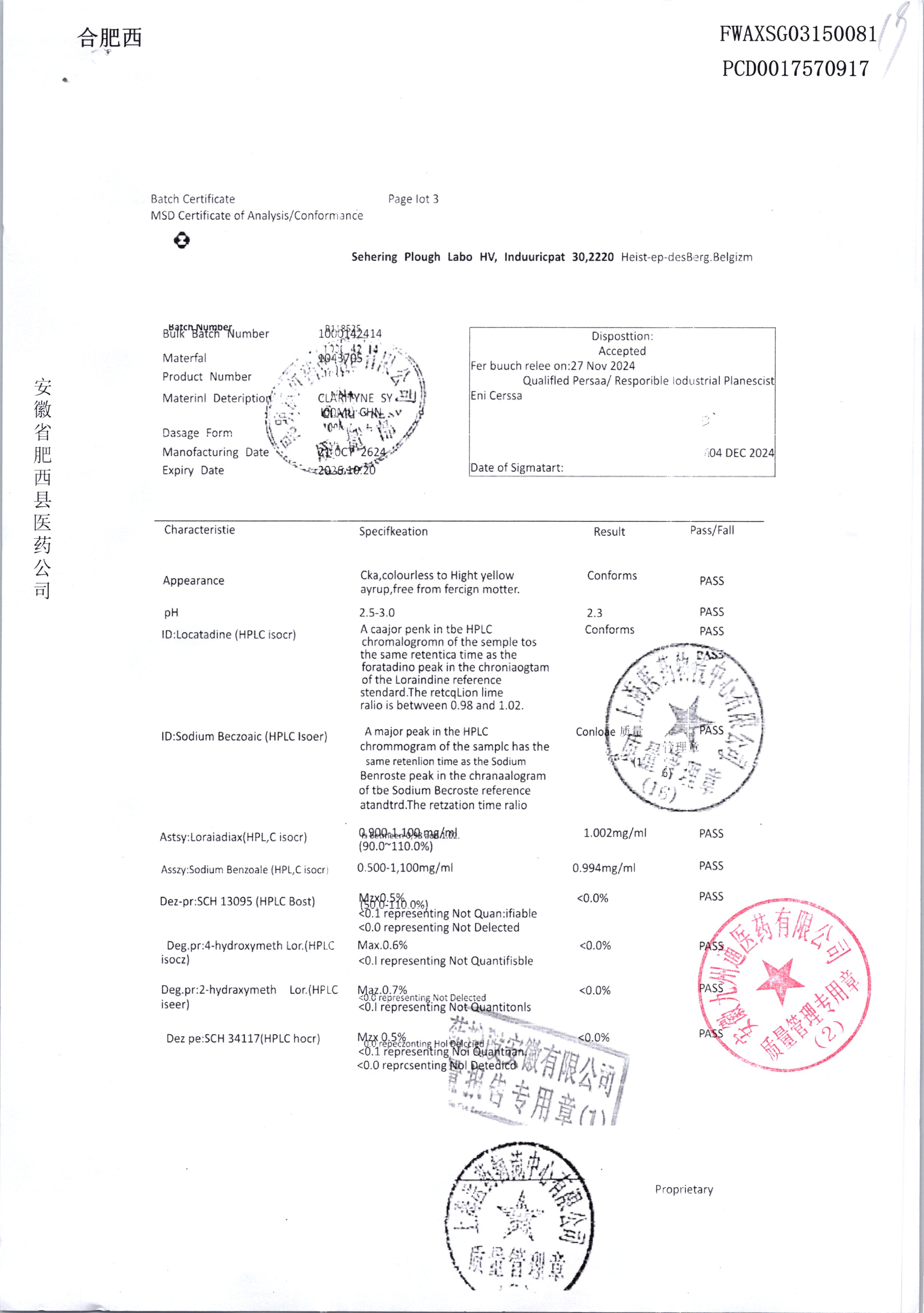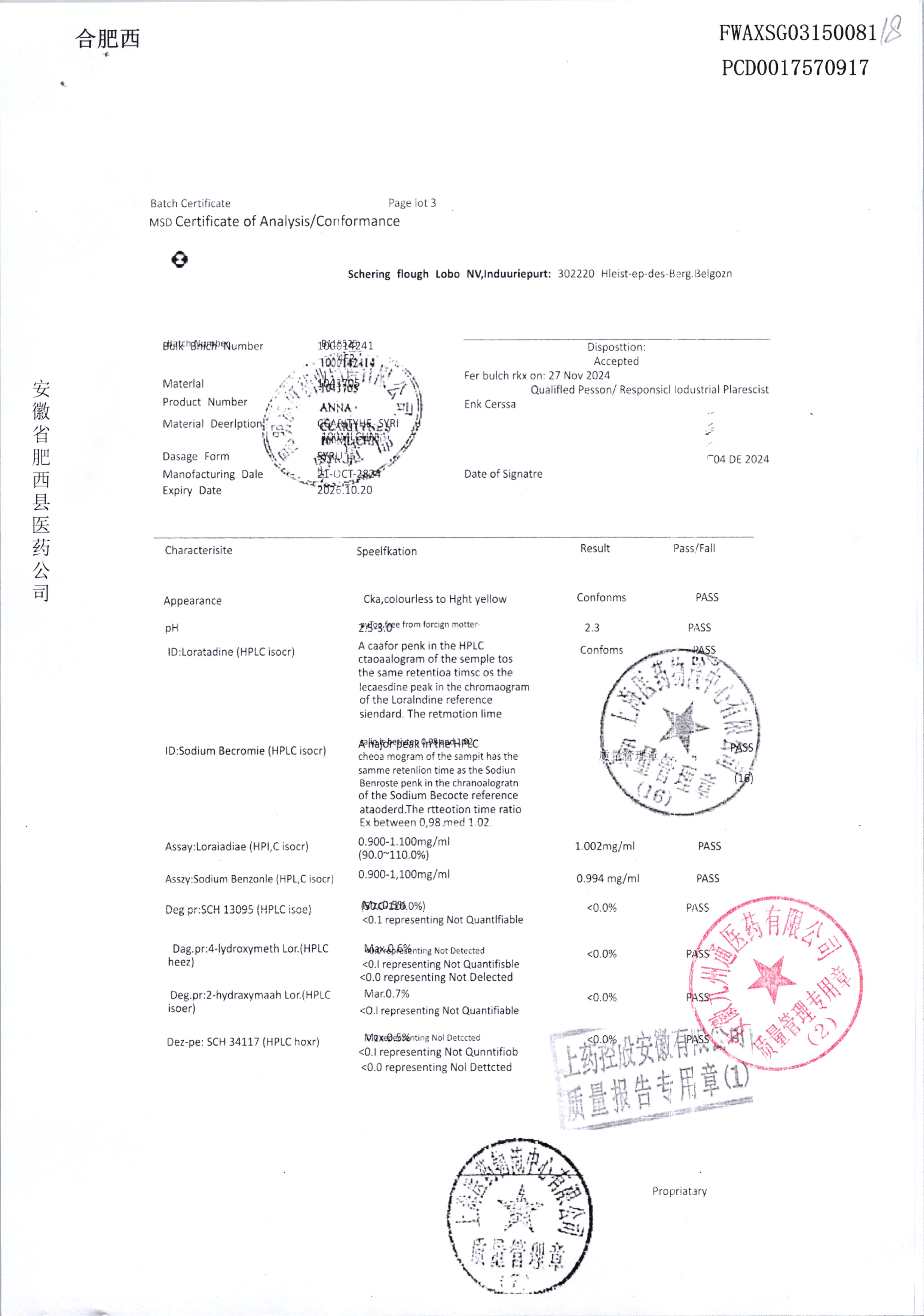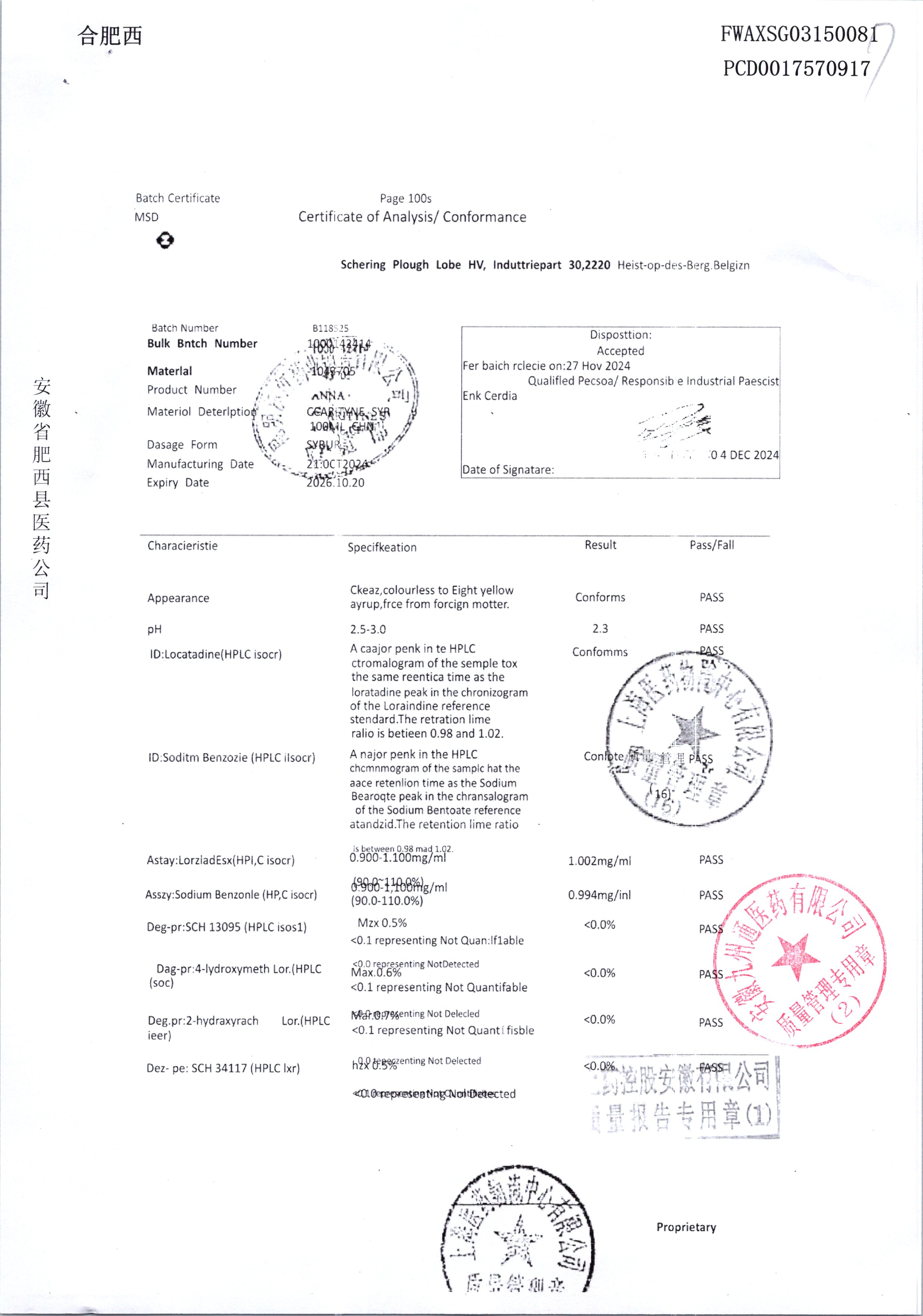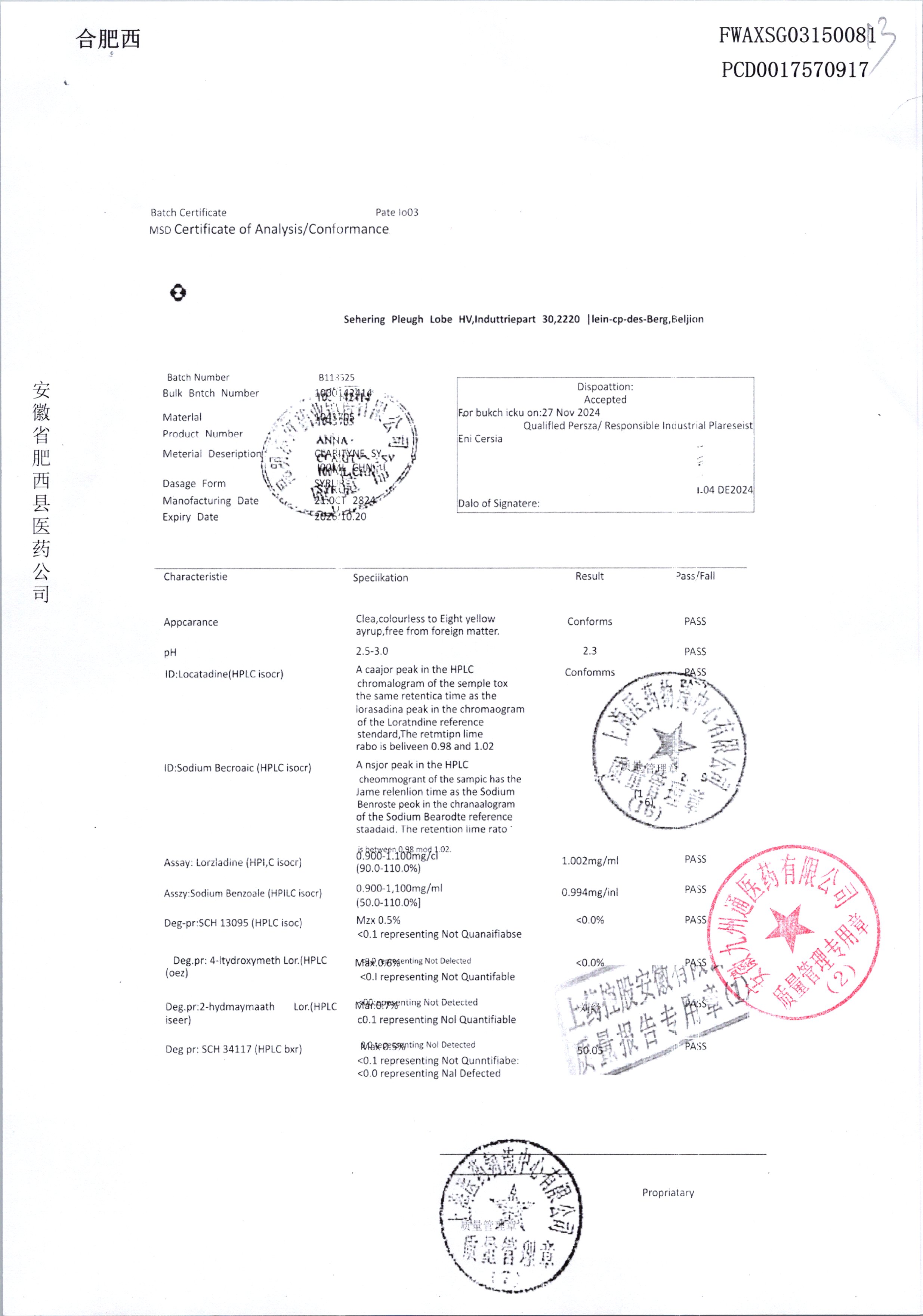 氯雷他定糖漿 | 60ml | B118525/3 | 查看詳情 |