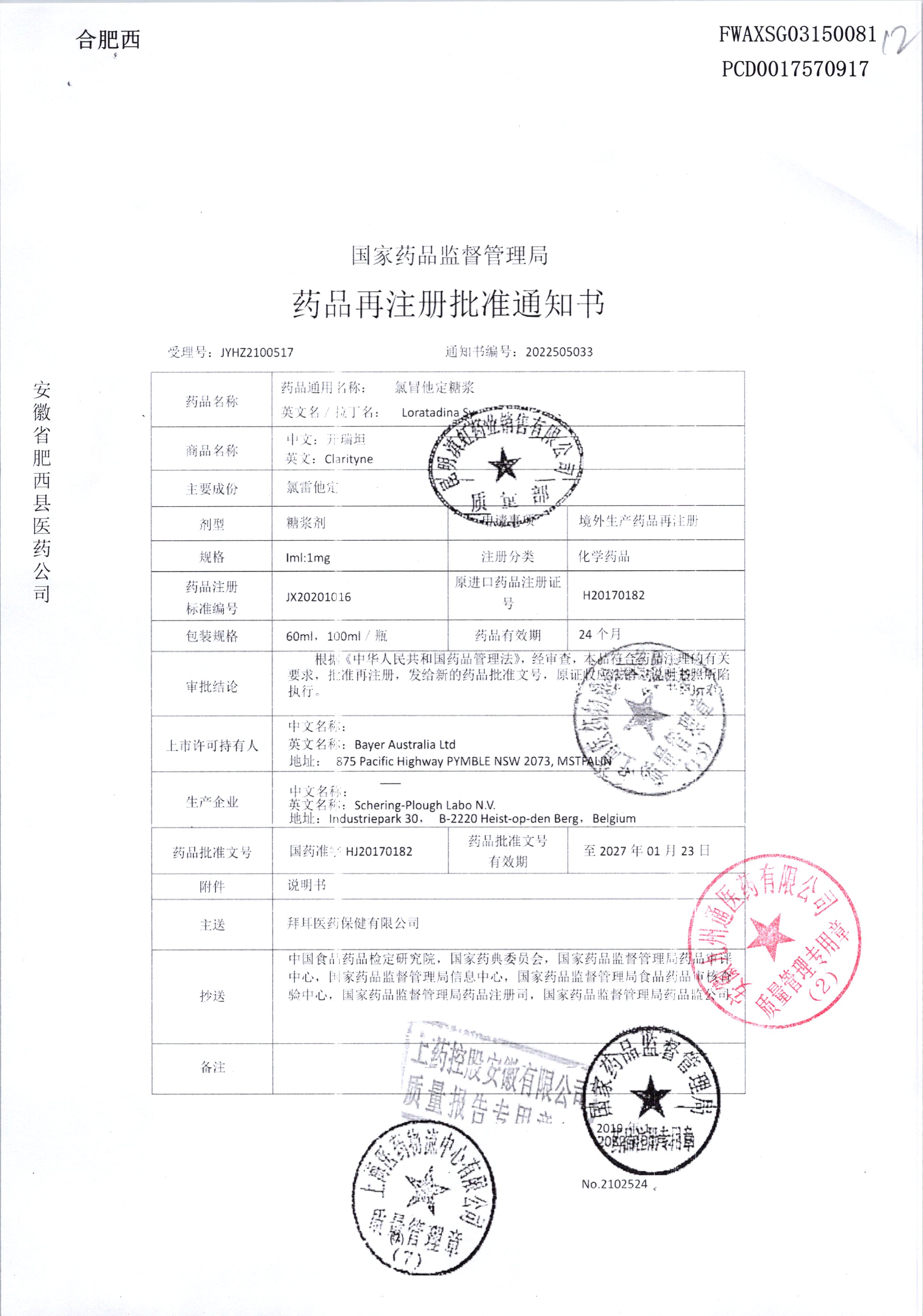 氯雷他定糖漿 | 60ml | B118525/5 | 查看詳情 |