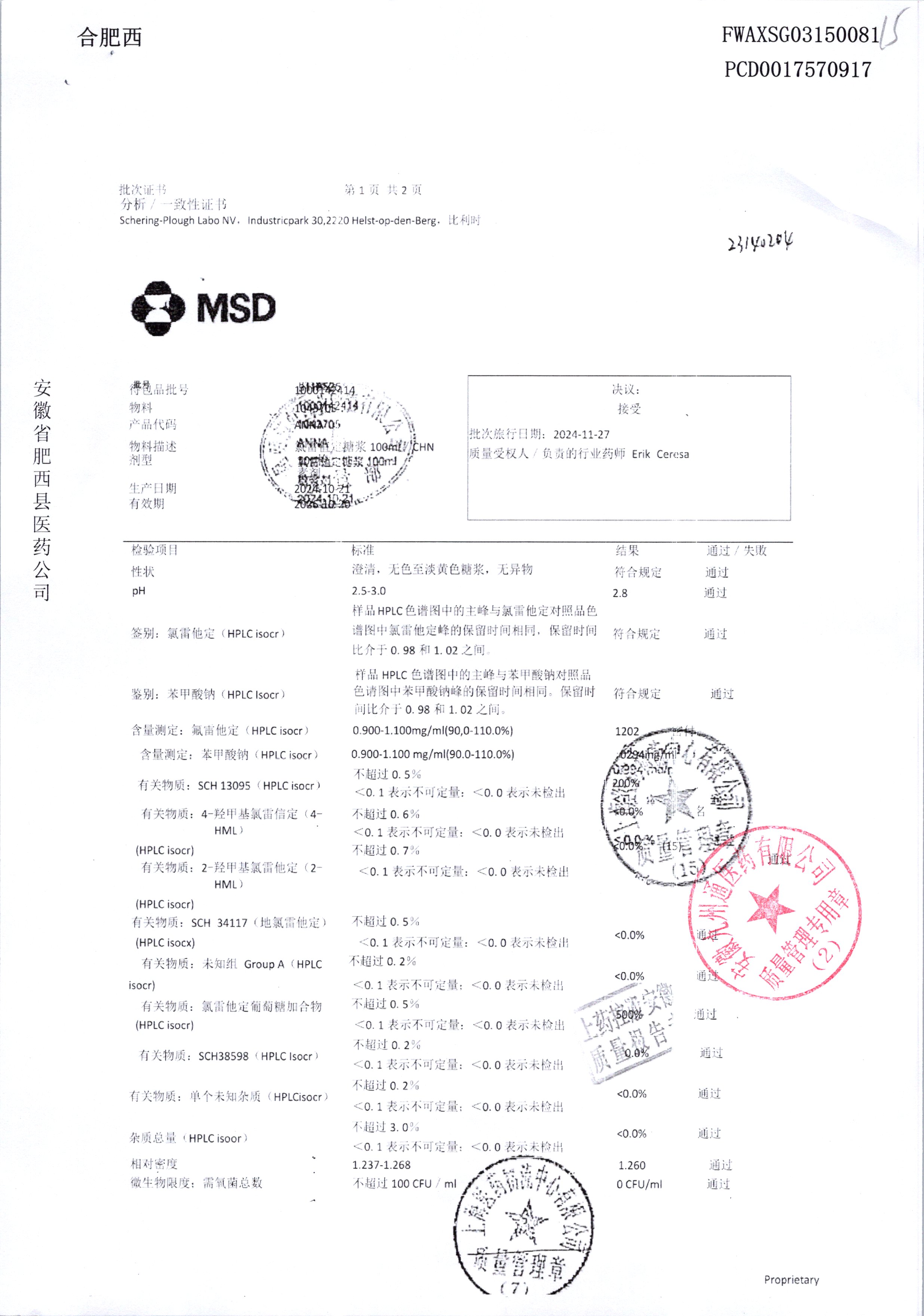 氯雷他定糖漿 | 60ml | B118525/1 | 查看詳情 |