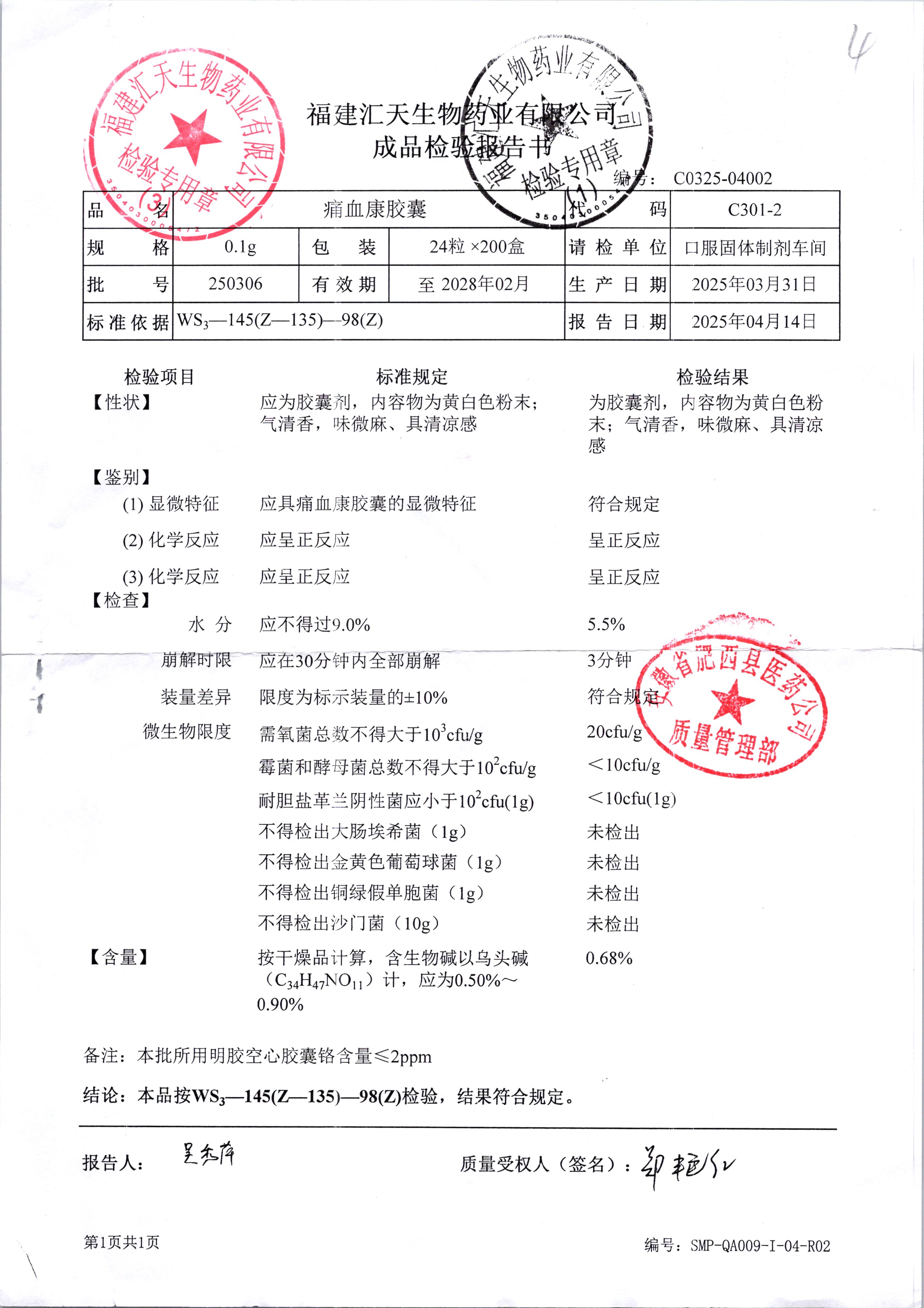 痛血康膠囊 0.1g*24 粒 250306 查看詳情