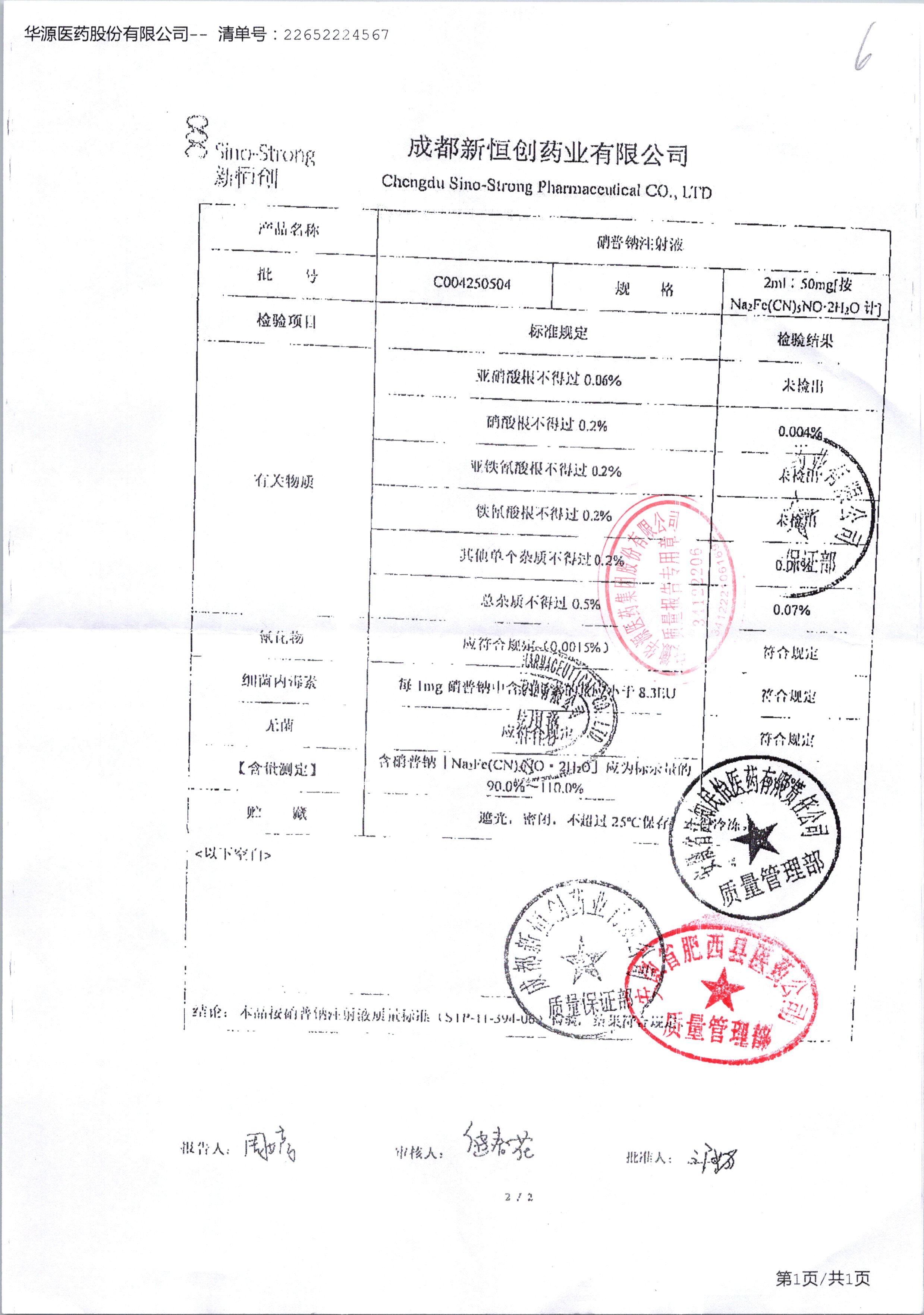 硝普鈉注射液 2ml:50mg C004250504/2 查看詳情