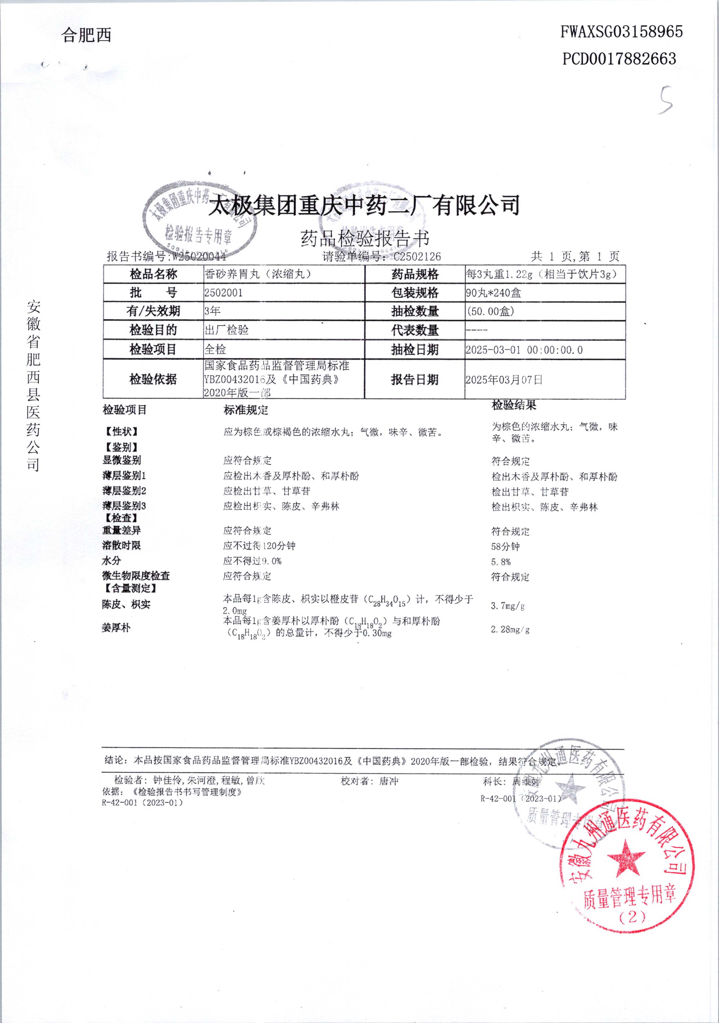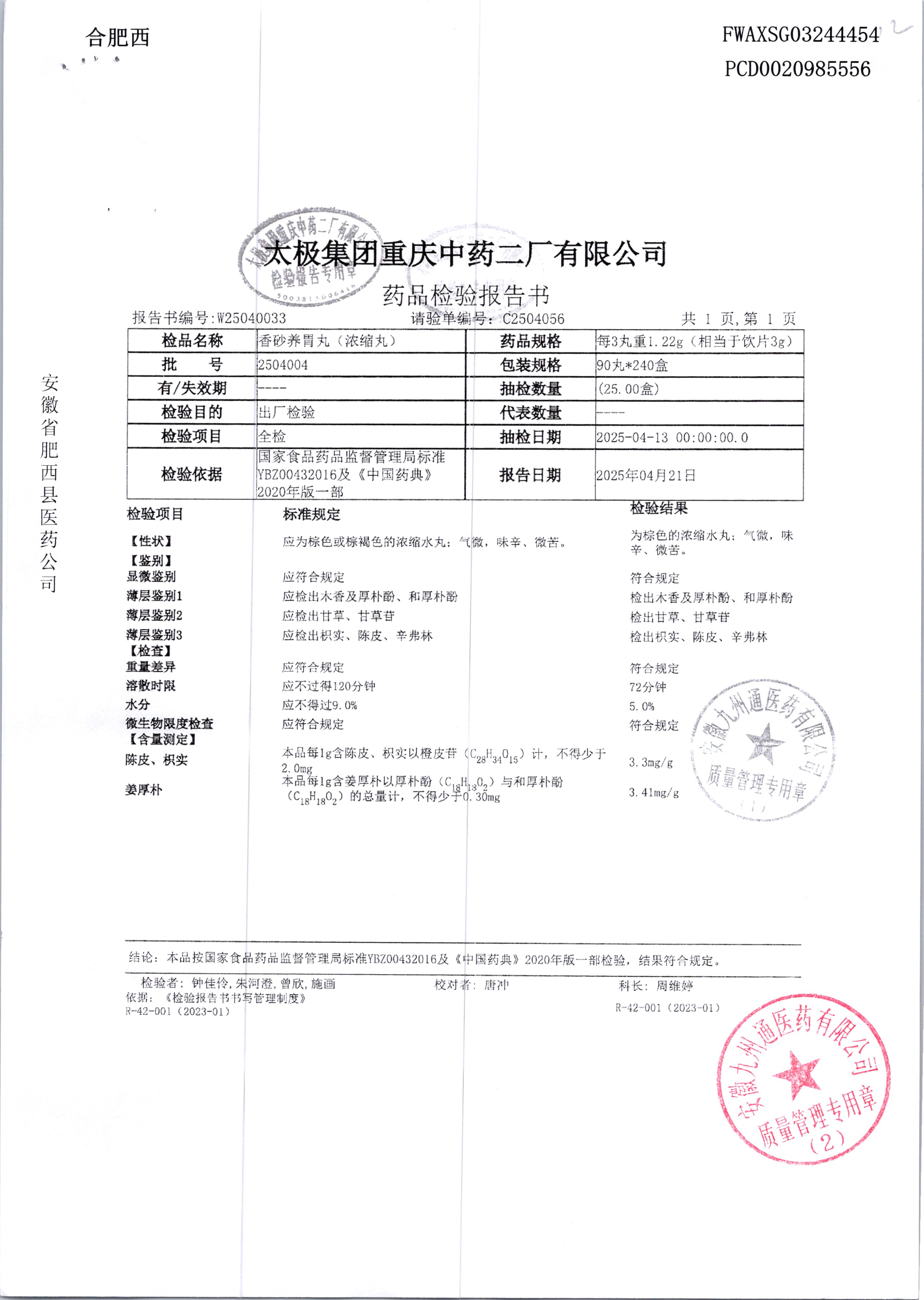 名稱 規(guī)格 批號 藥檢報告