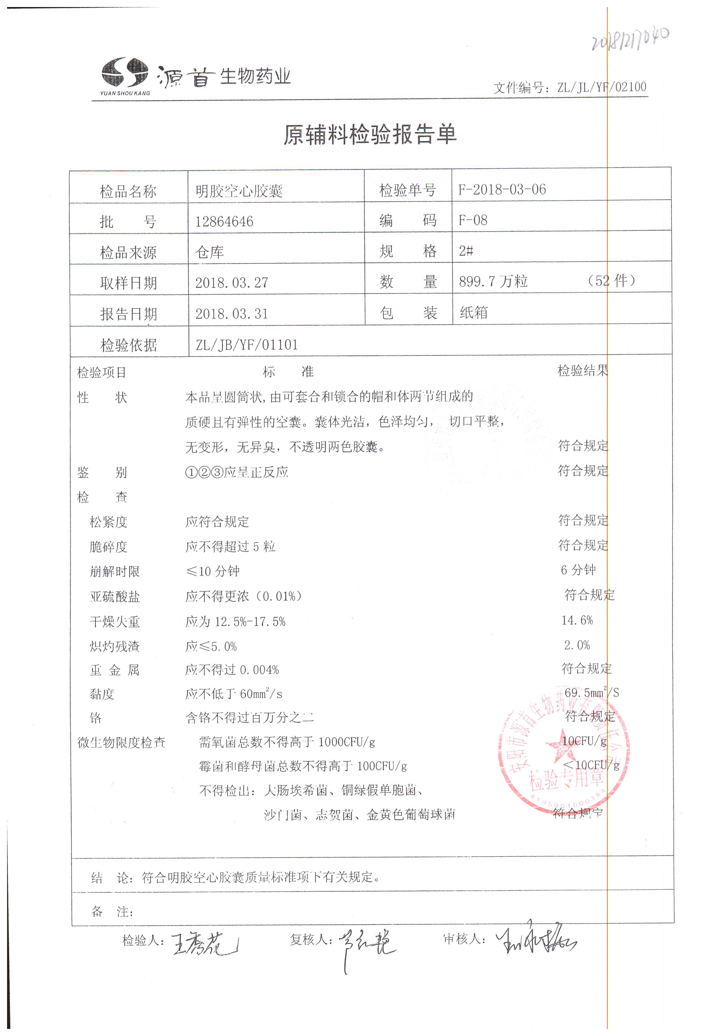 蠟樣芽孢桿菌活菌膠囊(源首) | 0.25g | 20180504(2/3) | 查看詳情 |