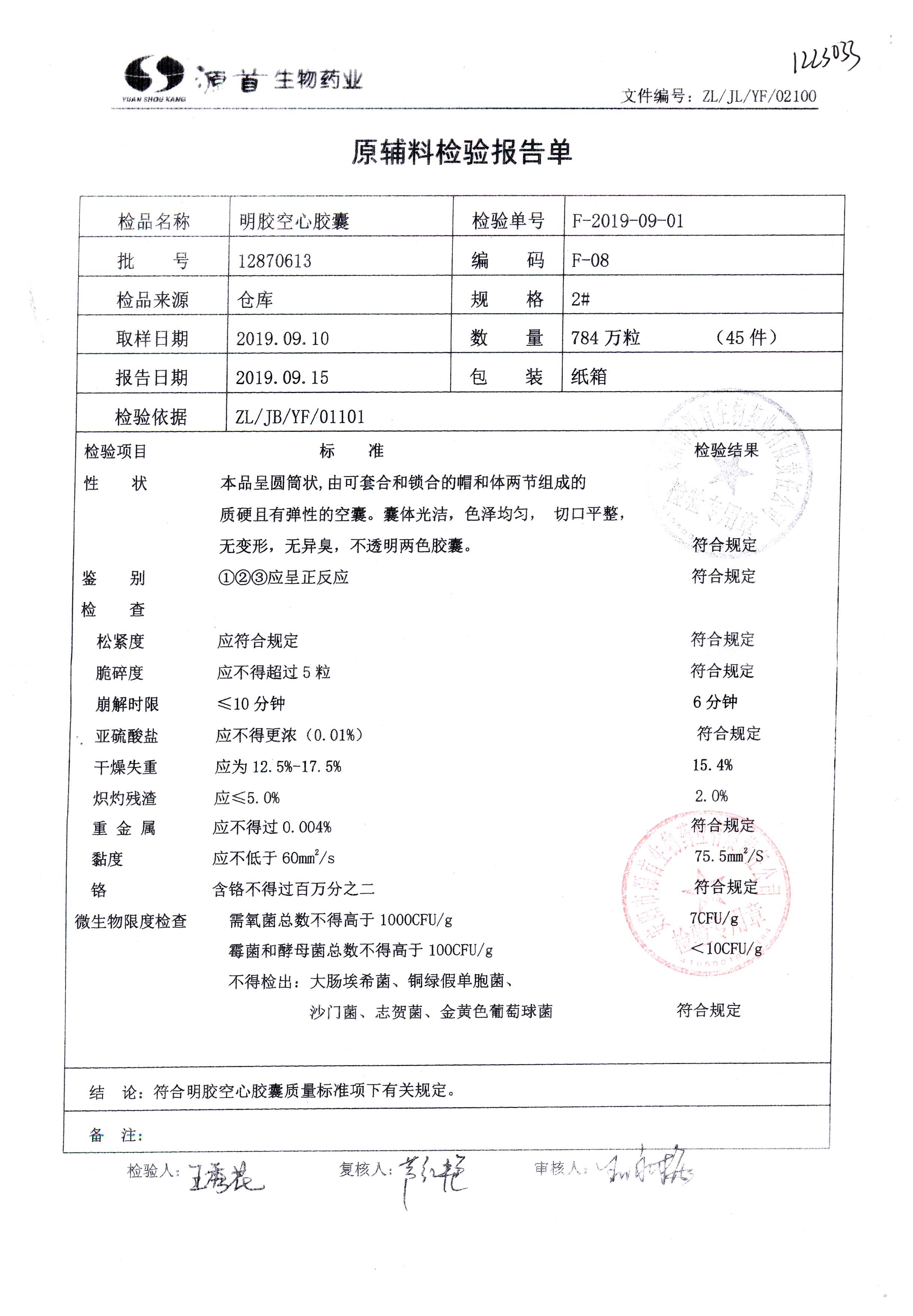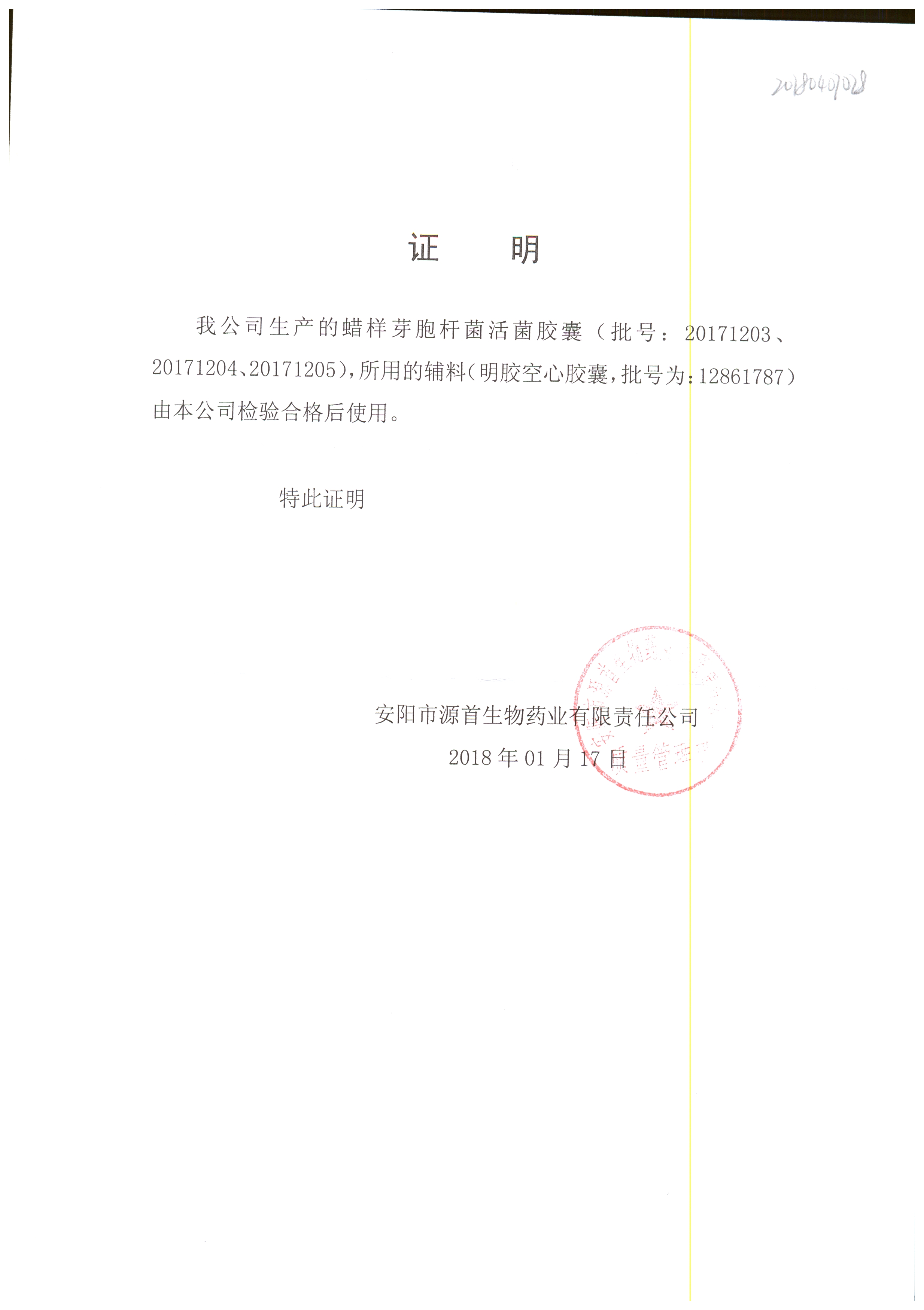 蠟樣芽孢桿菌活菌膠囊(源首) | 0.25g | 20180907(2/3) | 查看詳情 |