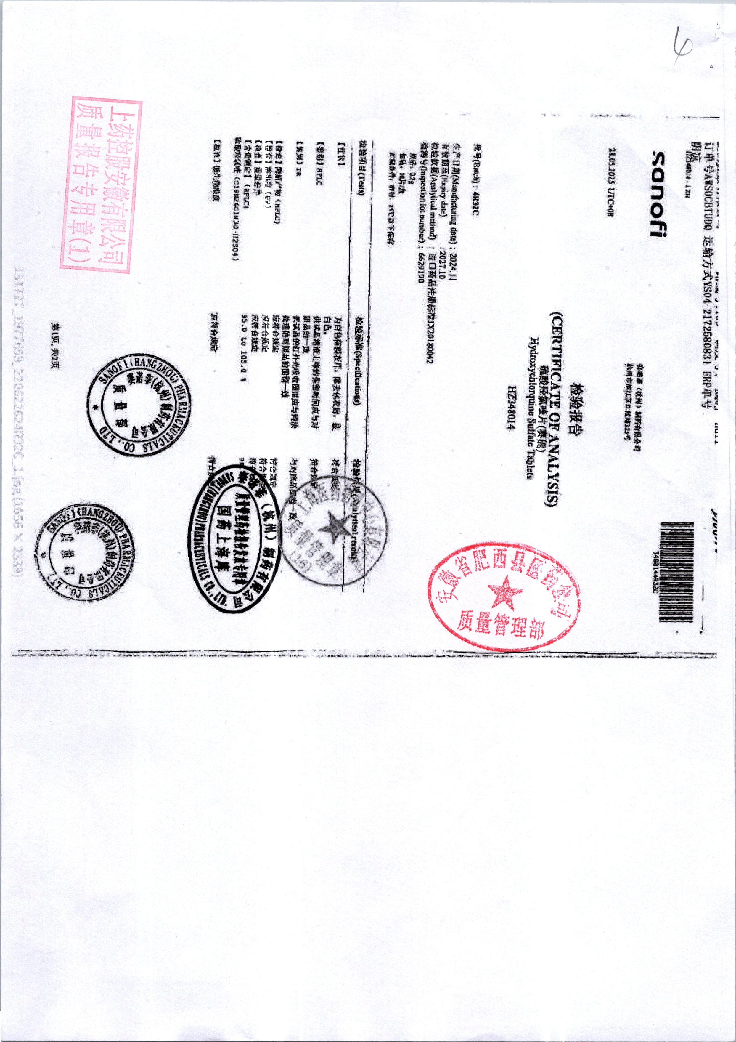 硫酸羥氯喹片 0.2*10s 5R116/1 查看詳情