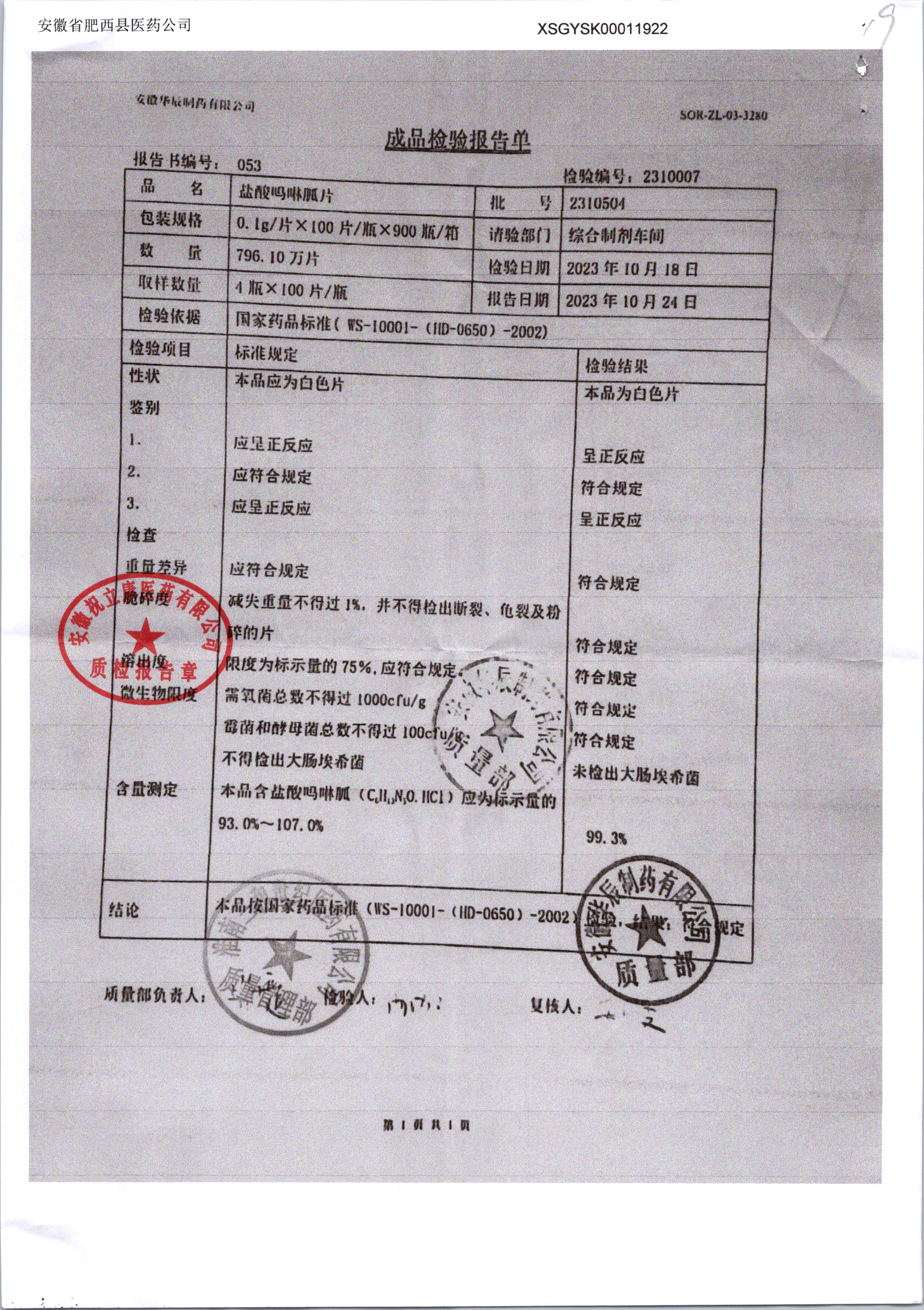 鹽酸嗎啉胍片 0.1g*100片 2310504 查看詳情