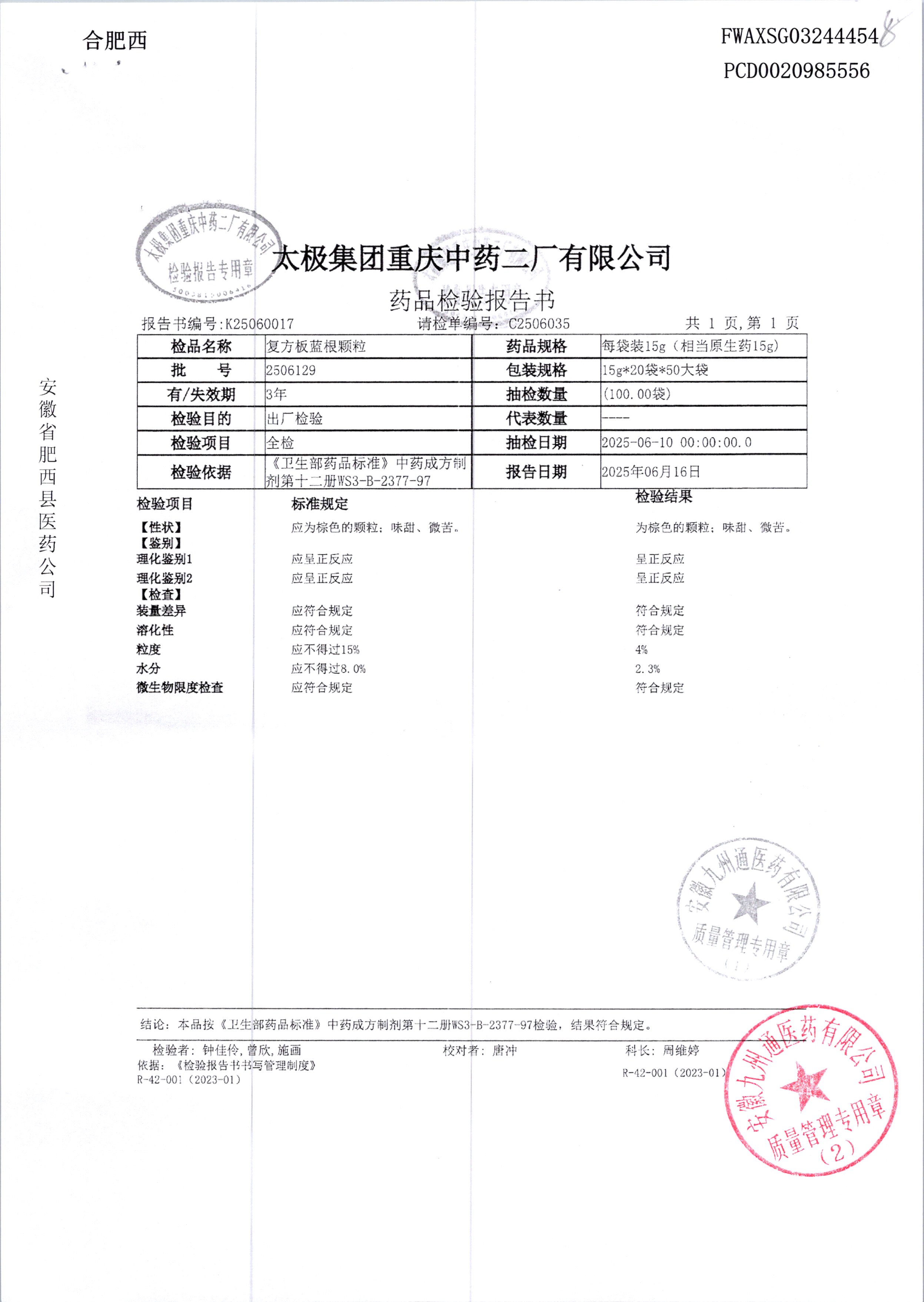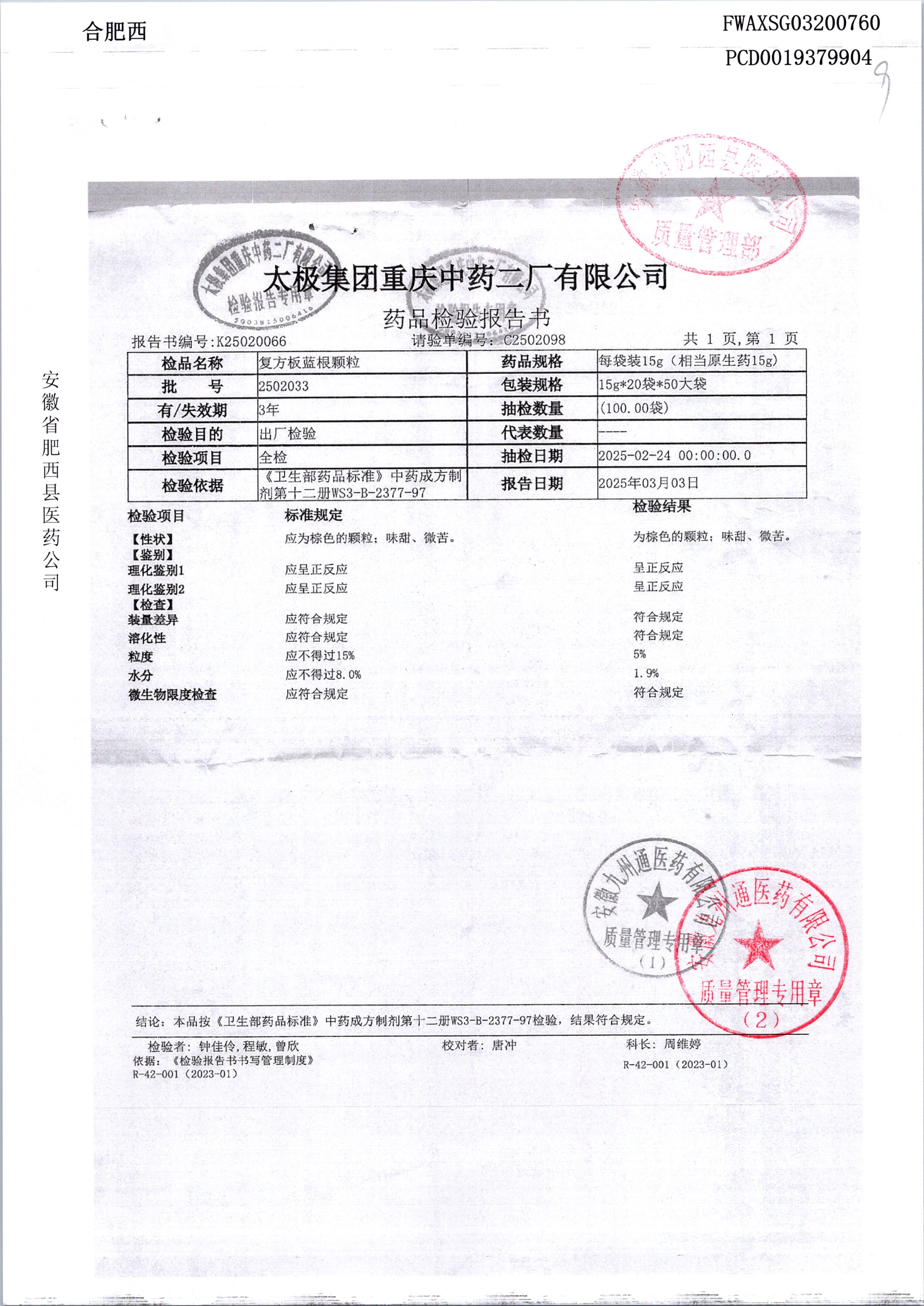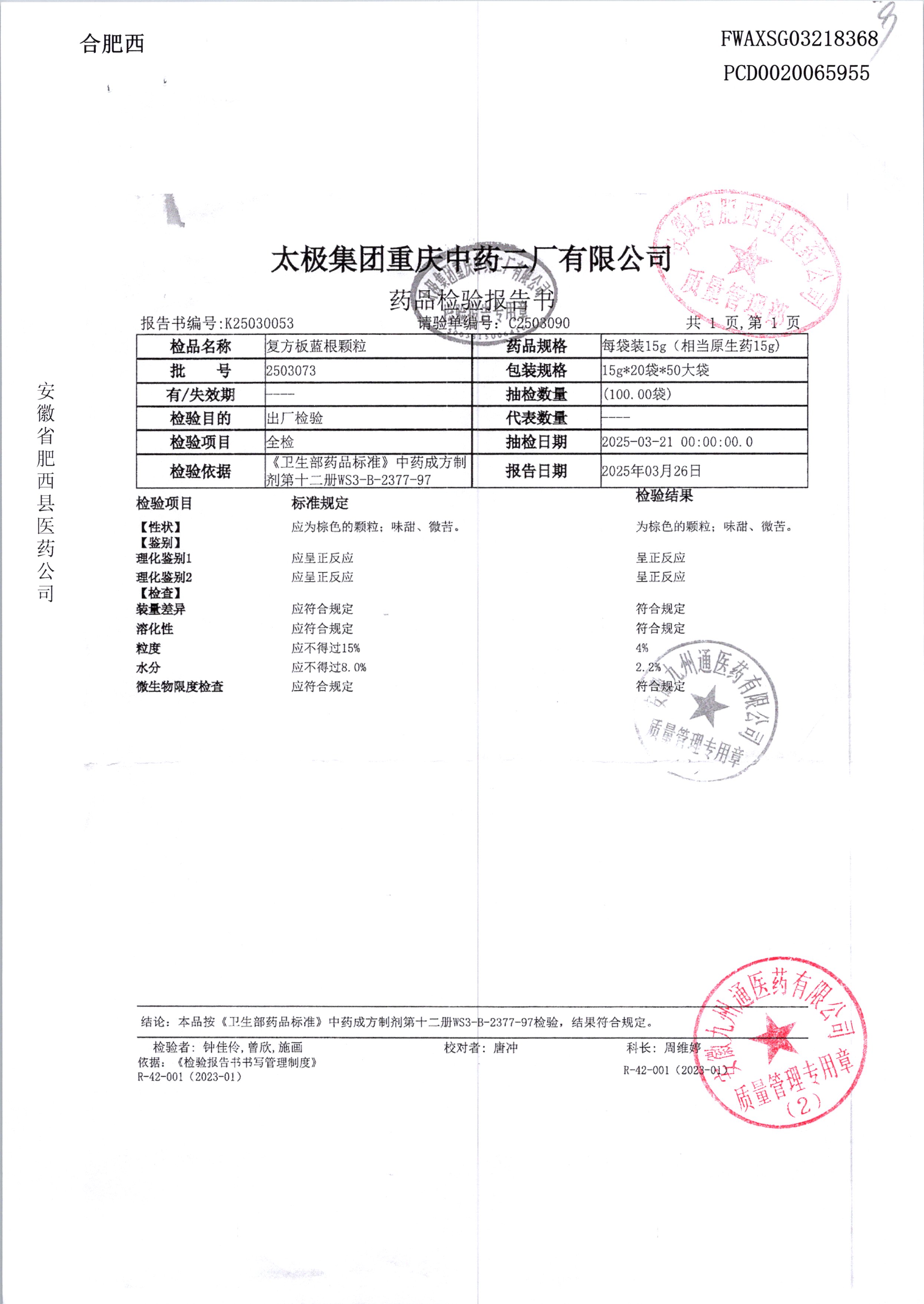 復(fù)方板藍(lán)根顆粒 | 15*20 | 2503073 | 查看詳情 |