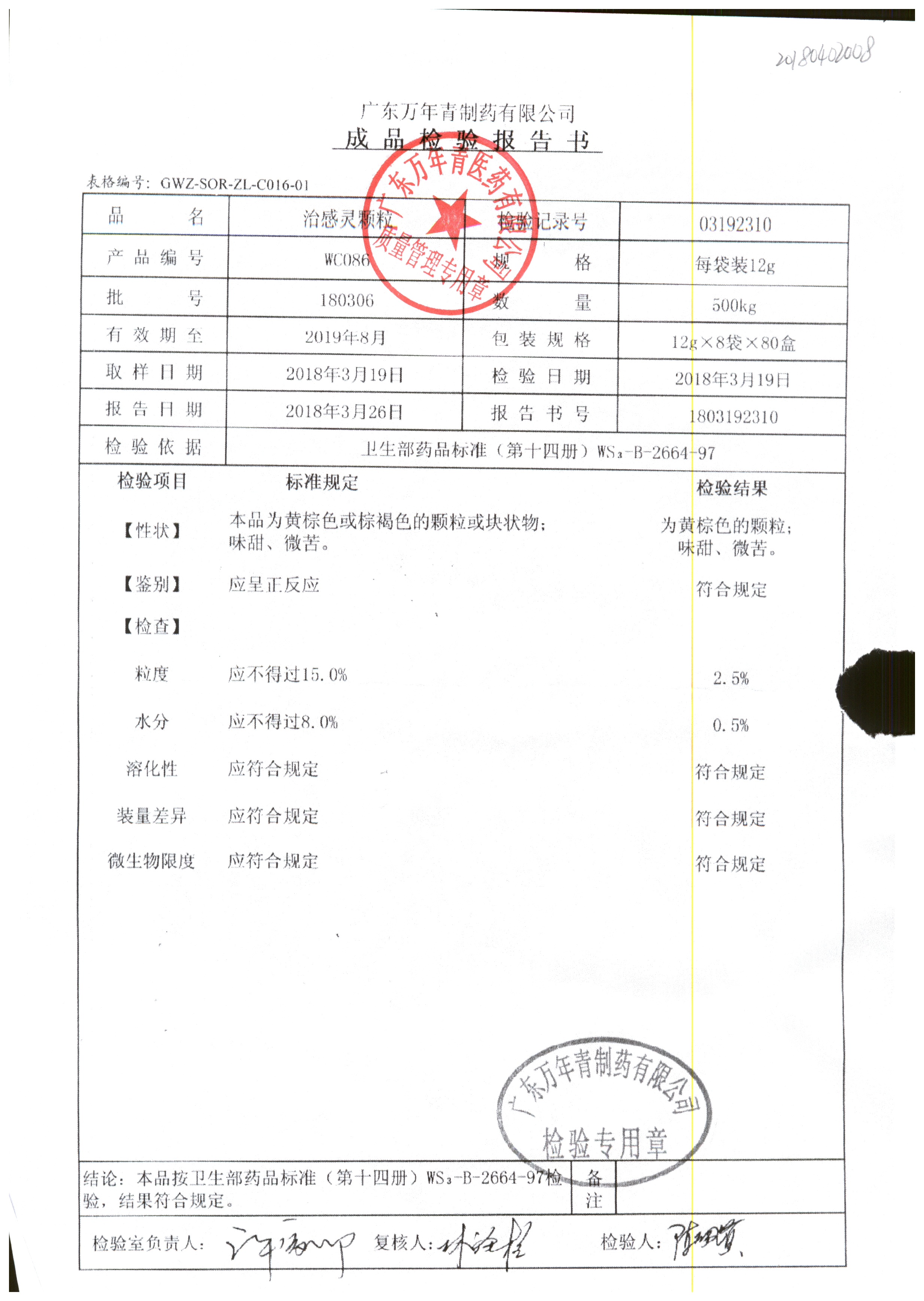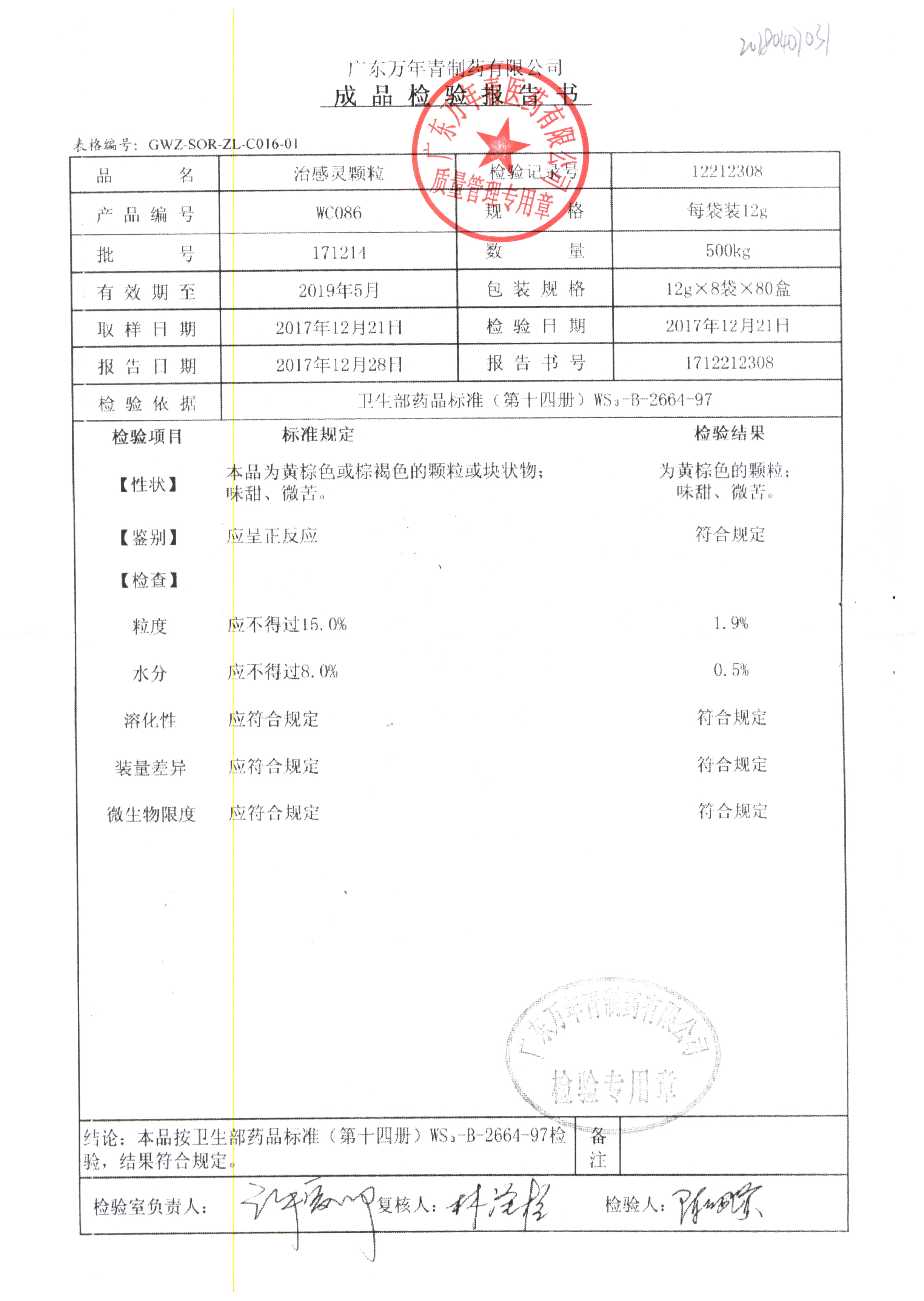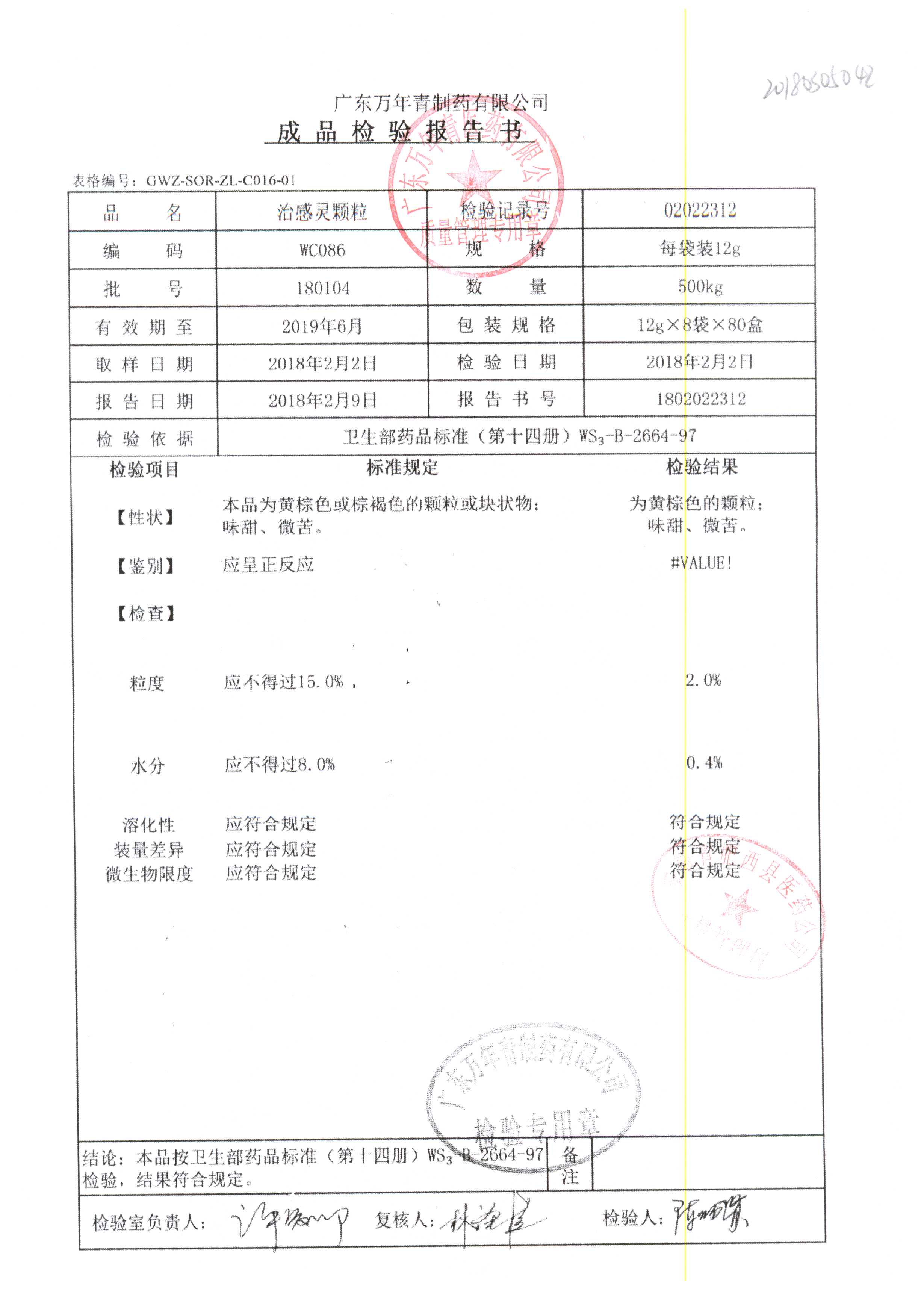 名稱 規(guī)格 批號 藥檢報告