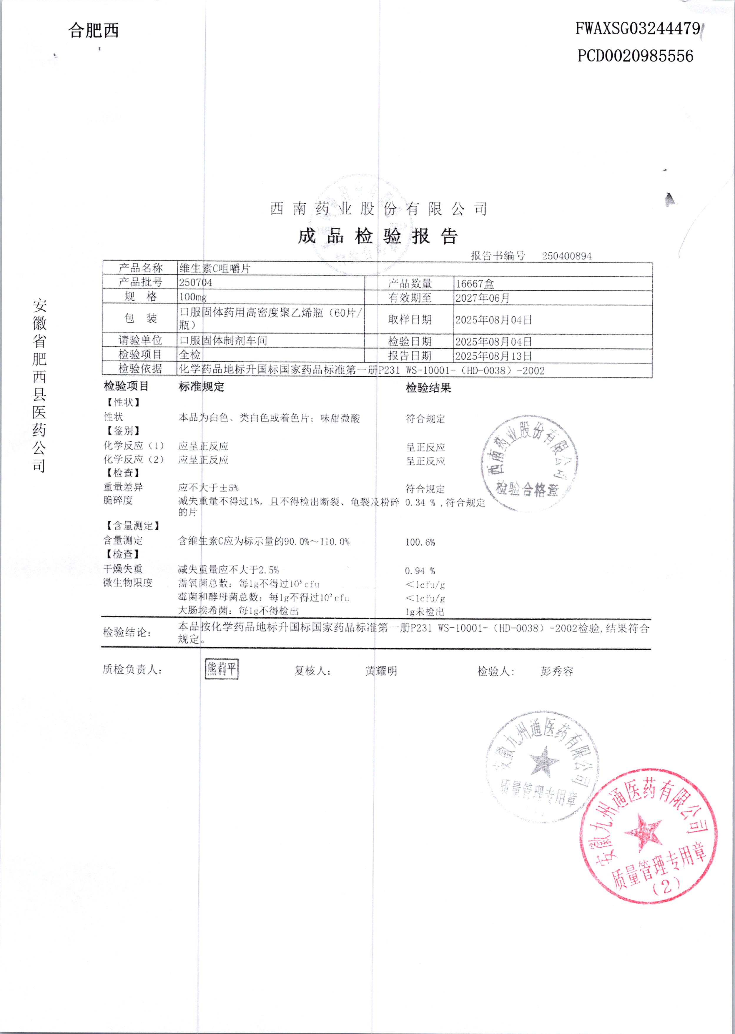 名稱 規(guī)格 批號(hào) 藥檢報(bào)告