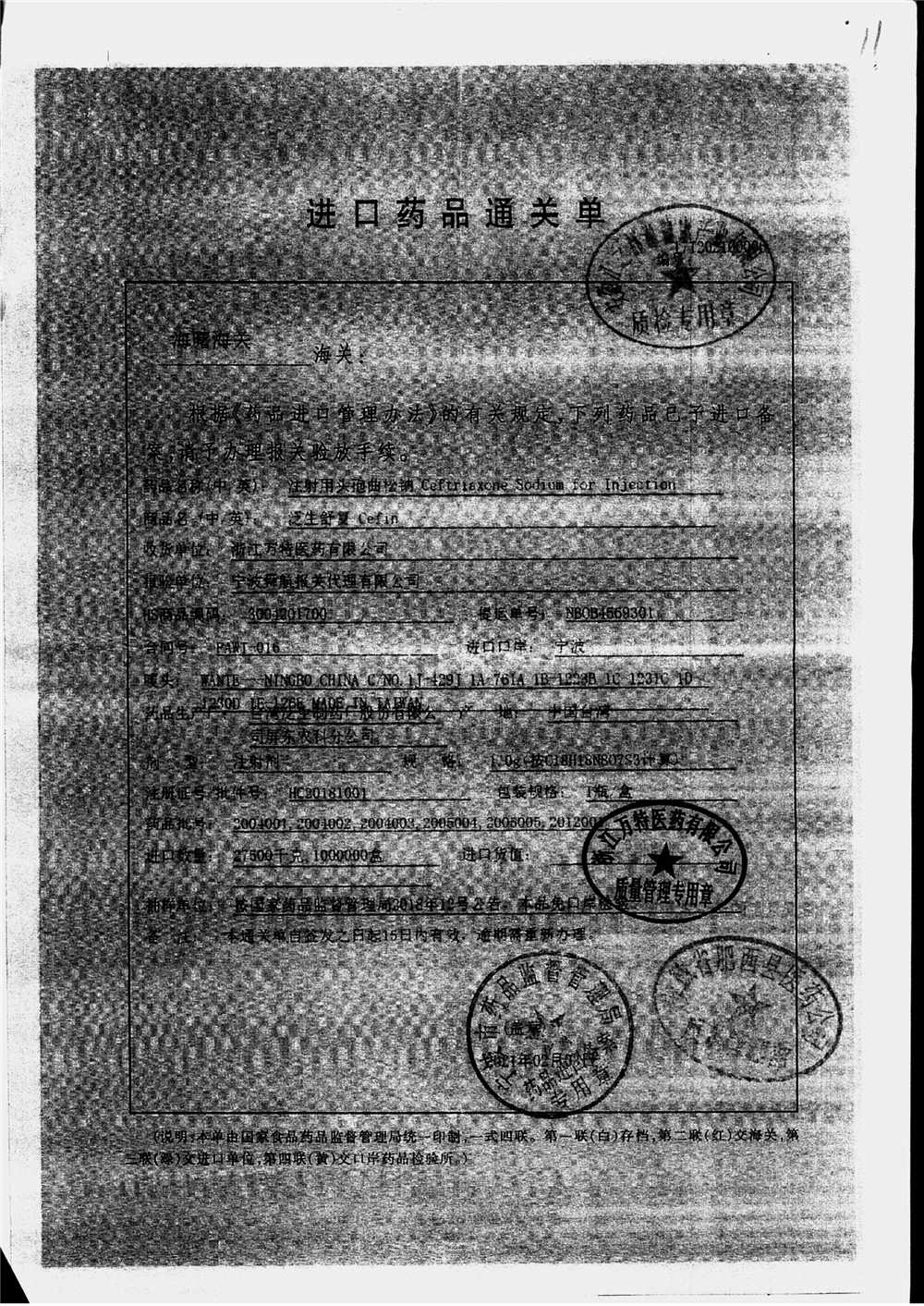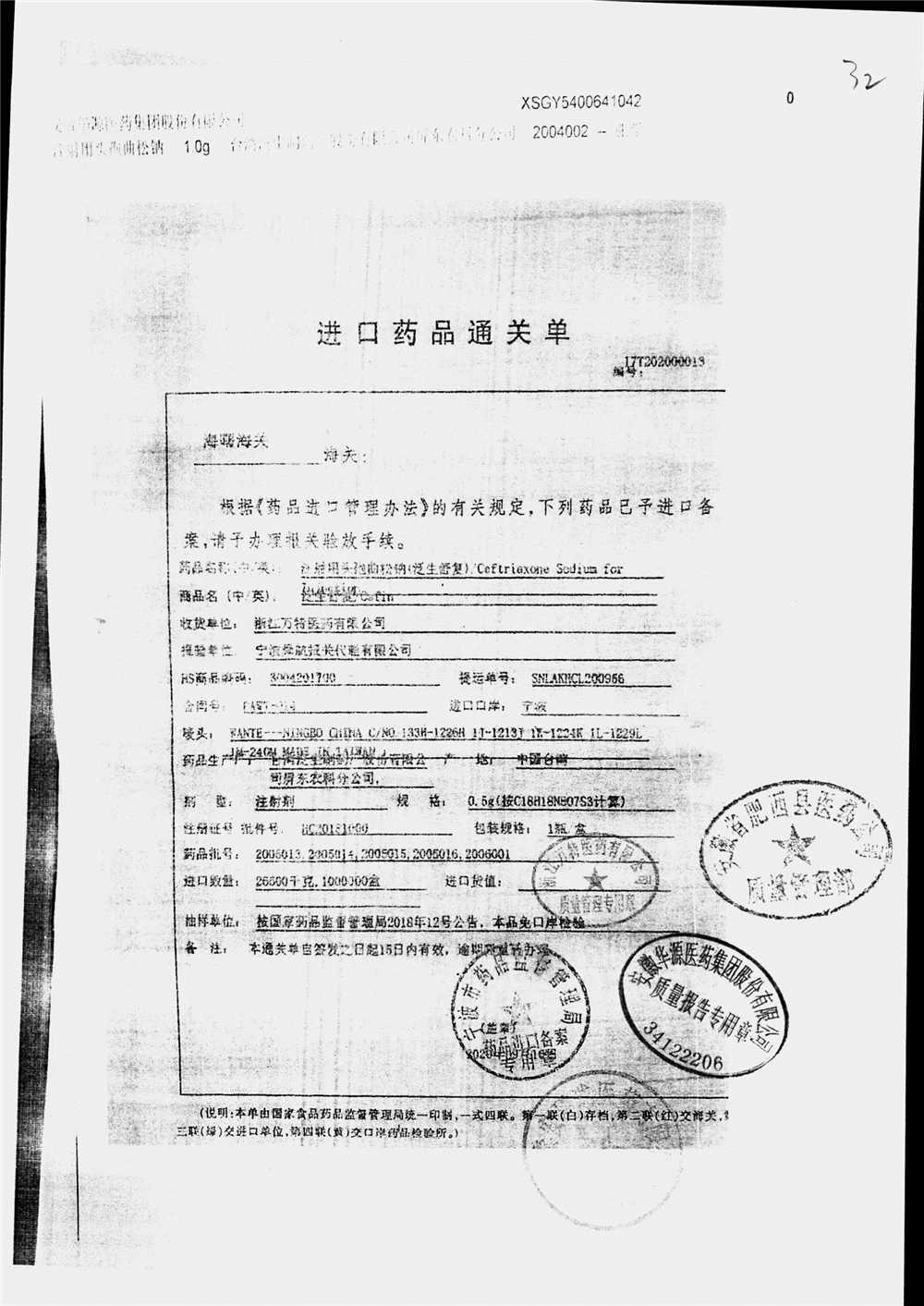 注射用頭孢曲松鈉 | 2.0g | 2004003(2/4) | 查看詳情 |