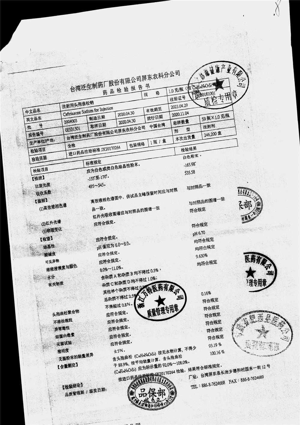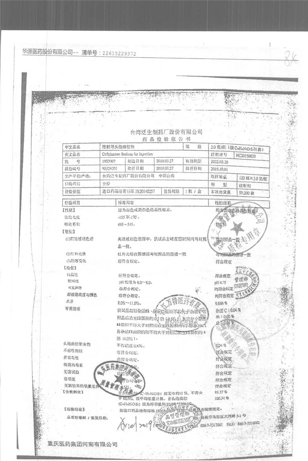 注射用頭孢曲松鈉 | 2.0g | 1903007(3/5) | 查看詳情 |