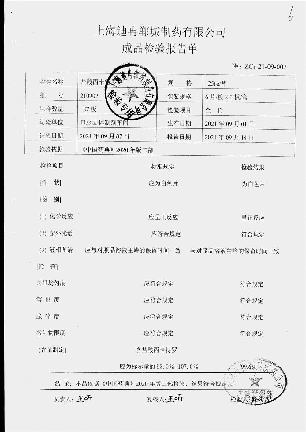鹽酸丙卡特羅片 | 25mg*6s | 210902 | 查看詳情 |