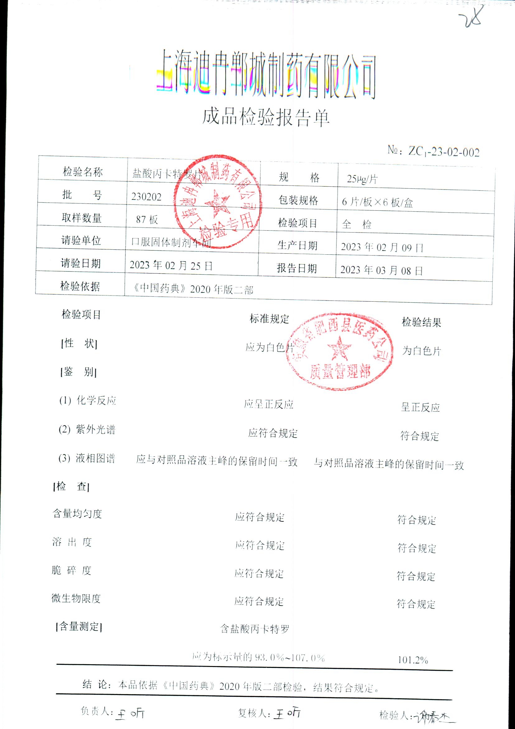 鹽酸丙卡特羅片 | 25mg*6s | 220301 | 查看詳情 |
