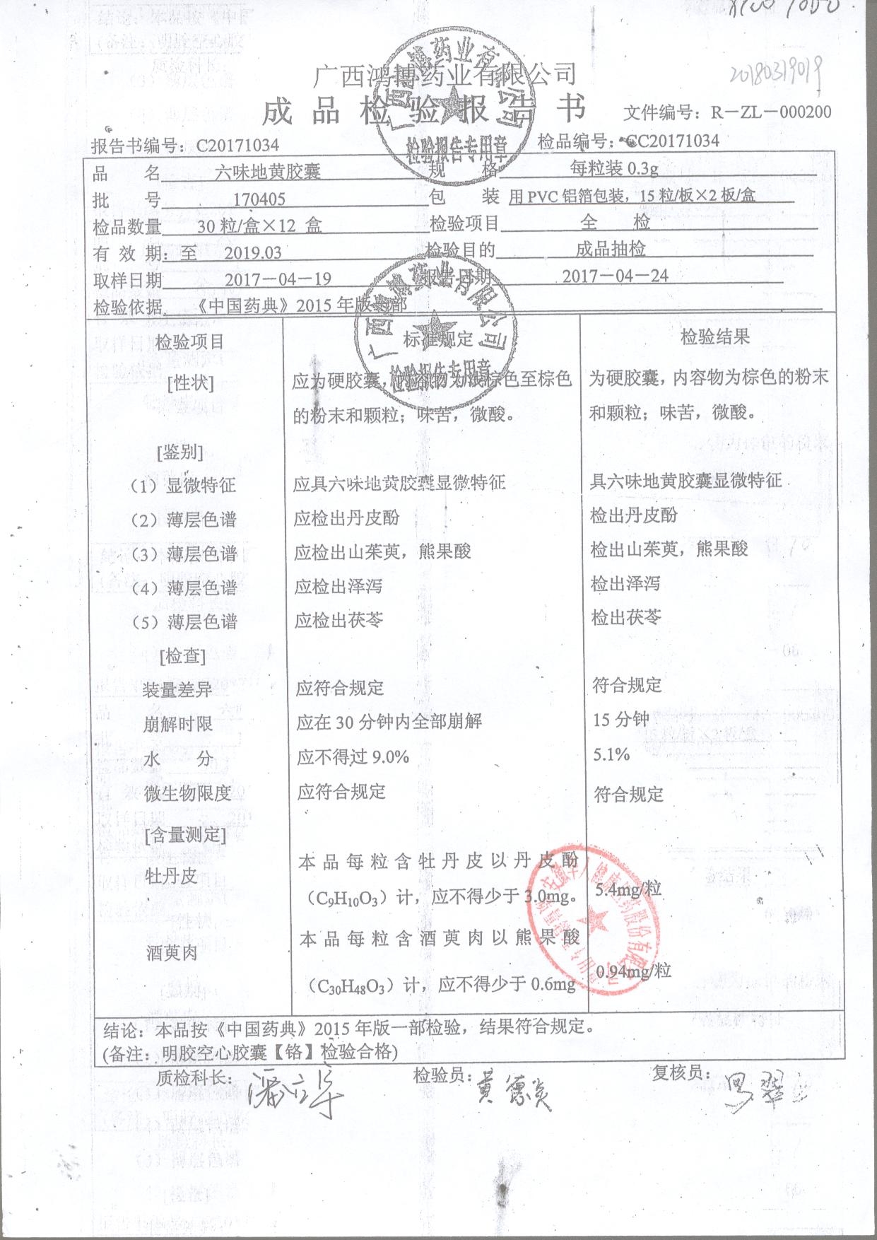 六味地黃膠囊 | 0.3g*30粒 | 170406 | 查看詳情 |