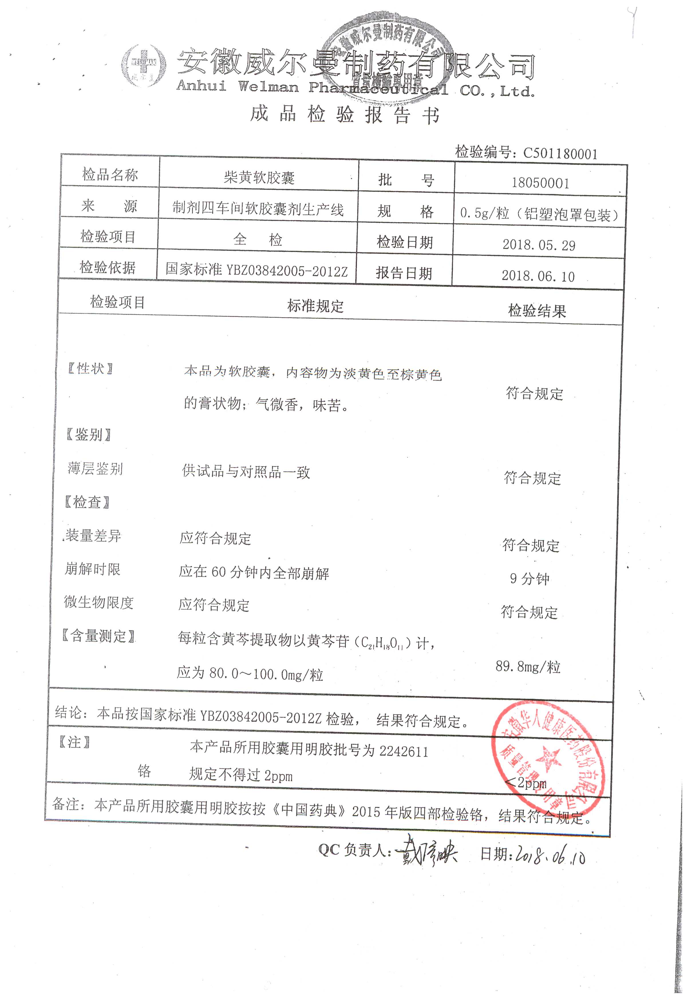 名稱 規(guī)格 批號 藥檢報告