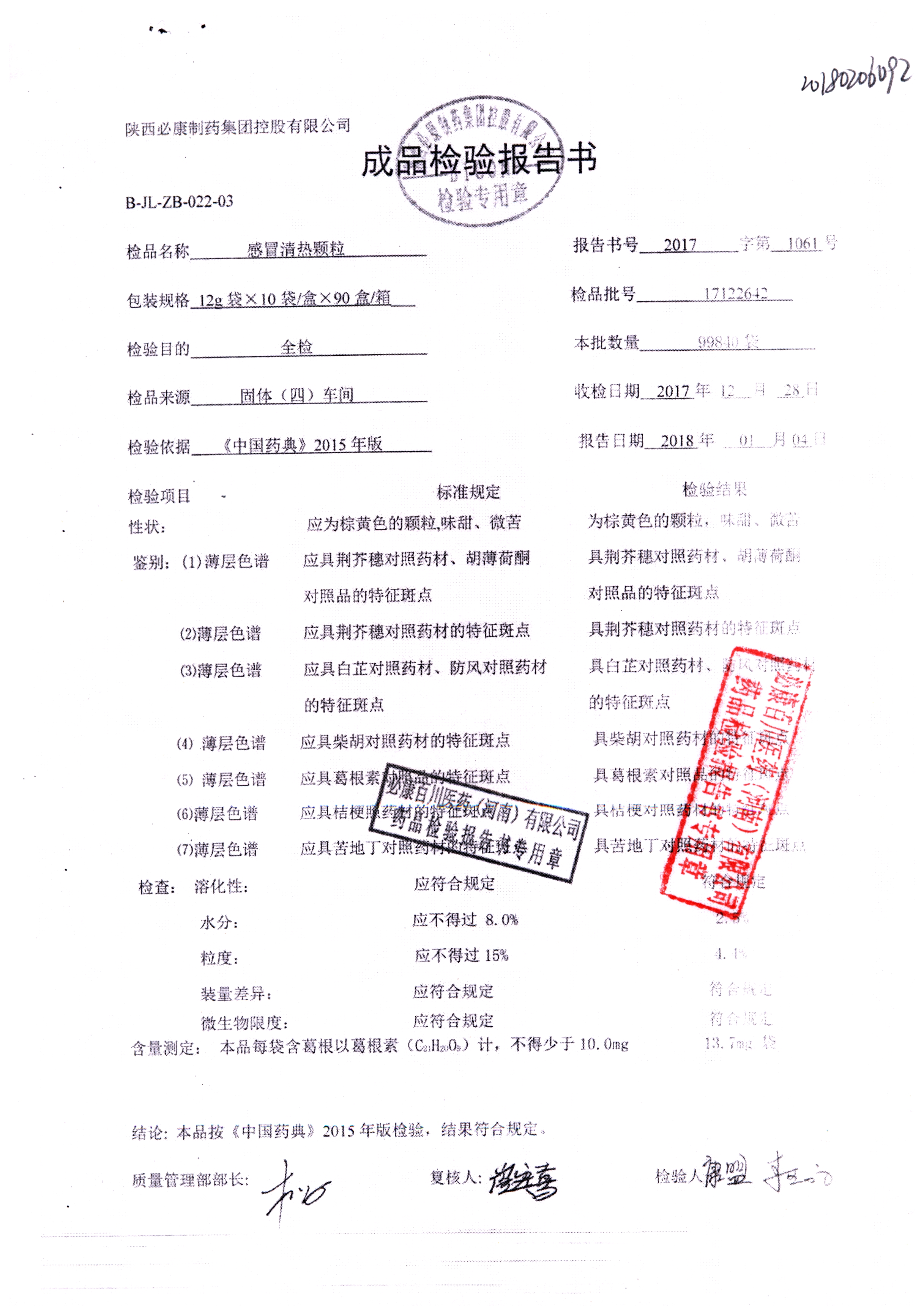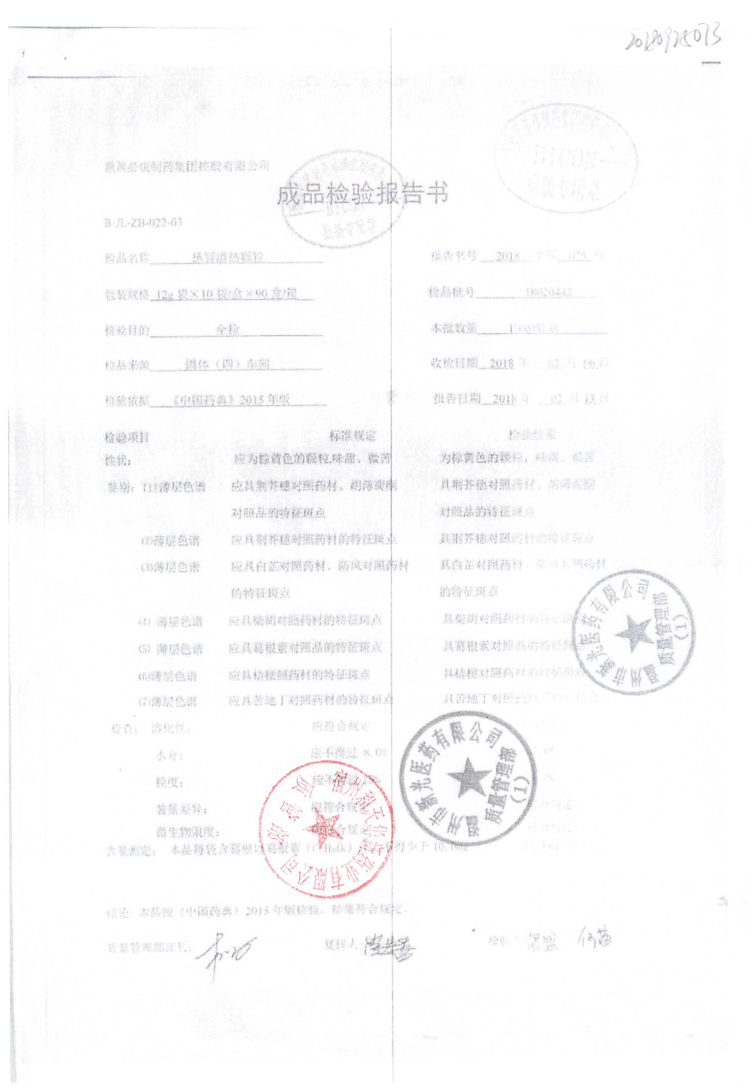 名稱 | 規(guī)格 | 批號 | 藥檢報告 |