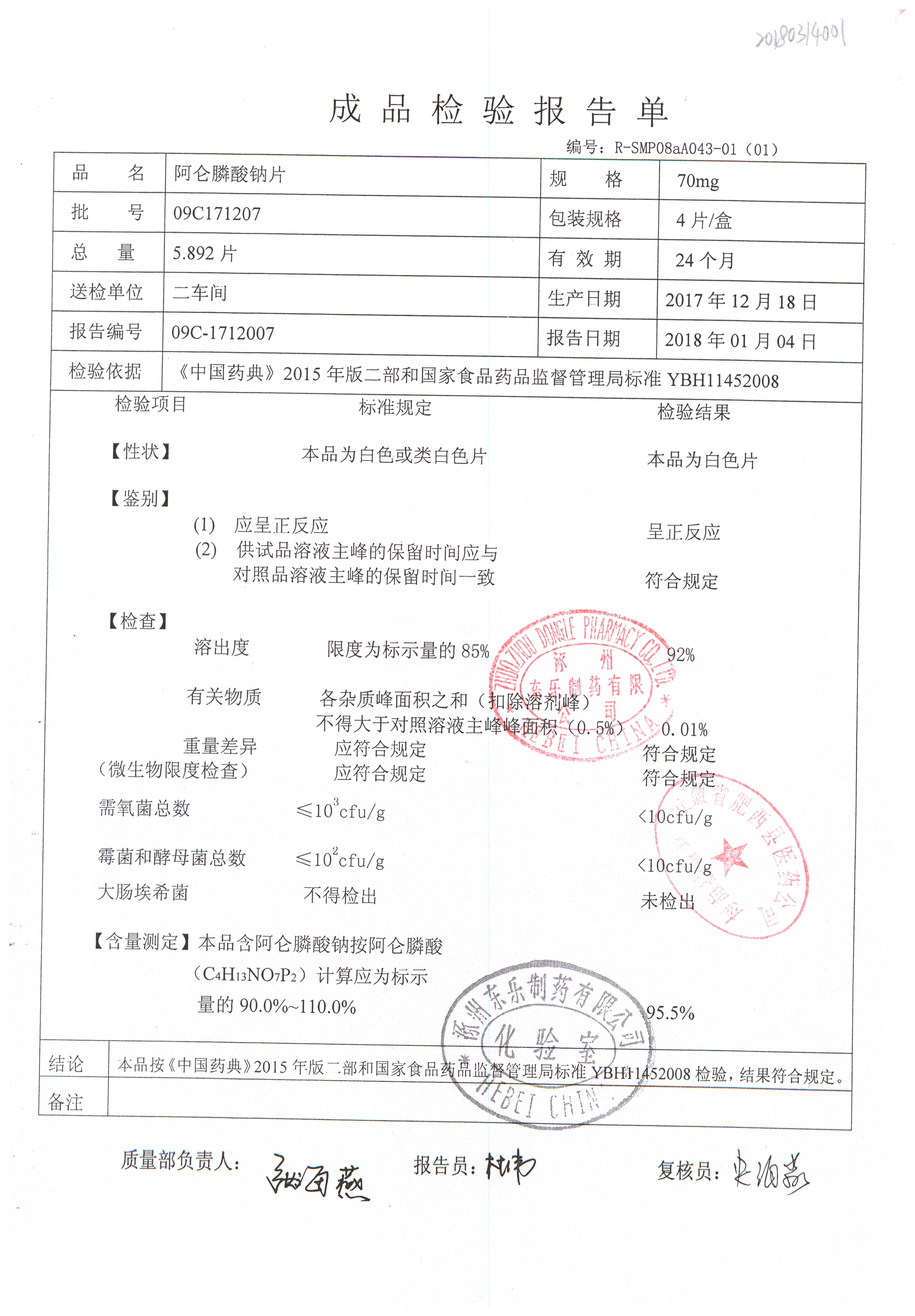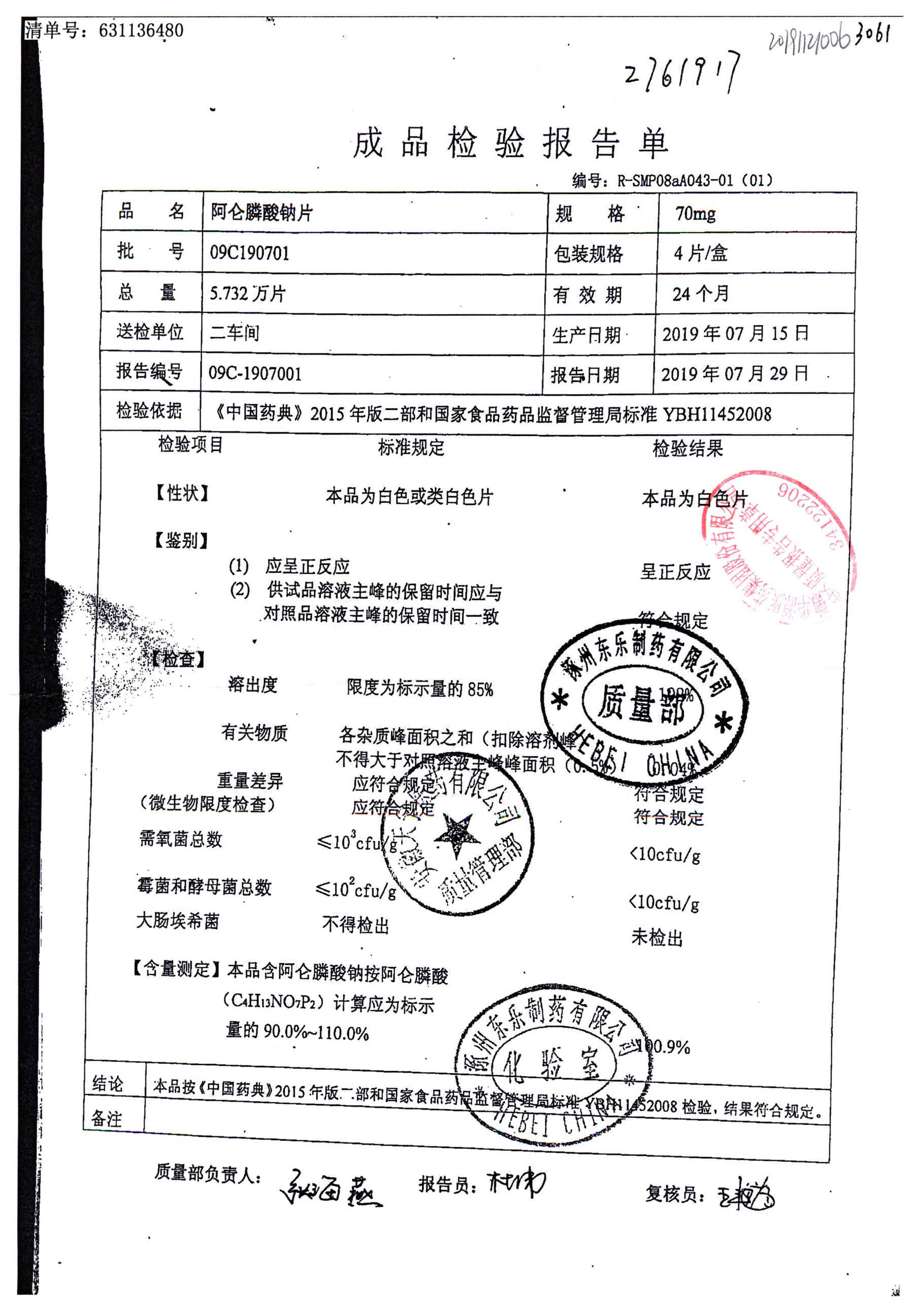 名稱 規(guī)格 批號(hào) 藥檢報(bào)告