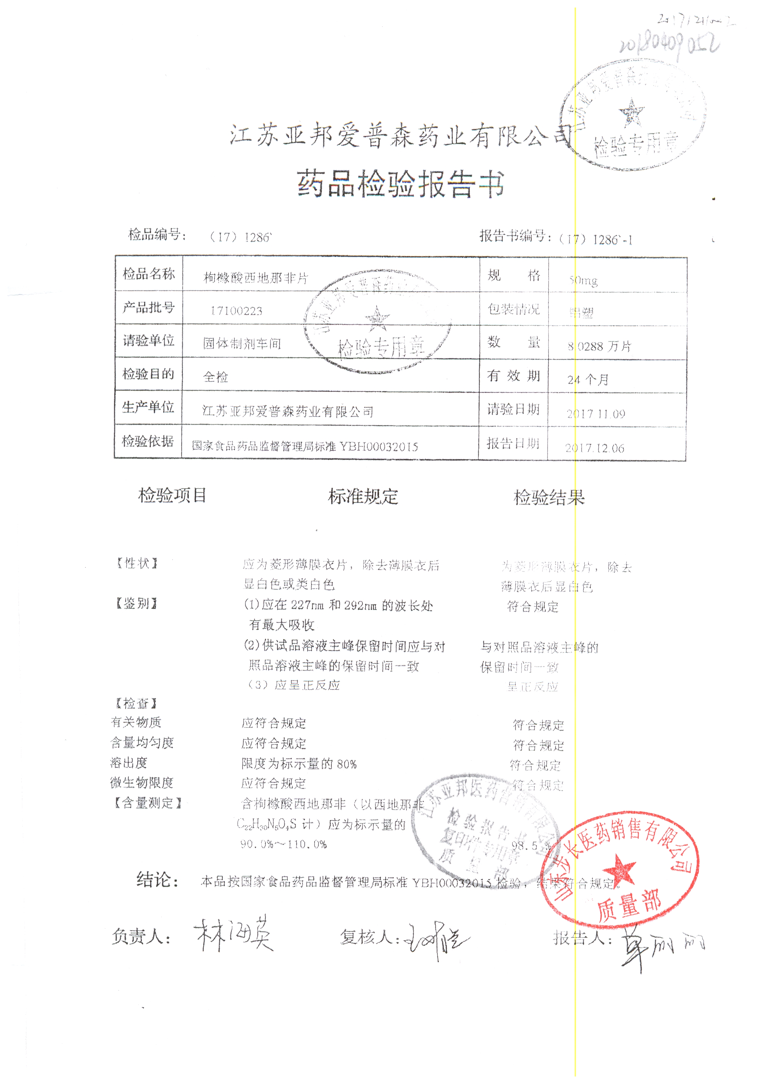 枸櫞酸西地那非片 | 50mg | E1809012 | 查看詳情 |