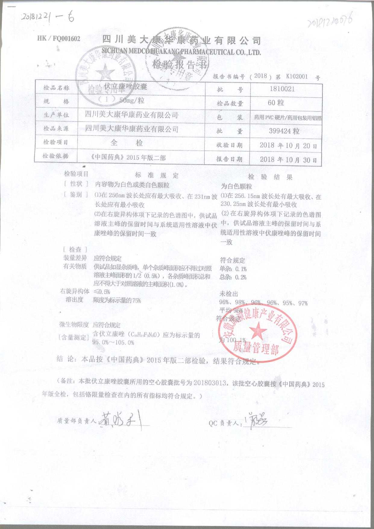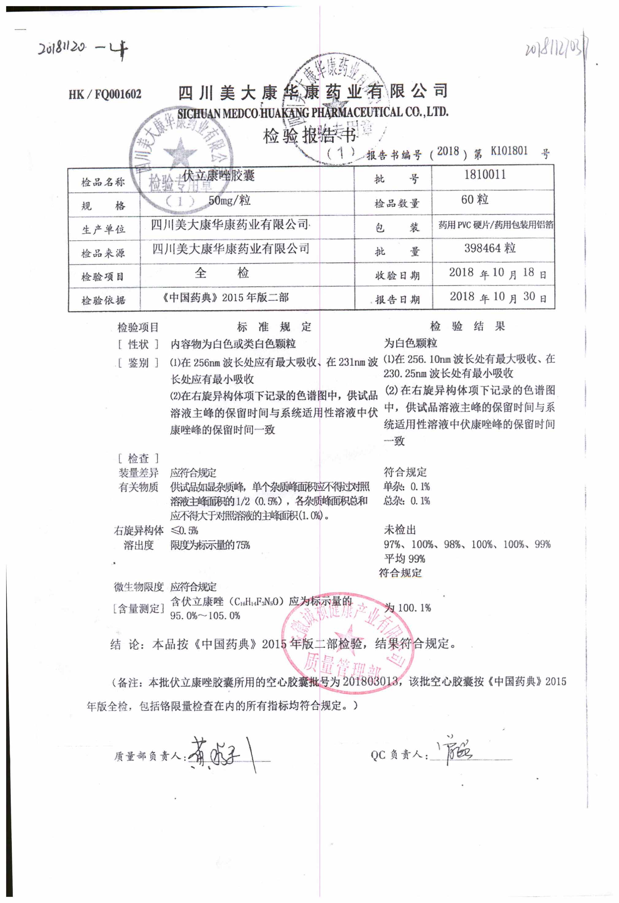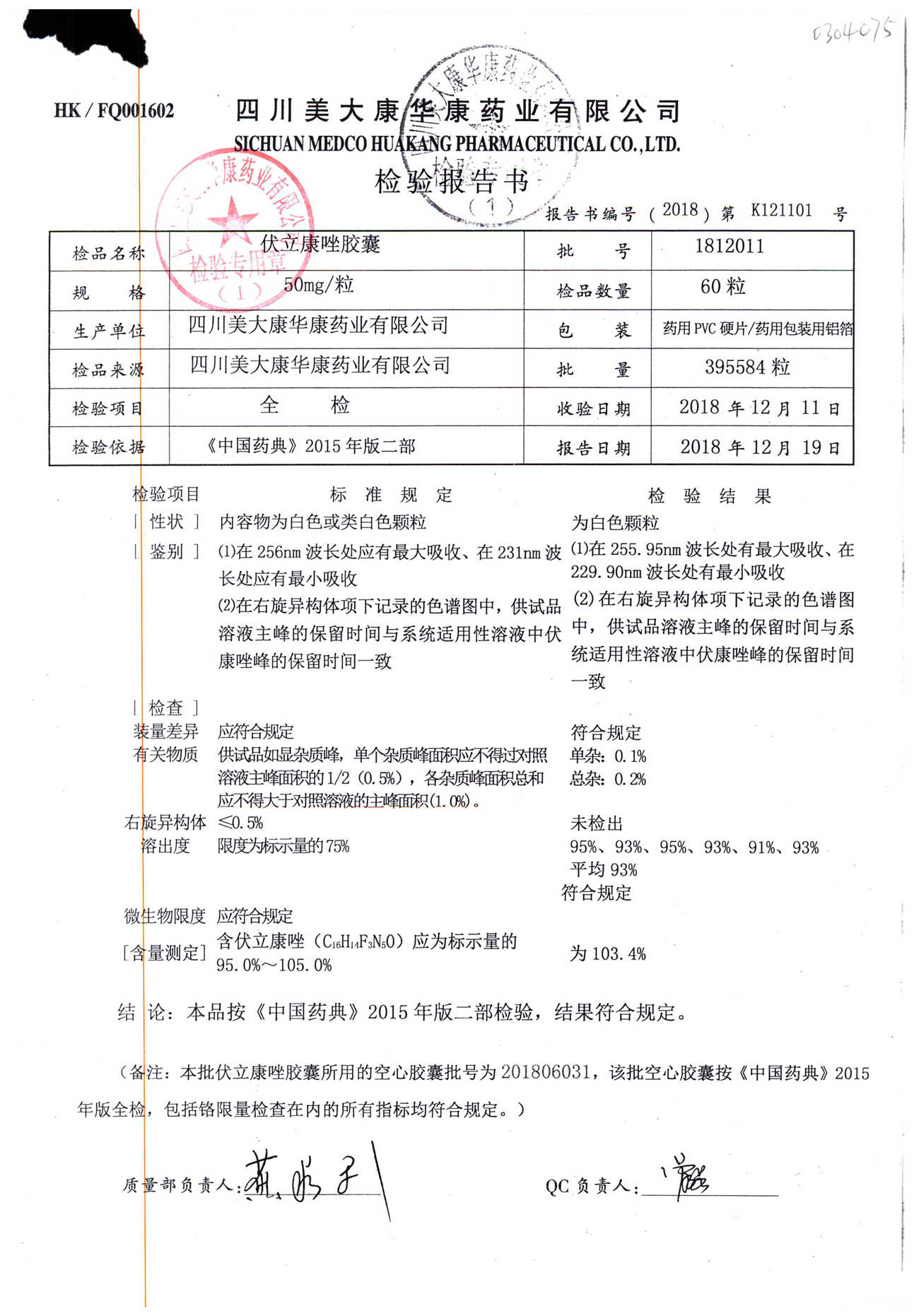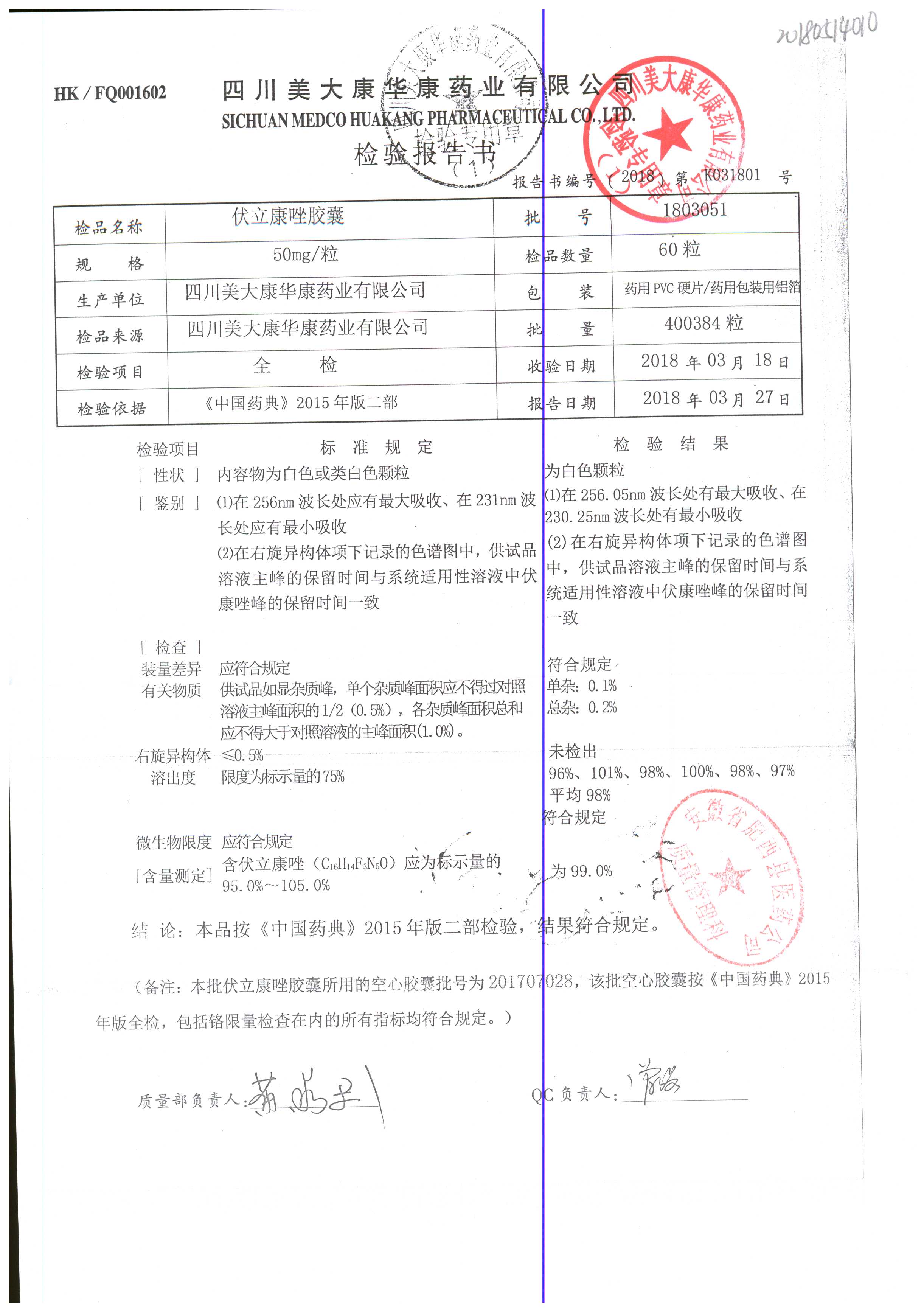 伏立康唑膠囊 50mg 1803051 查看詳情