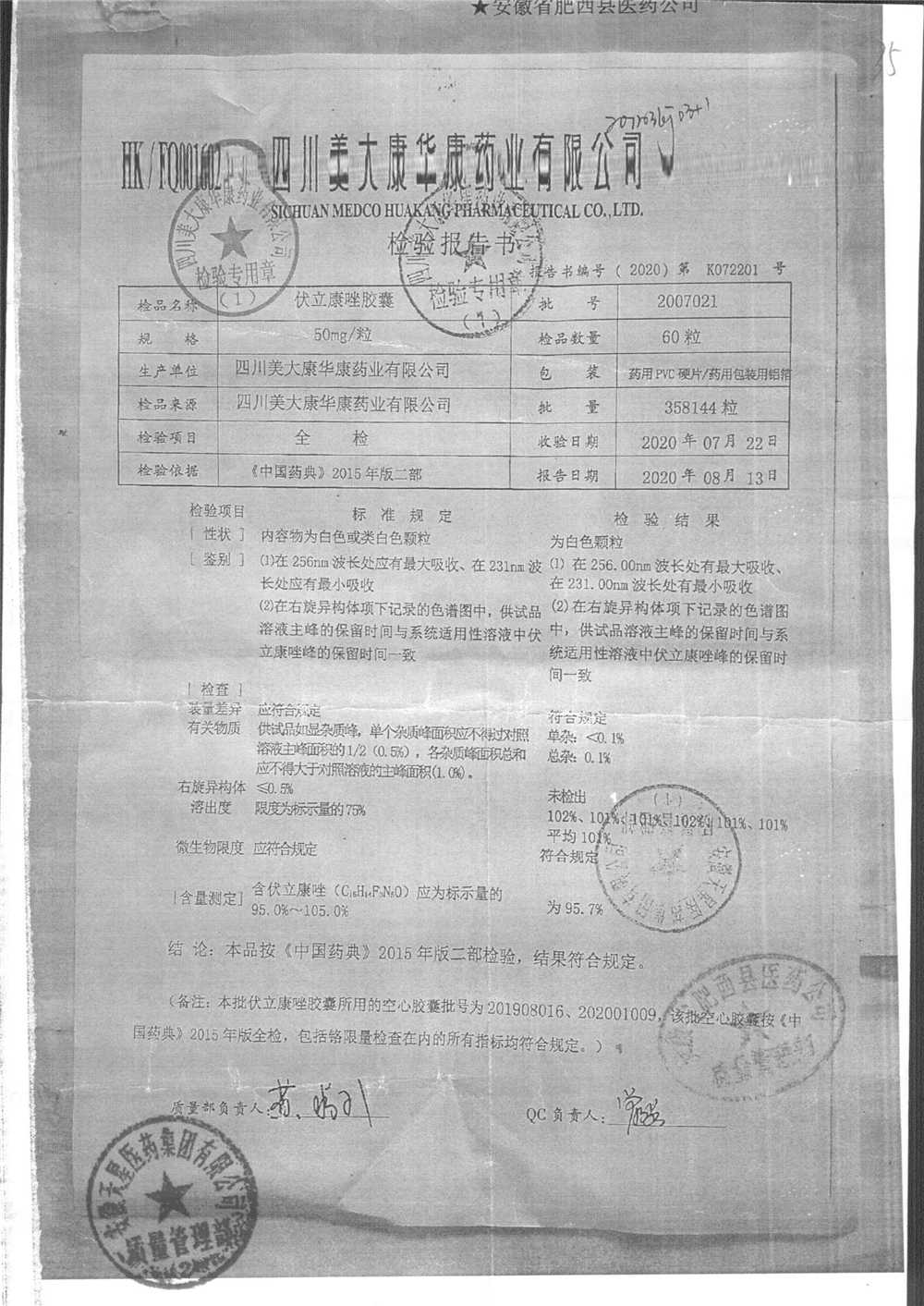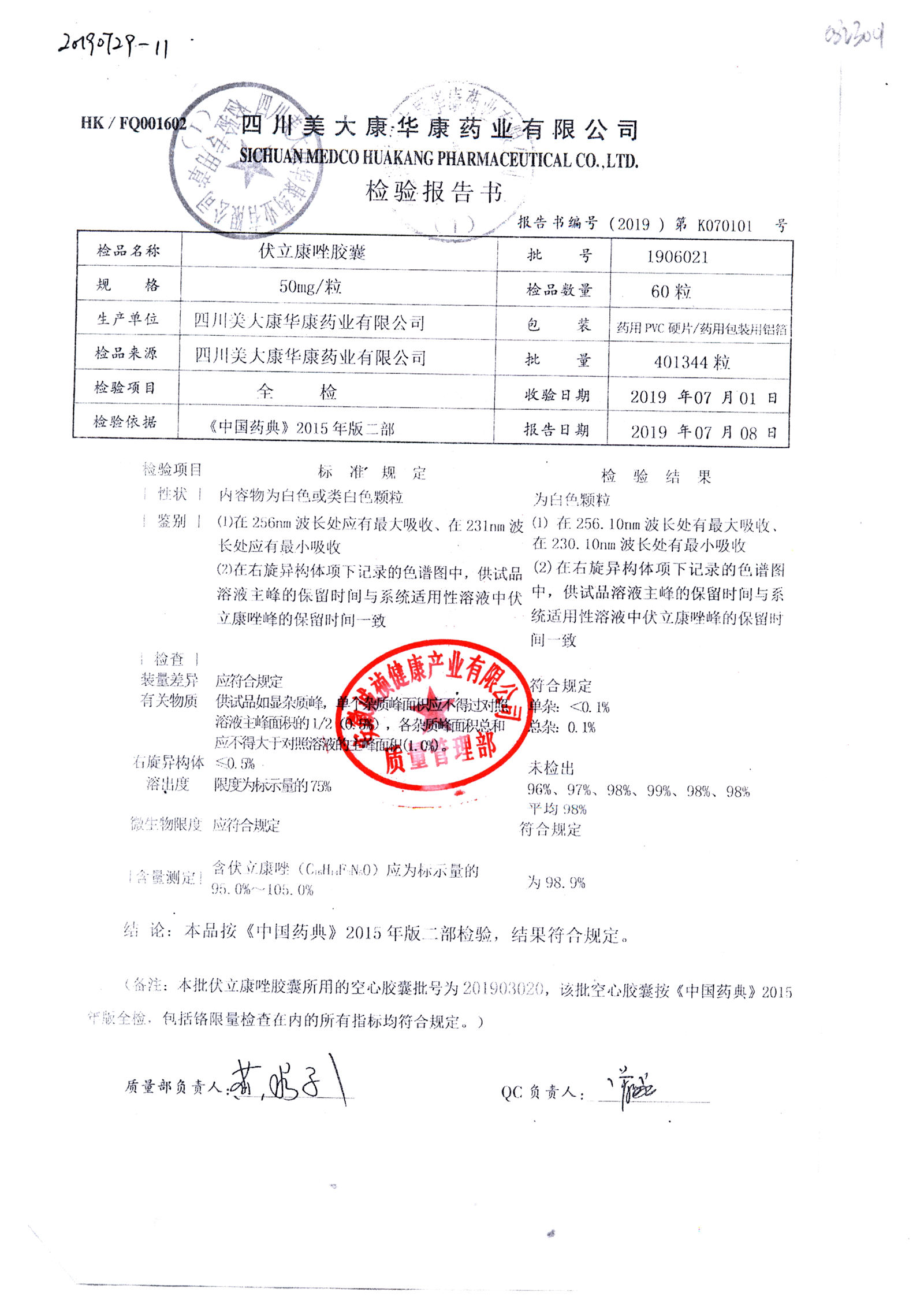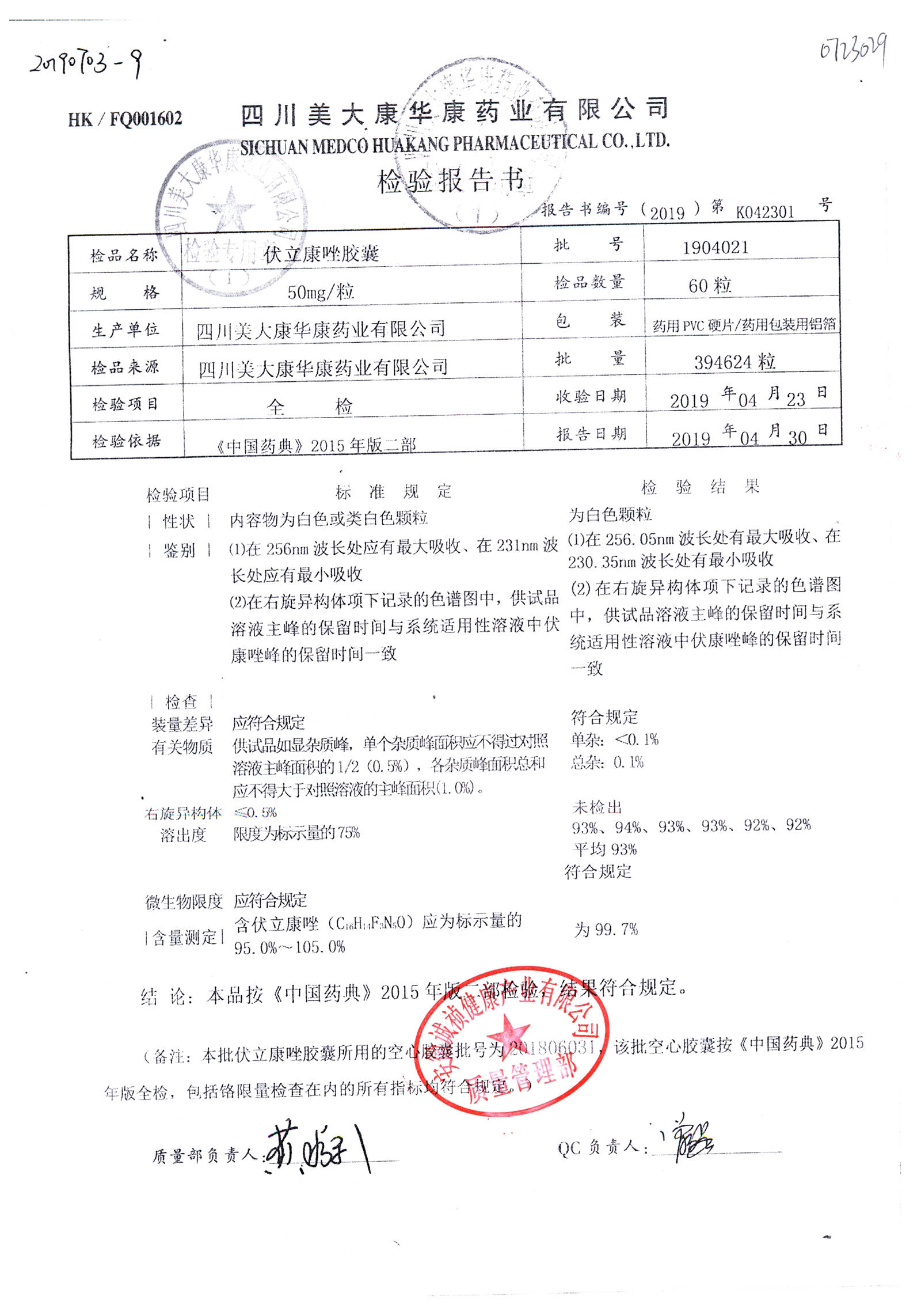 伏立康唑膠囊 50mg 1906021 查看詳情