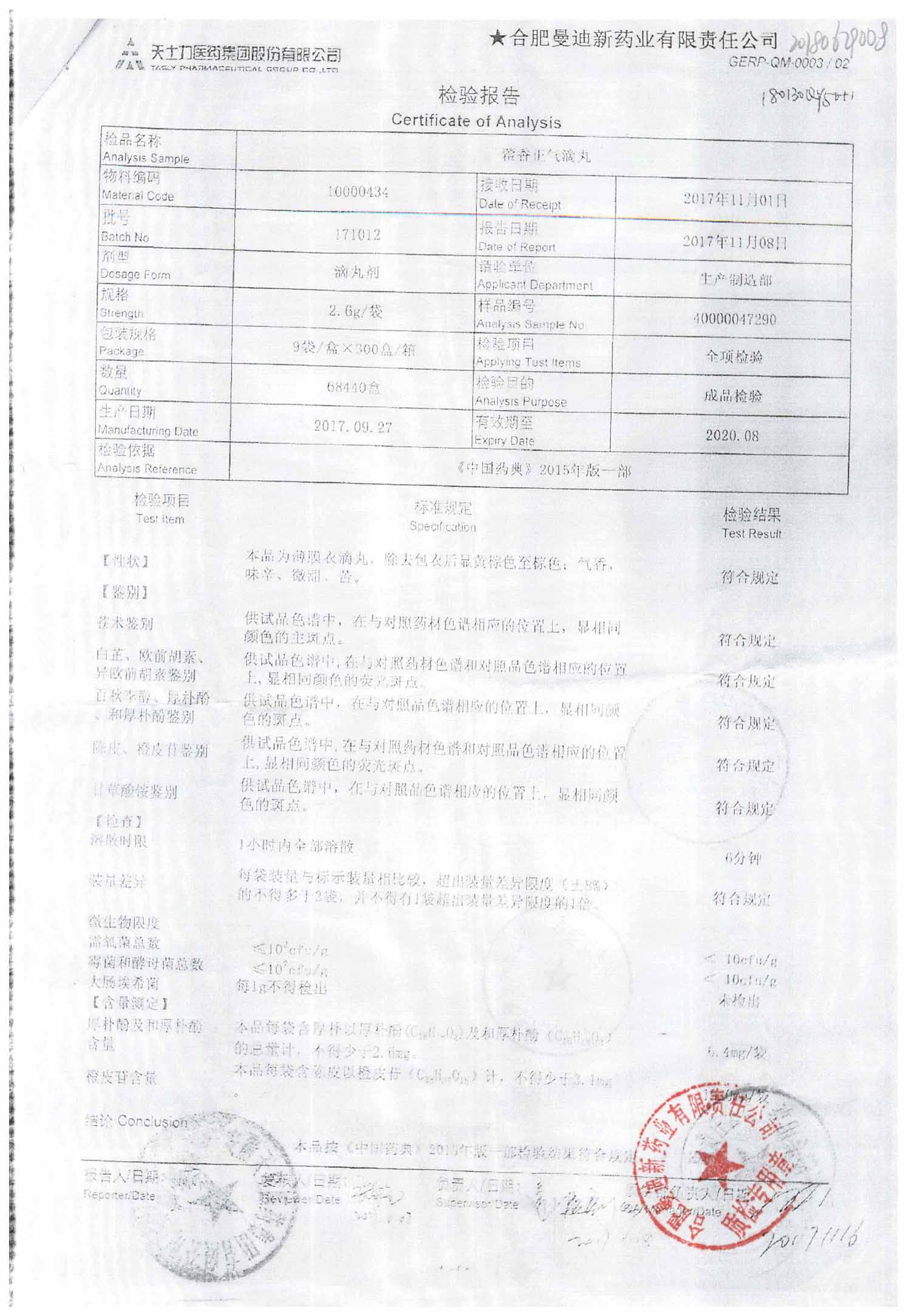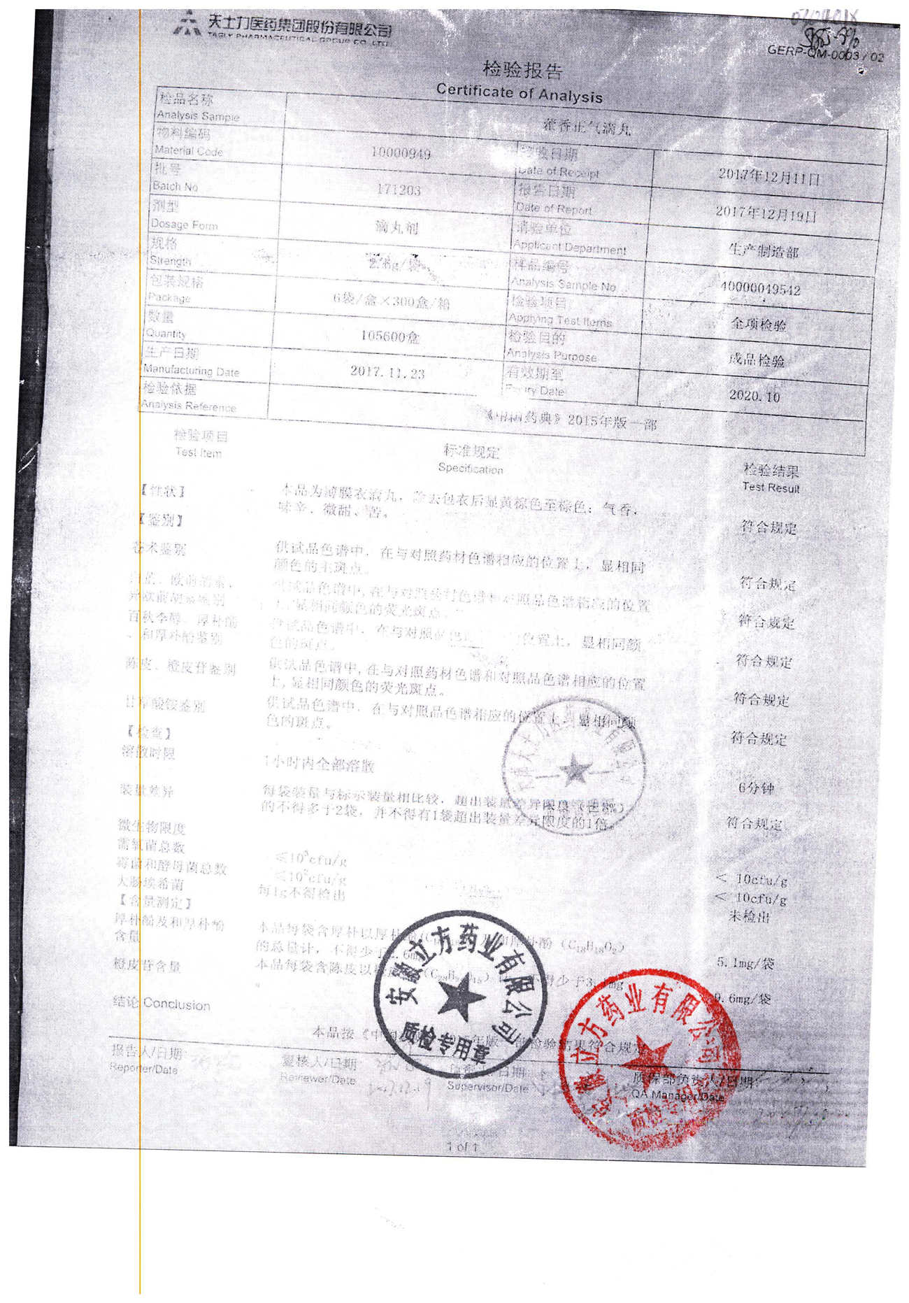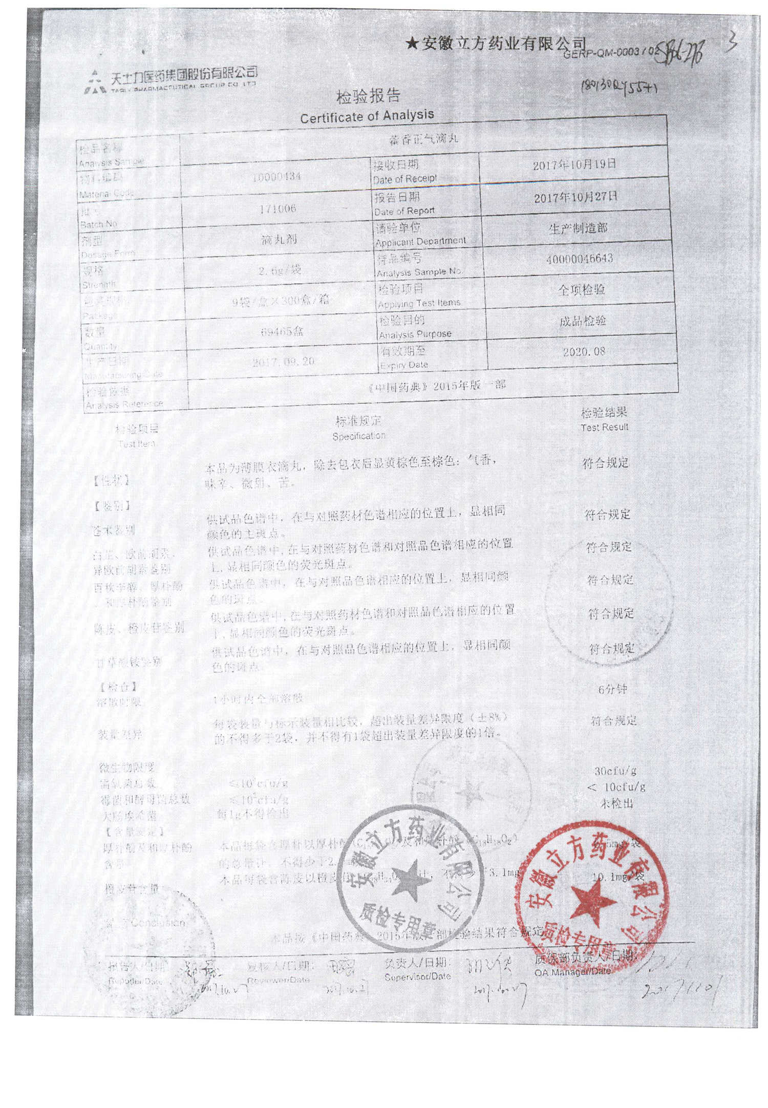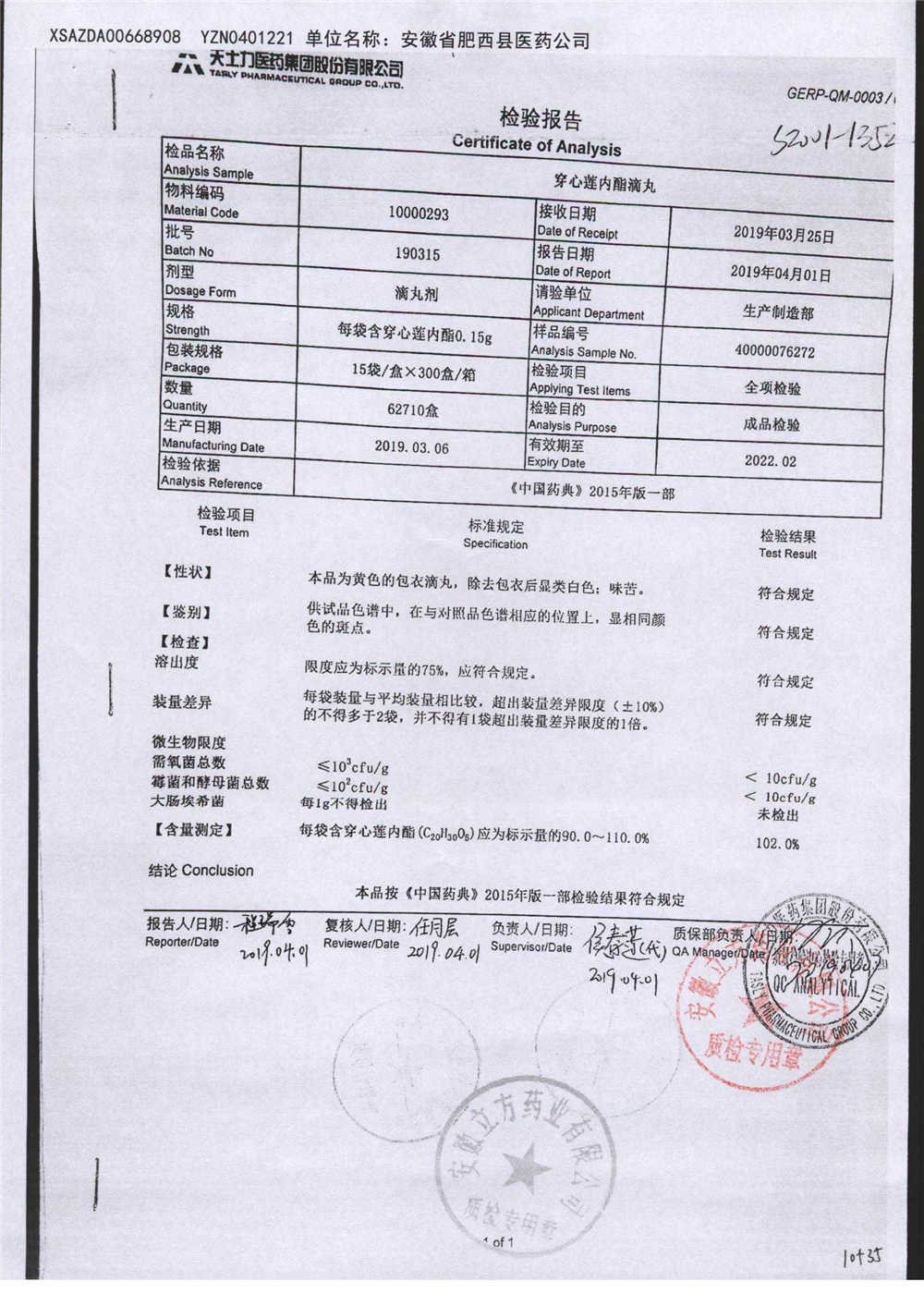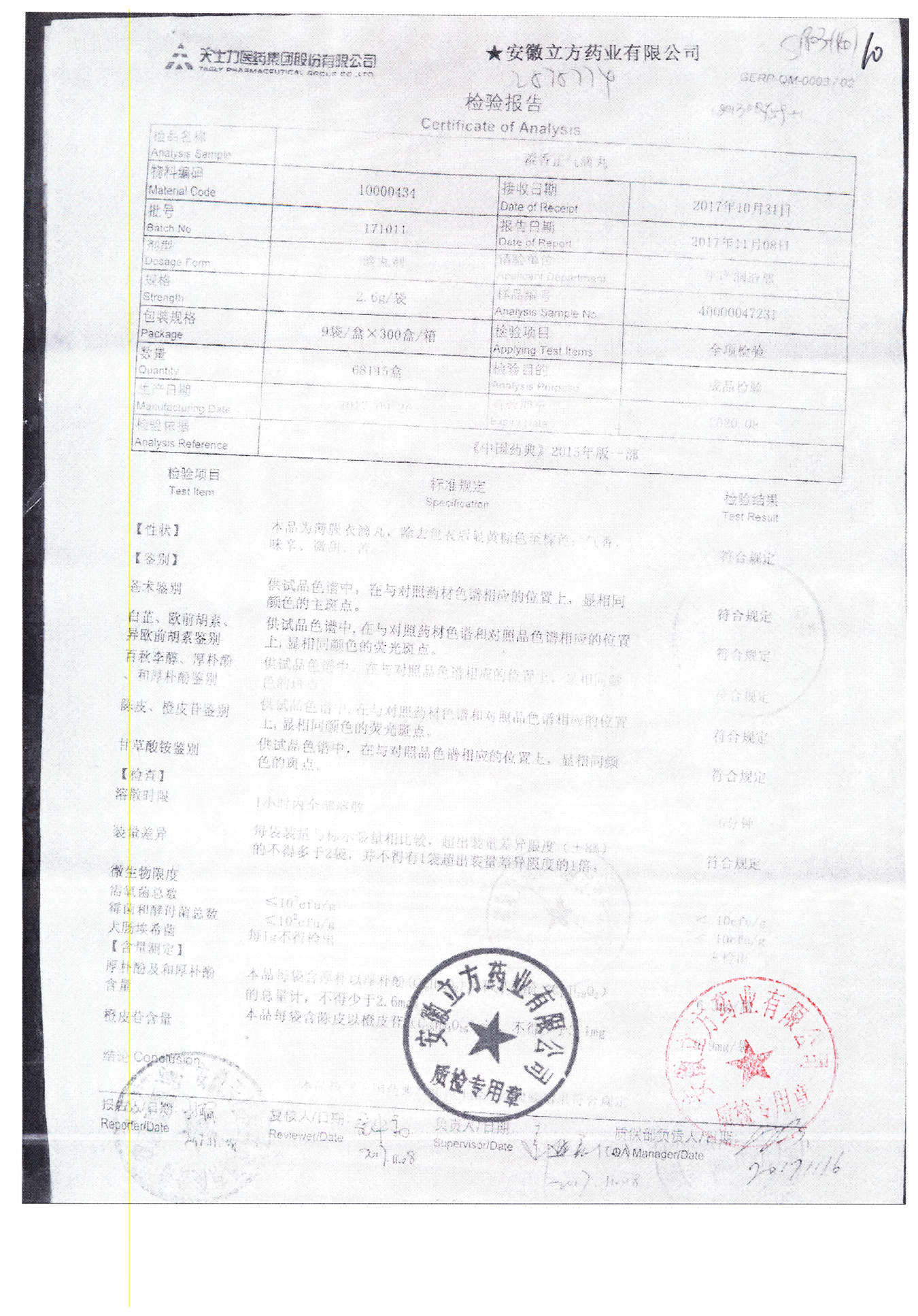 名稱 | 規(guī)格 | 批號 | 藥檢報(bào)告 |