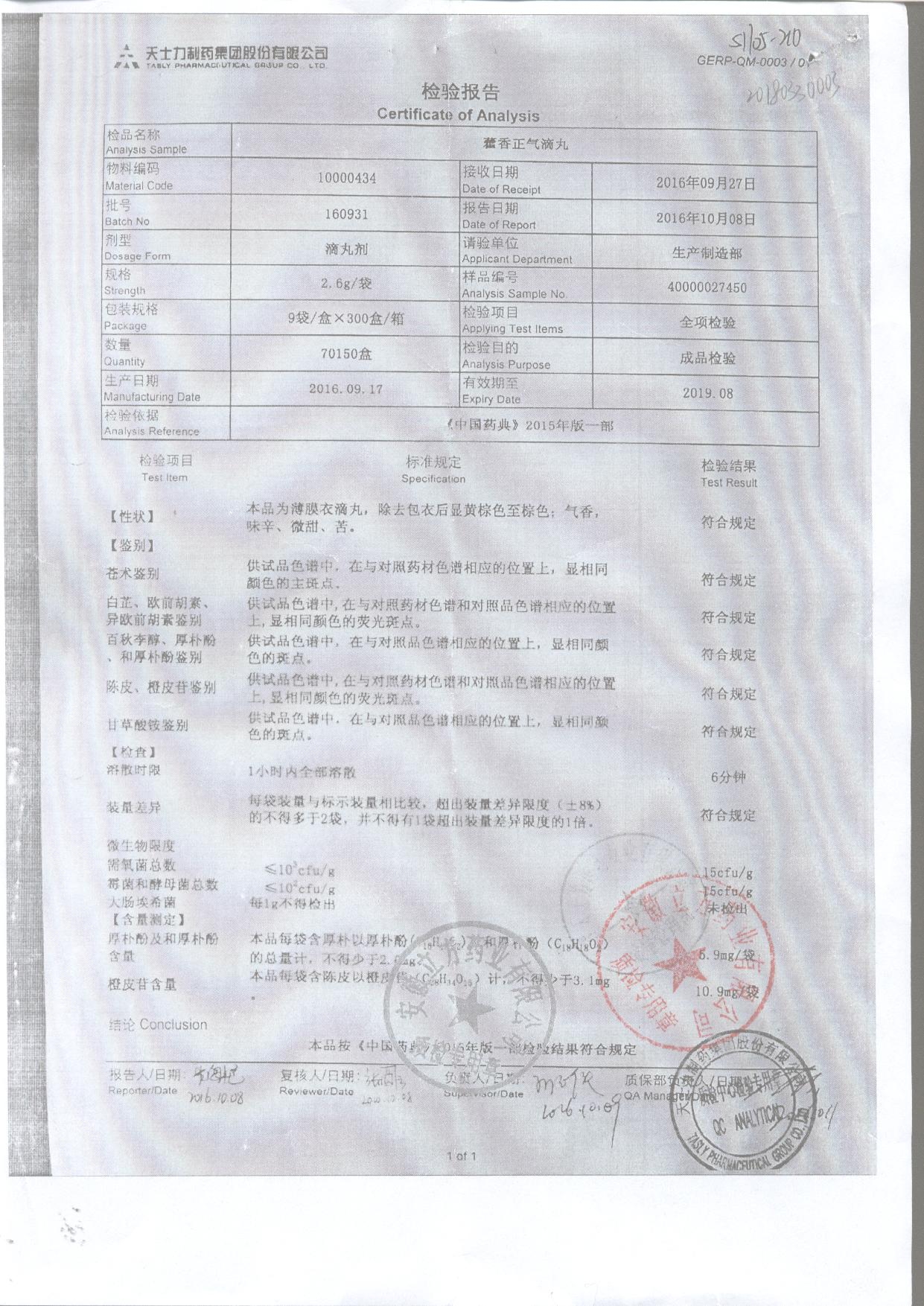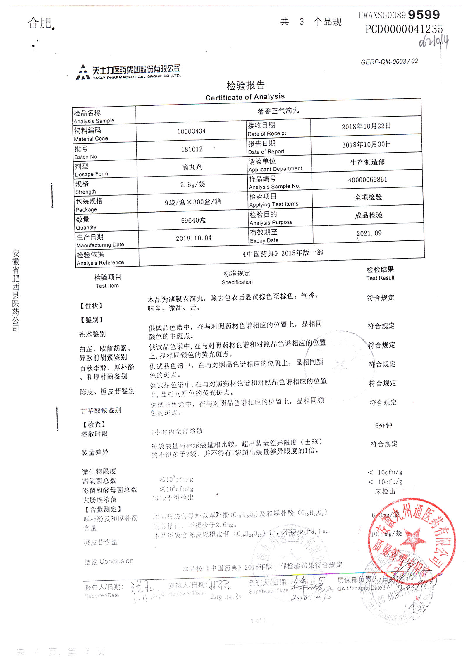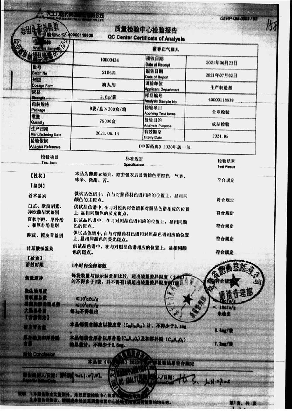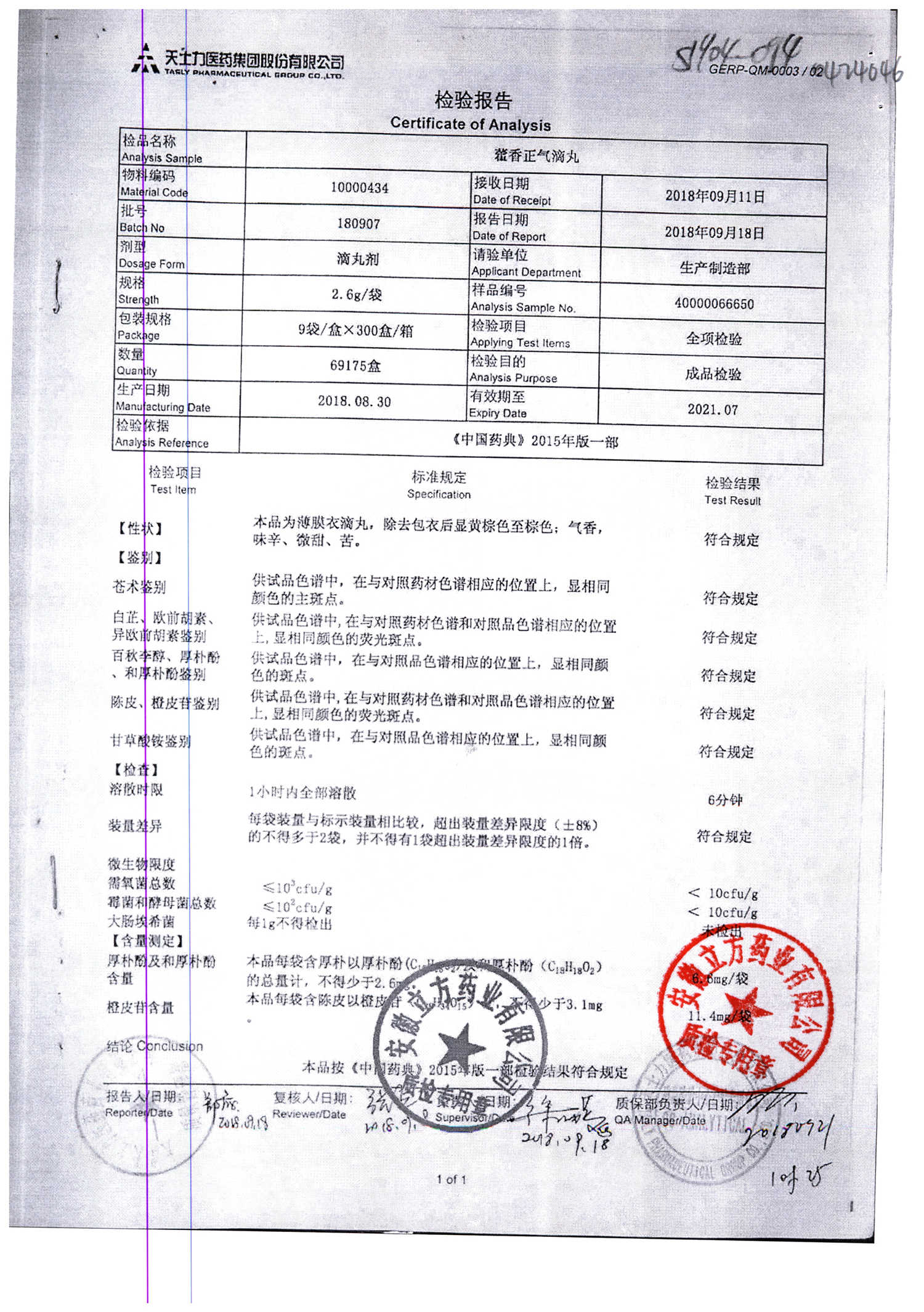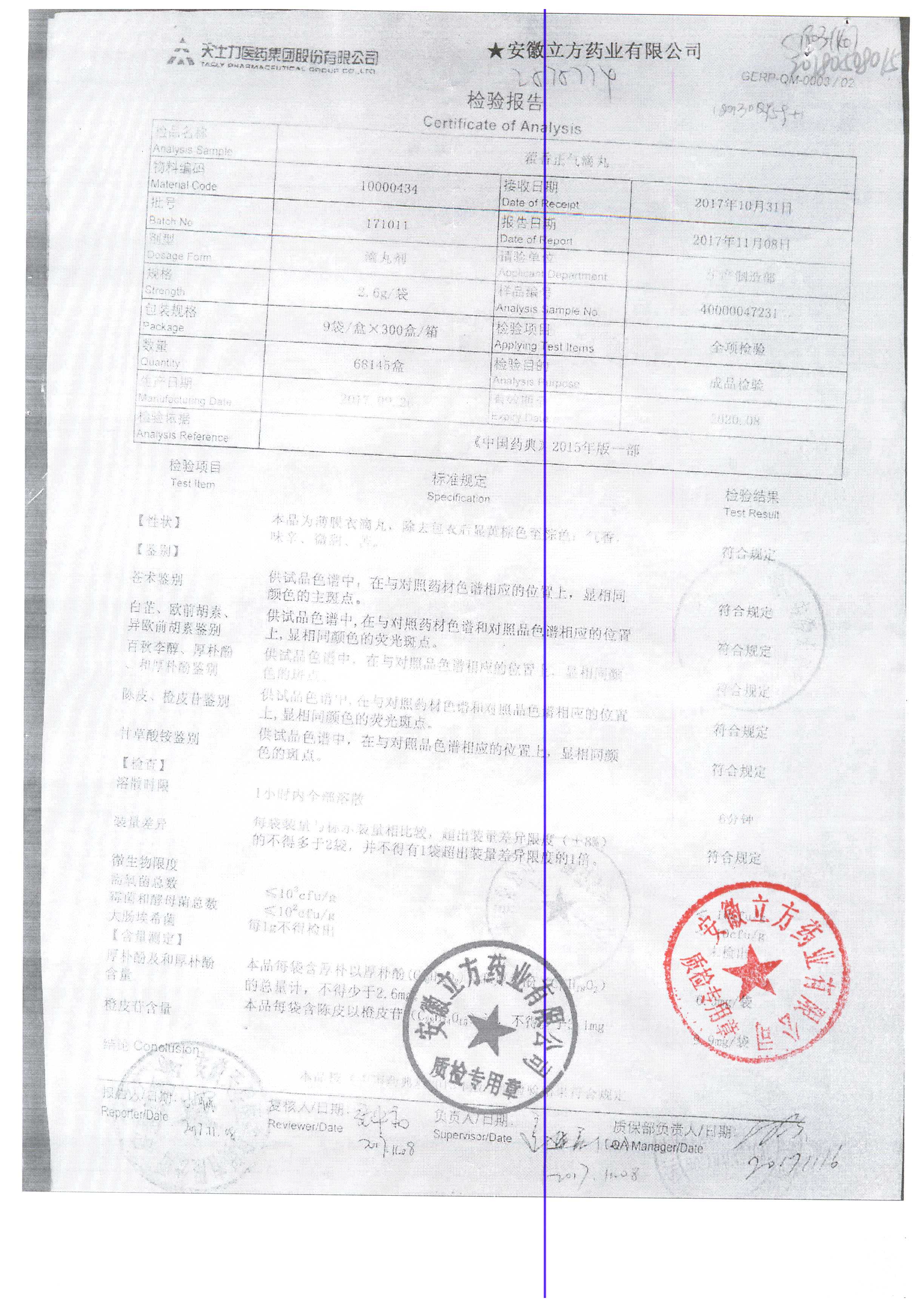 名稱 | 規(guī)格 | 批號 | 藥檢報(bào)告 |