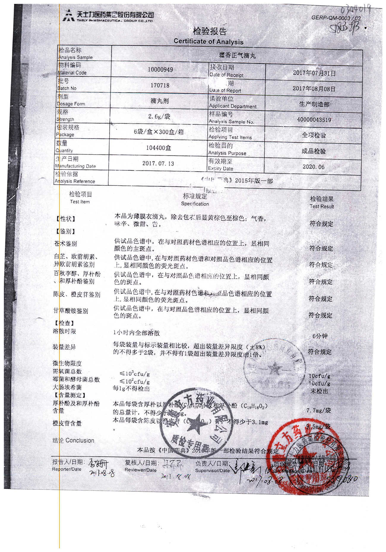 藿香正氣滴丸 | 2.6g*9袋 | 170203 | 查看詳情 |