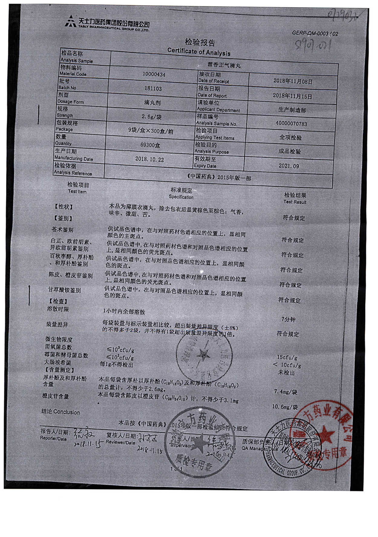 藿香正氣滴丸 | 2.6g*9袋 | 181103 | 查看詳情 |