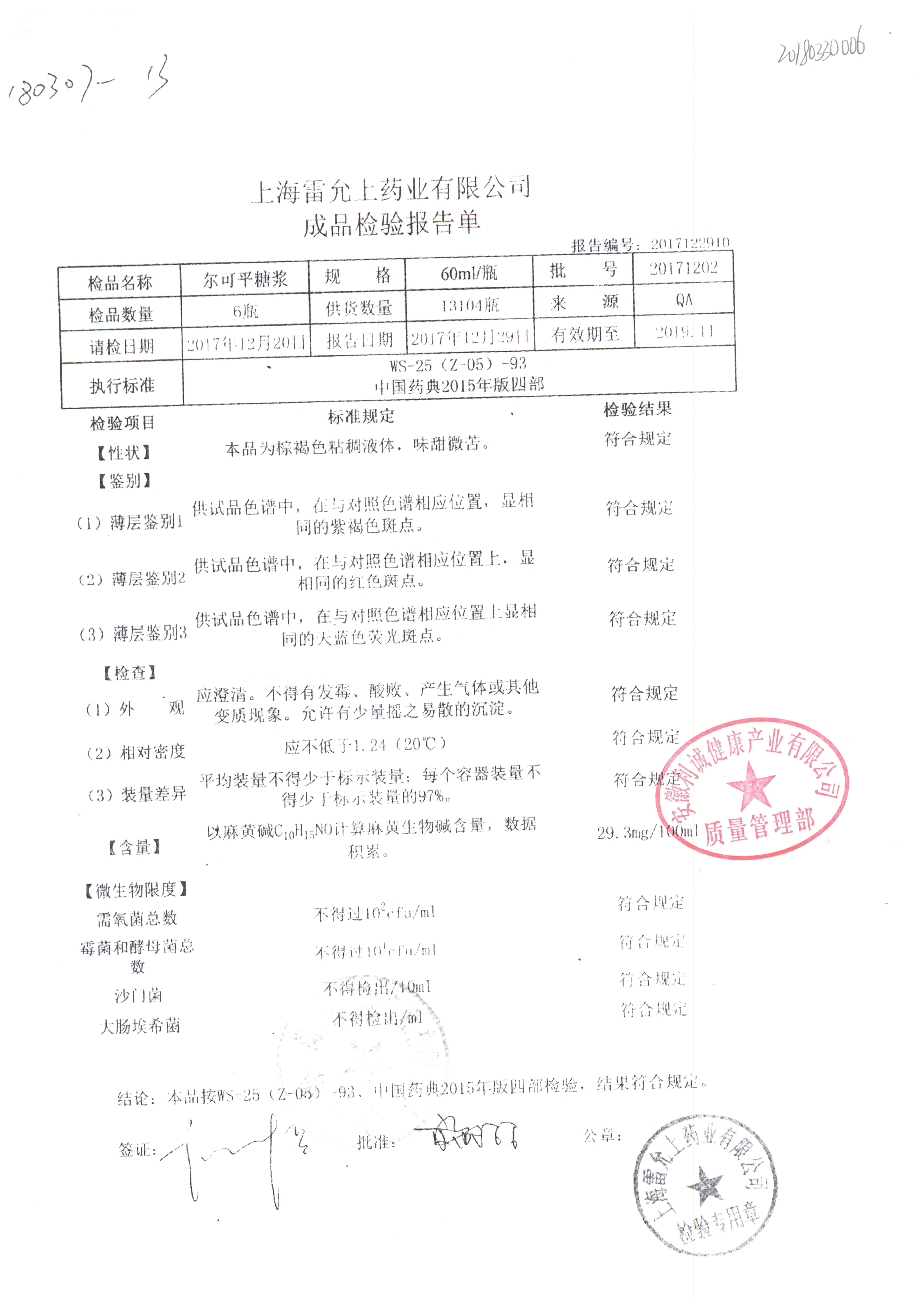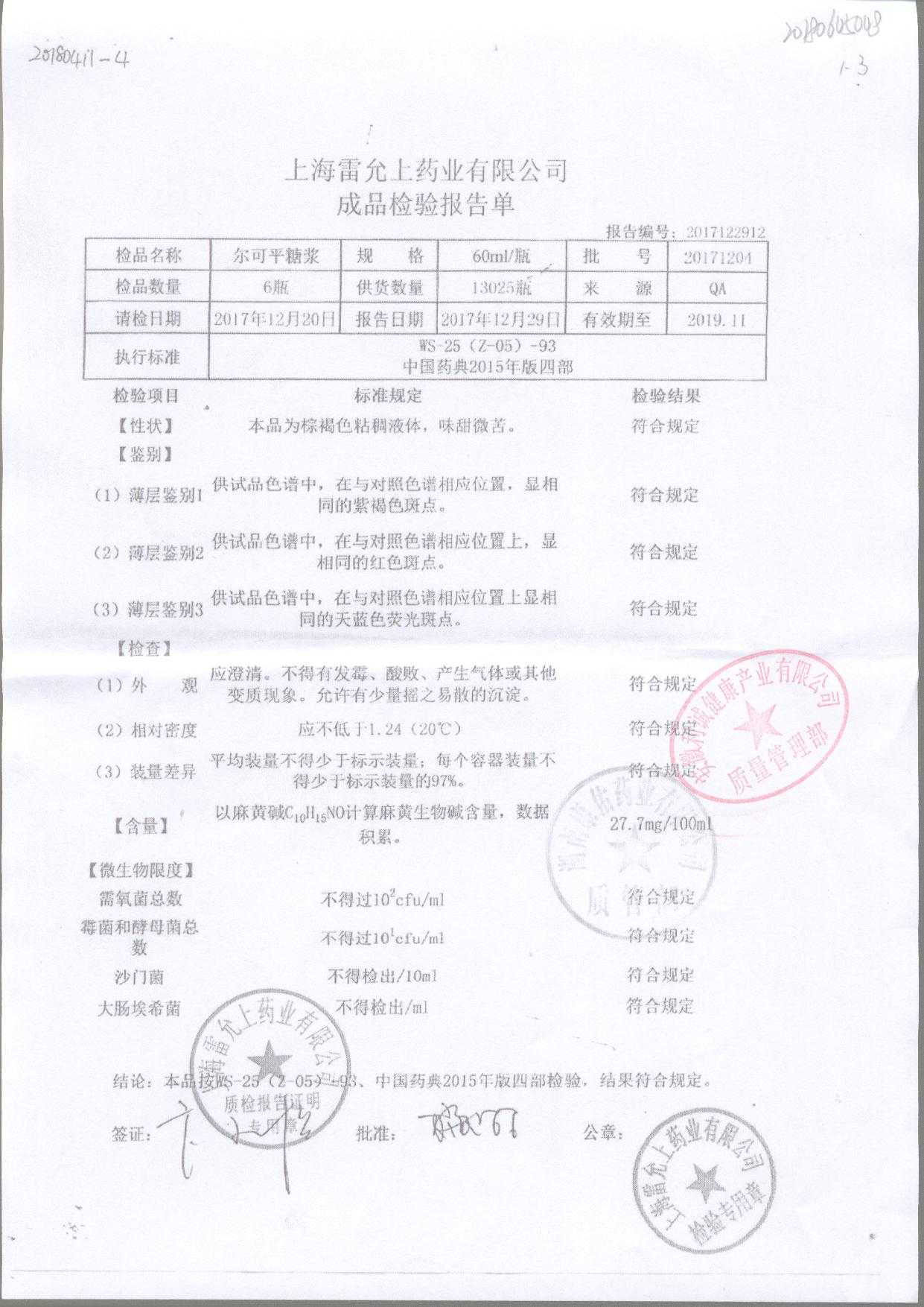 爾可平糖漿 | 60ml | 20171204 | 查看詳情 |