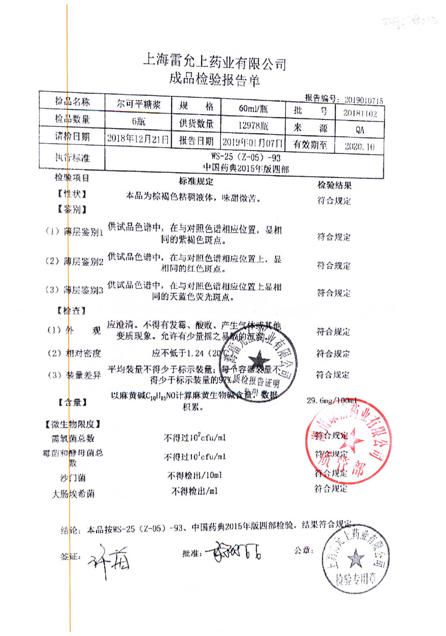 名稱 | 規(guī)格 | 批號(hào) | 藥檢報(bào)告 |