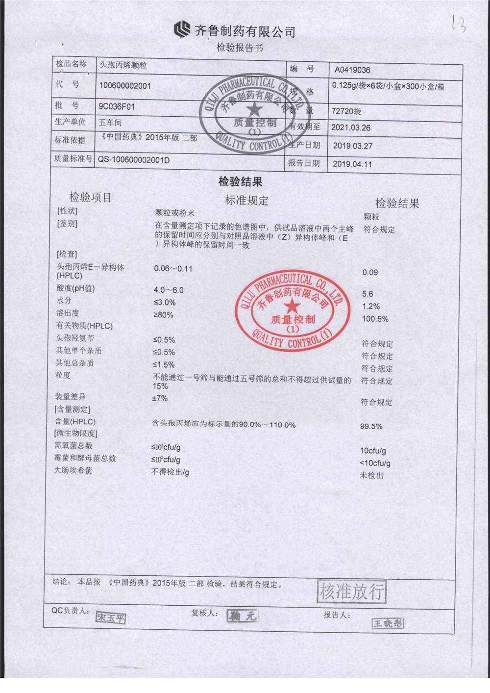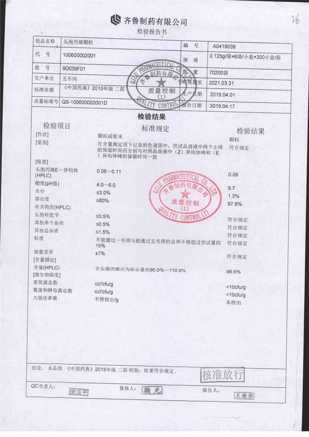 | 名稱 | 規(guī)格 | 批號(hào) | 藥檢報(bào)告 |
