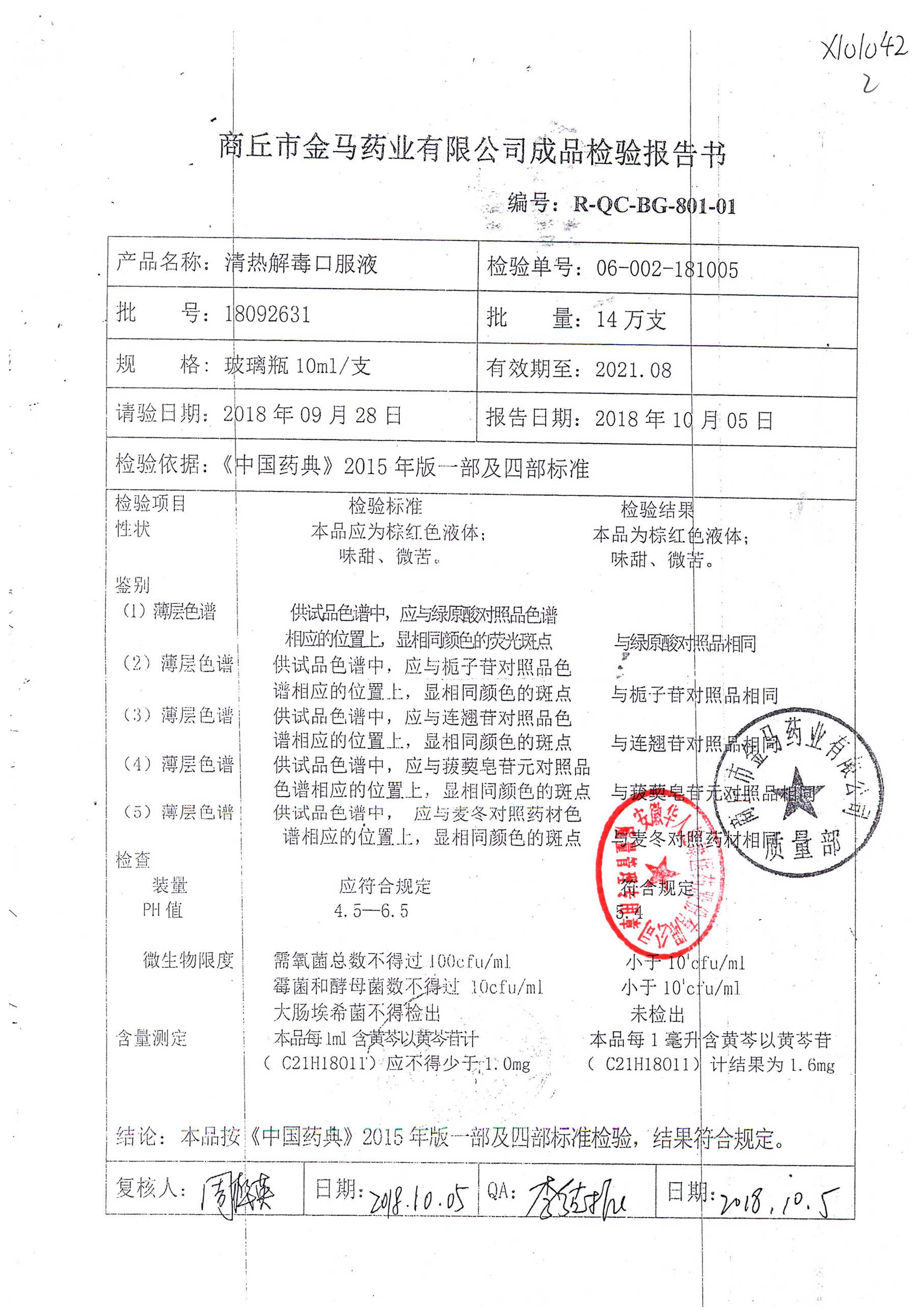 | 清熱解毒口服液 | 10ml | 18051031 | 查看詳情 |