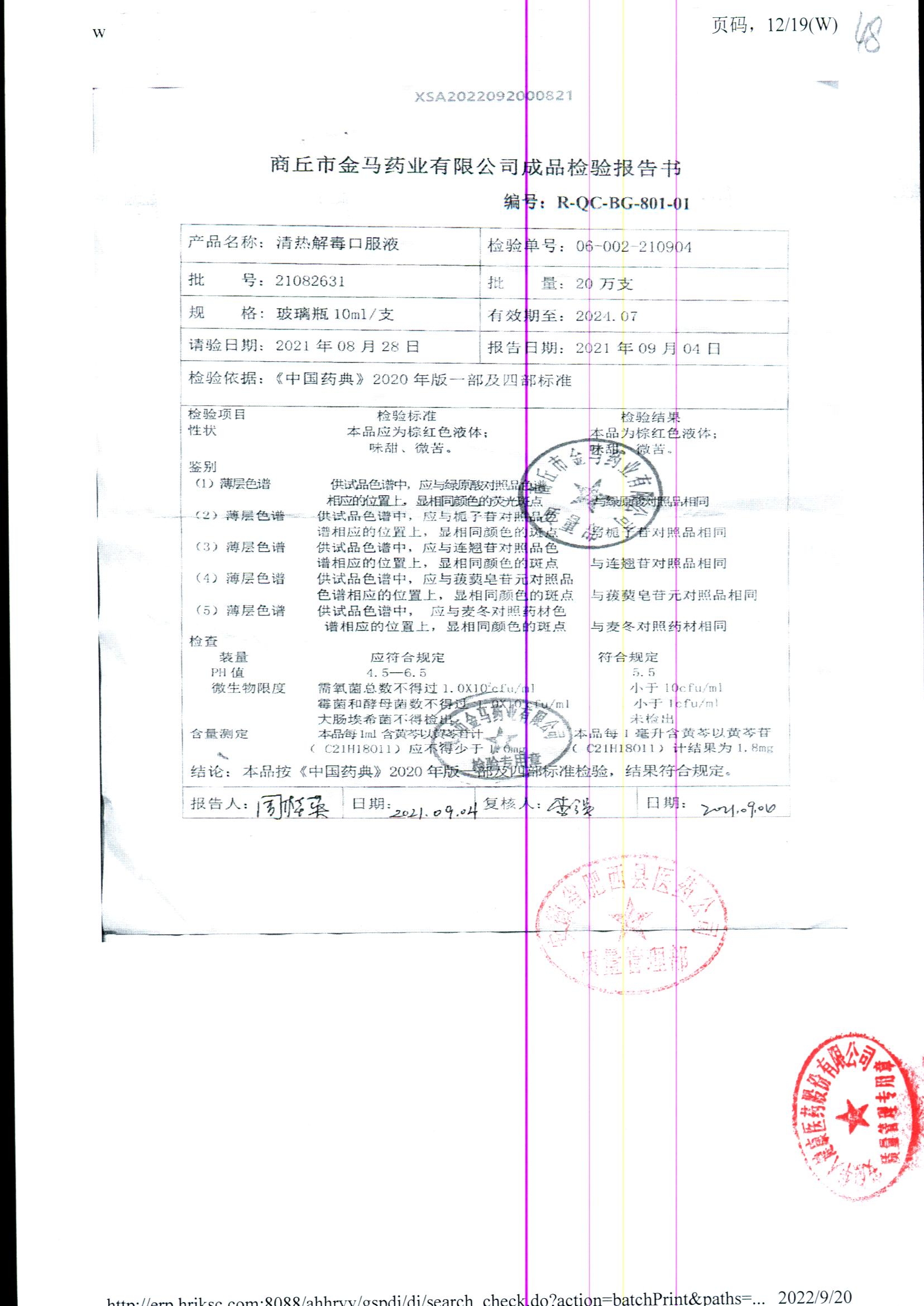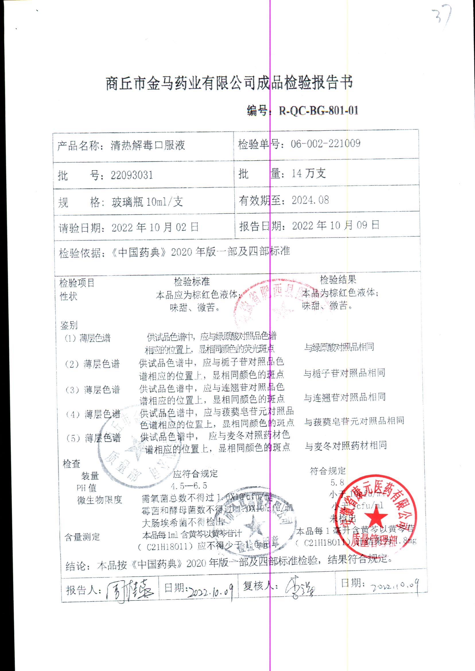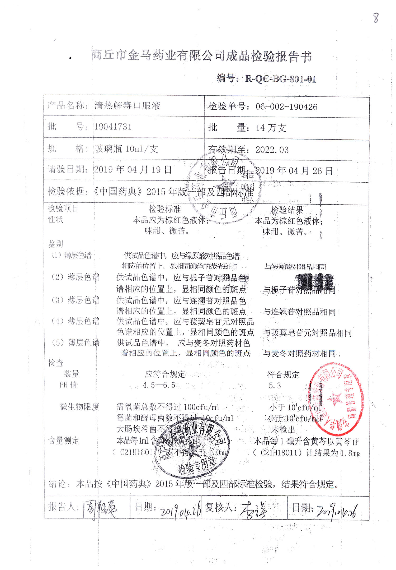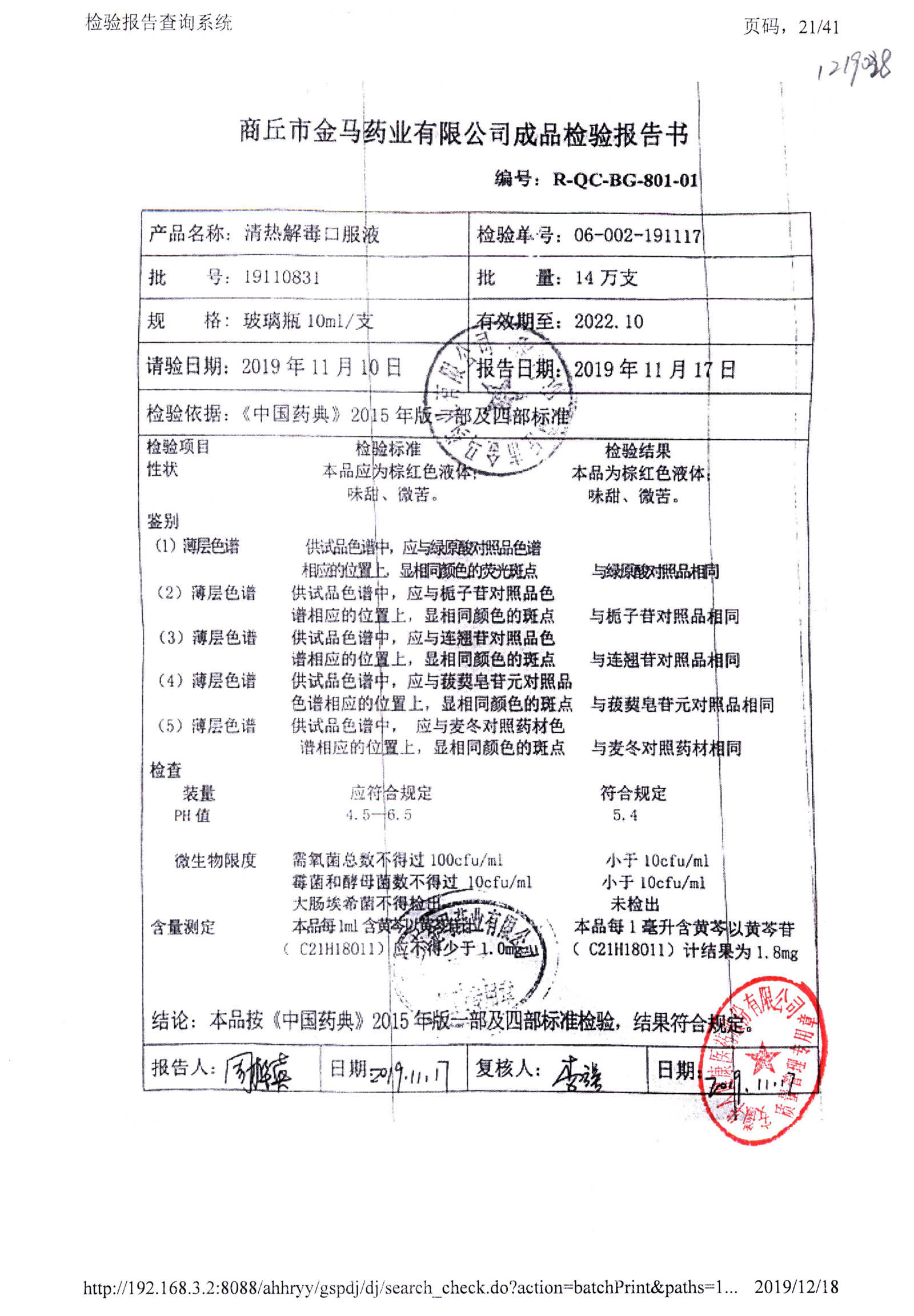 | 清熱解毒口服液 | 10ml | 19021231 | 查看詳情 |