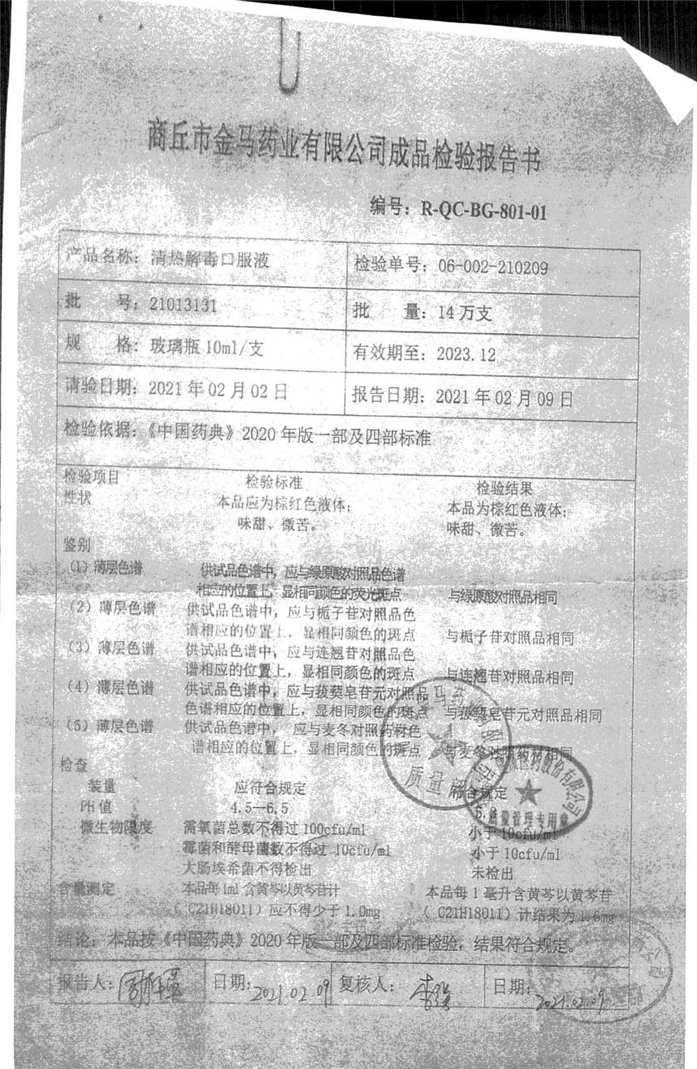 | 清熱解毒口服液 | 10ml | 21051231 | 查看詳情 |